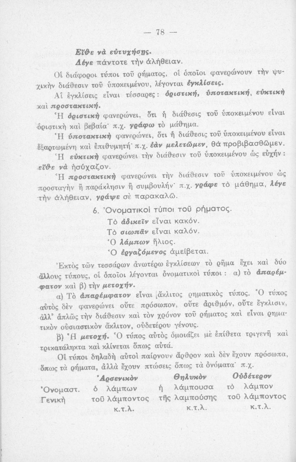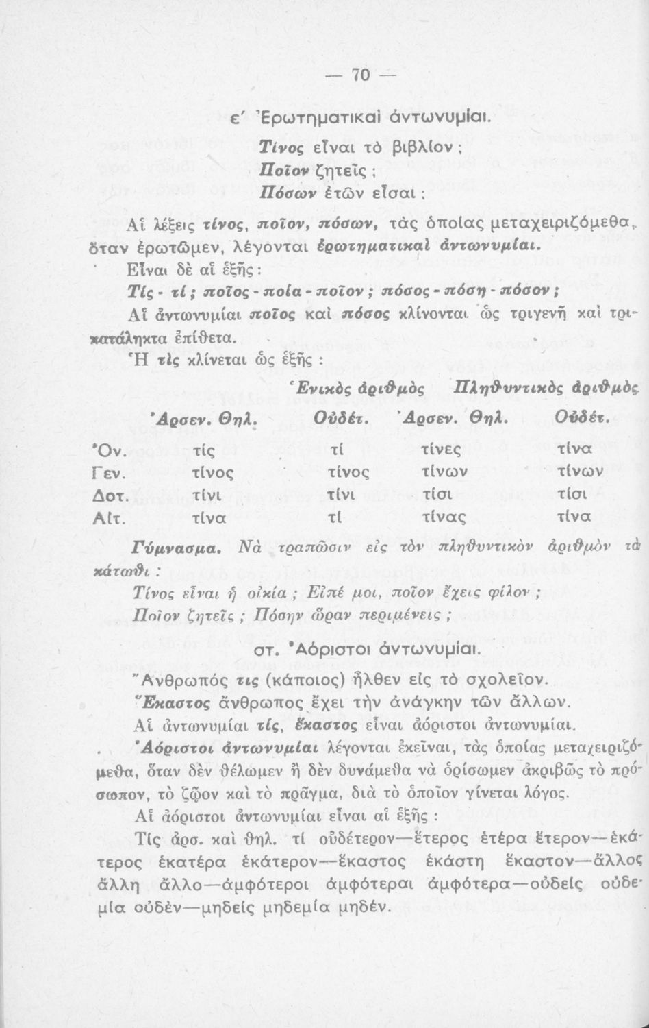 Σχολικό εγχειρίδιο Γλώσσας που περιέχει τη γραμματικής της καθαρεύουσας για τα Δημοτικά σχολεία.