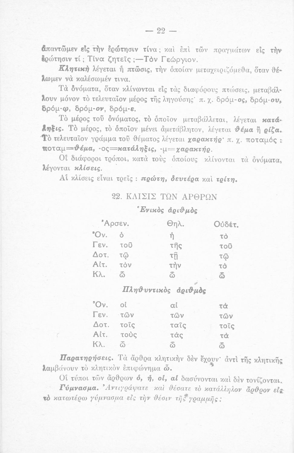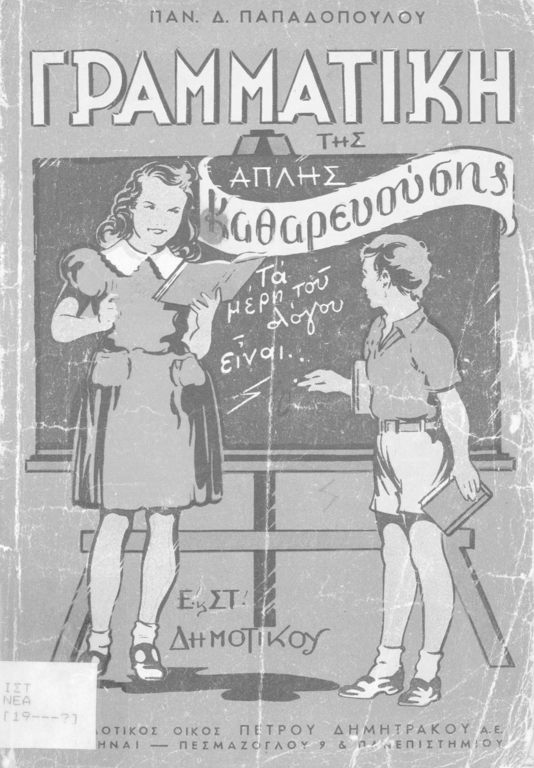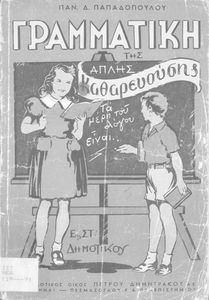 Μαθητικό βοήθημα που περιέχει τη γραμματική της απλής καθαρεύουσας για τα Δημοτικά Σχολεία.