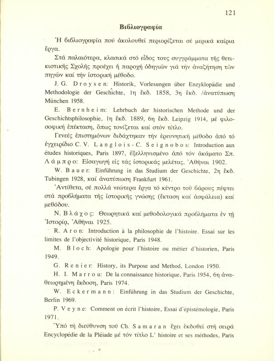 Σχολικό εγχειρίδιο Ιστορίας Γ΄ Λυκείου που περιλαμβάνει μια εισαγωγή στις ιστορικές σπουδές και μεθοδολογικά ζητήματα έρευνας της ιστορίας και σχολιάζει ζητήματα ιστορικών πηγών.