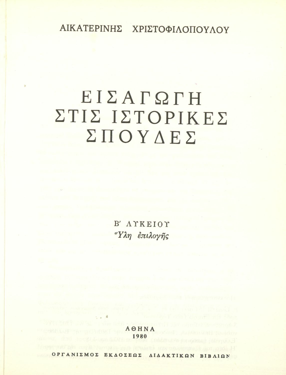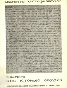 Σχολικό εγχειρίδιο Ιστορίας Β΄ Λυκείου που αποτελεί εισαγωγή στην ιστοριογραφία και την επιστήμη της ιστορίας και αναλύει τα είδη των ιστορικών πηγών.