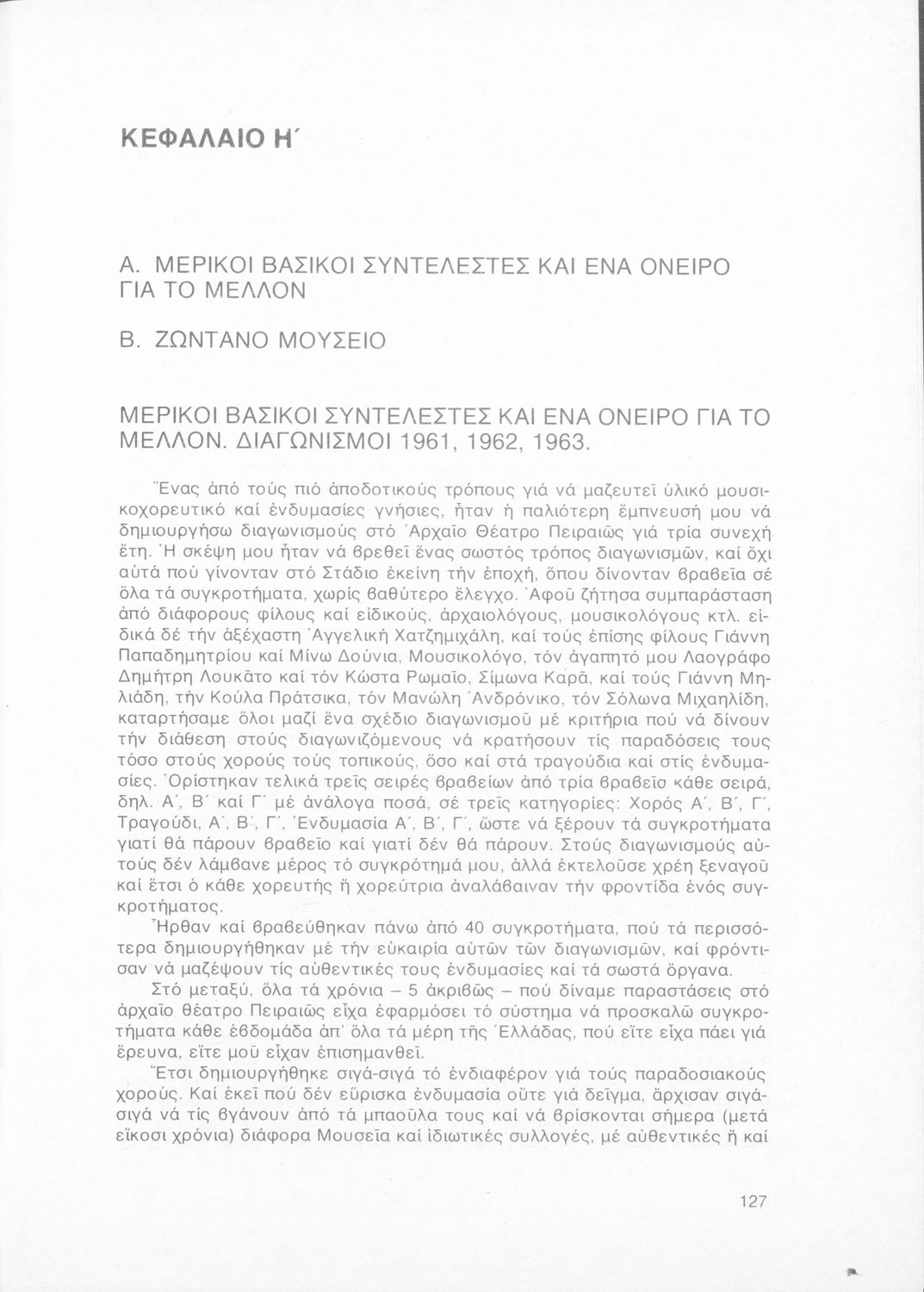 Έκδοση του Οργανισμού Εκδόσεως Διδακτικών Βιβλίων που περιλαμβάνει εισαγωγή στην ιστορία και κοινωνική λειτουργία του χορού και παρουσιάζει ελληνικούς παραδοσιακούς χορούς ανά περιοχή. Αποσκοπεί στην εθνική αυτογνωσία.