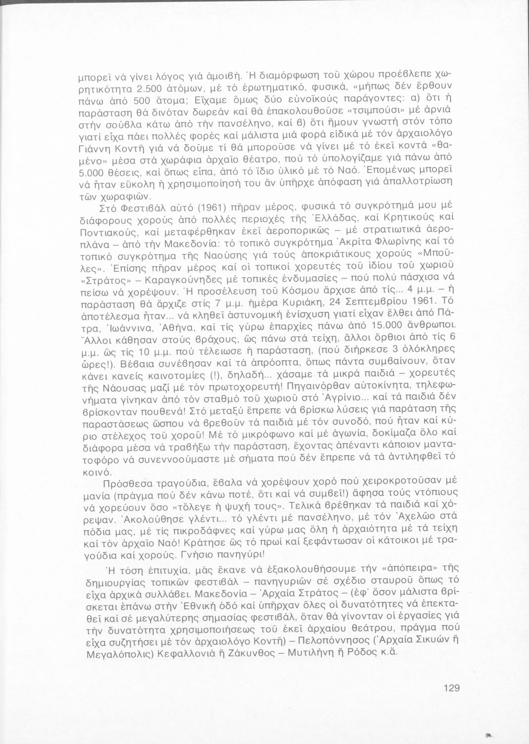 Παρουσίαση περιεχομένου: Έκδοση του Οργανισμού Εκδόσεως Διδακτικών Βιβλίων που περιλαμβάνει εισαγωγή στην ιστορία και κοινωνική λειτουργία του χορού και παρουσιάζει ελληνικούς παραδοσιακούς χορούς ανά περιοχή. Αποσκοπεί στην εθνική αυτογνωσία.