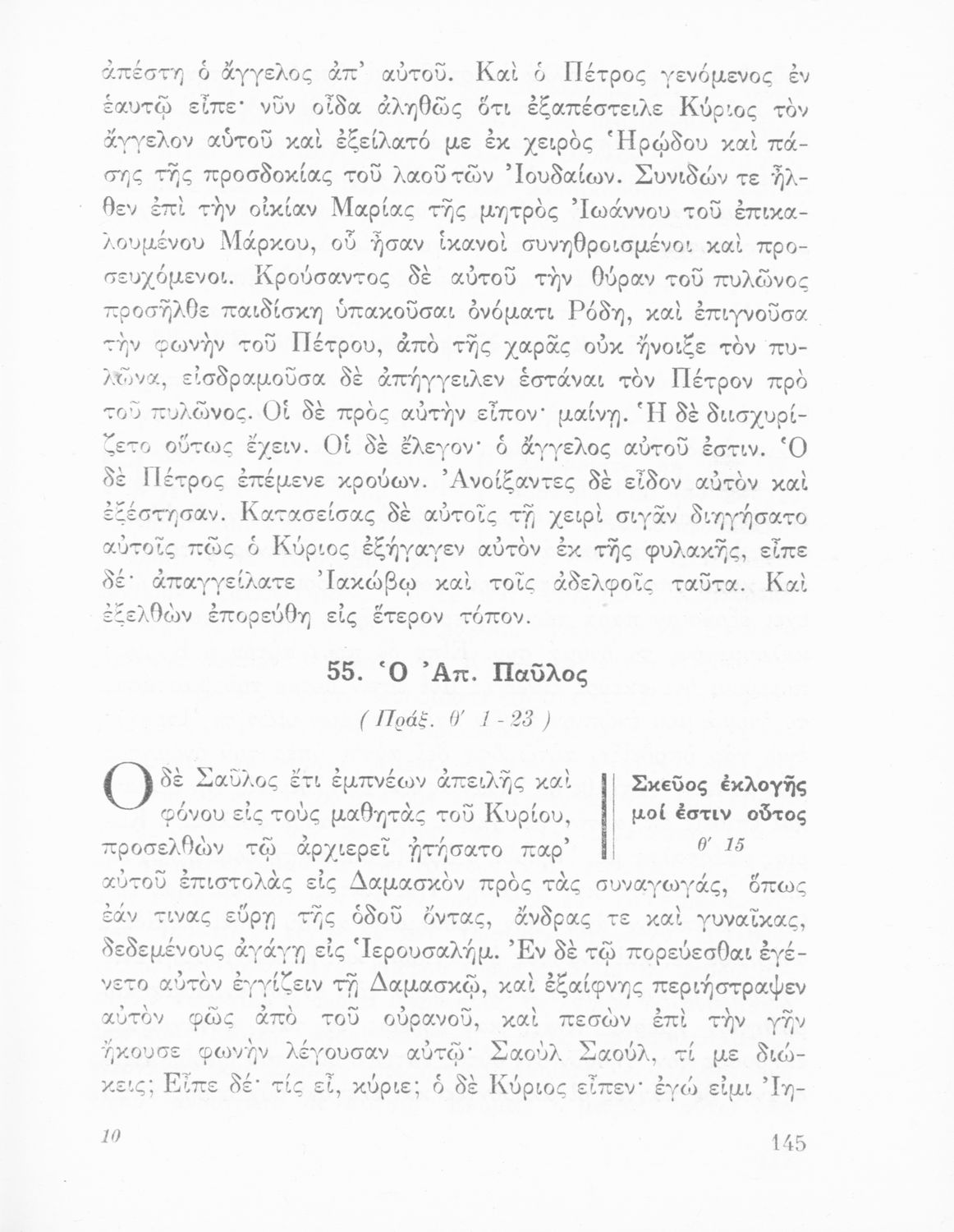 Σχολικό εγχειρίδιο Θρησκευτικών που περιλαμβάνει εισαγωγικά σχόλια στα βιβλία της Παλαιάς και Καινής Διαθήκης, περικοπές, ερμηνευτικές και πραγματολογικές σημειώσεις και πίνακα με τα κυριότερα ονόματα.