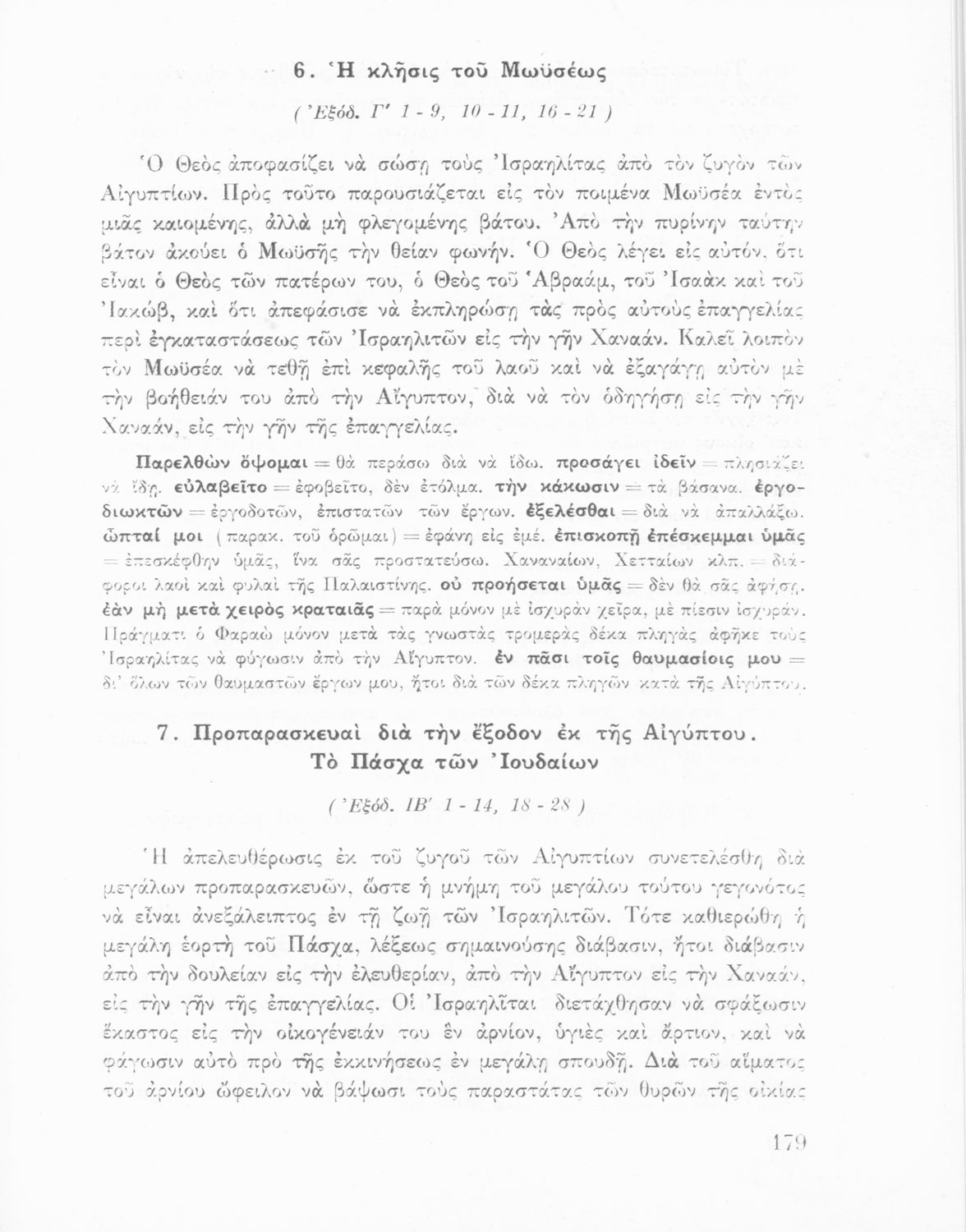 Σχολικό εγχειρίδιο Θρησκευτικών που περιλαμβάνει εισαγωγικά σχόλια στα βιβλία της Παλαιάς και Καινής Διαθήκης, περικοπές, ερμηνευτικές και πραγματολογικές σημειώσεις και πίνακα με τα κυριότερα ονόματα.