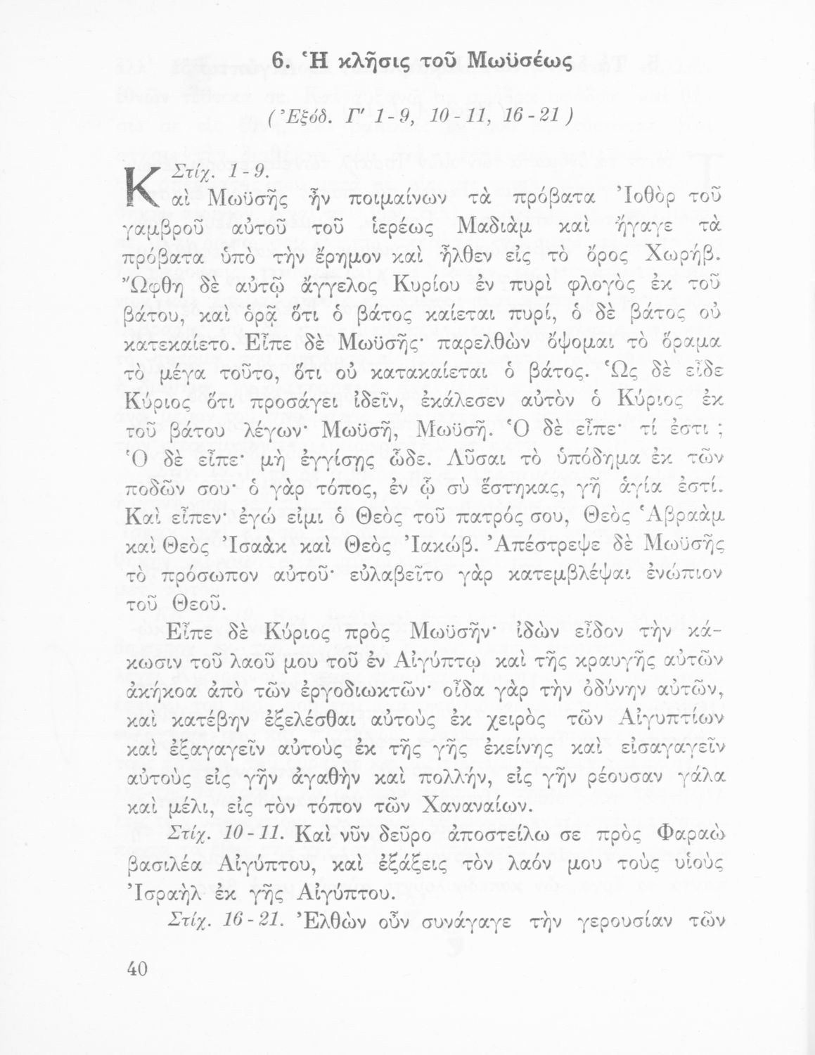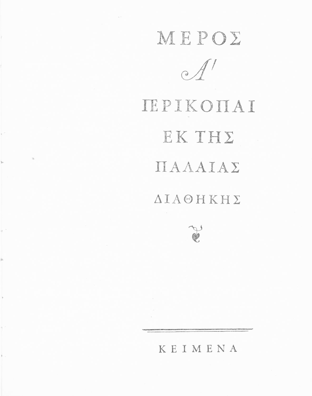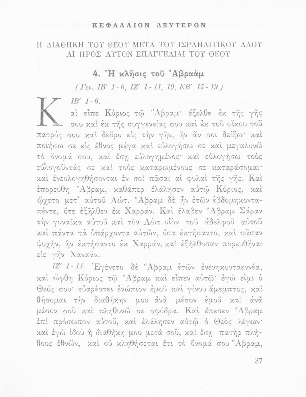 Σχολικό εγχειρίδιο Θρησκευτικών που περιλαμβάνει εισαγωγικά σχόλια στα βιβλία της Παλαιάς και Καινής Διαθήκης, περικοπές, ερμηνευτικές και πραγματολογικές σημειώσεις και πίνακα με τα κυριότερα ονόματα.