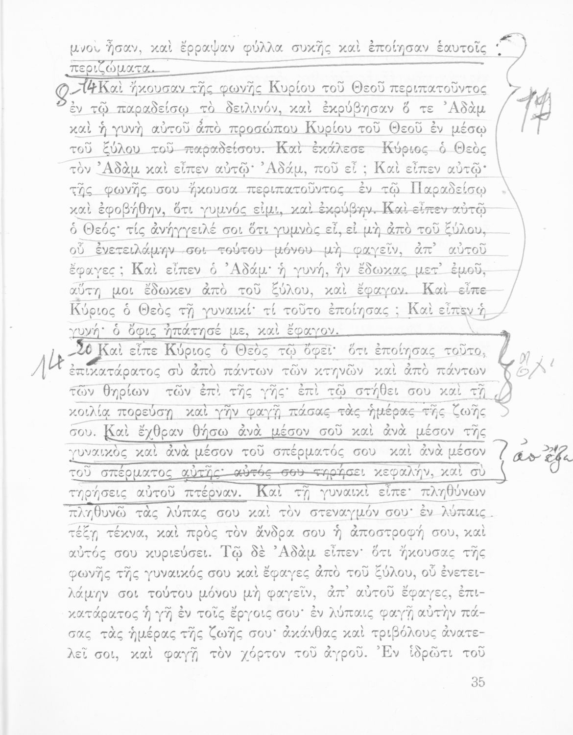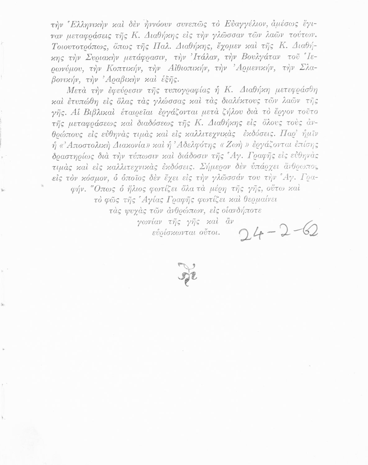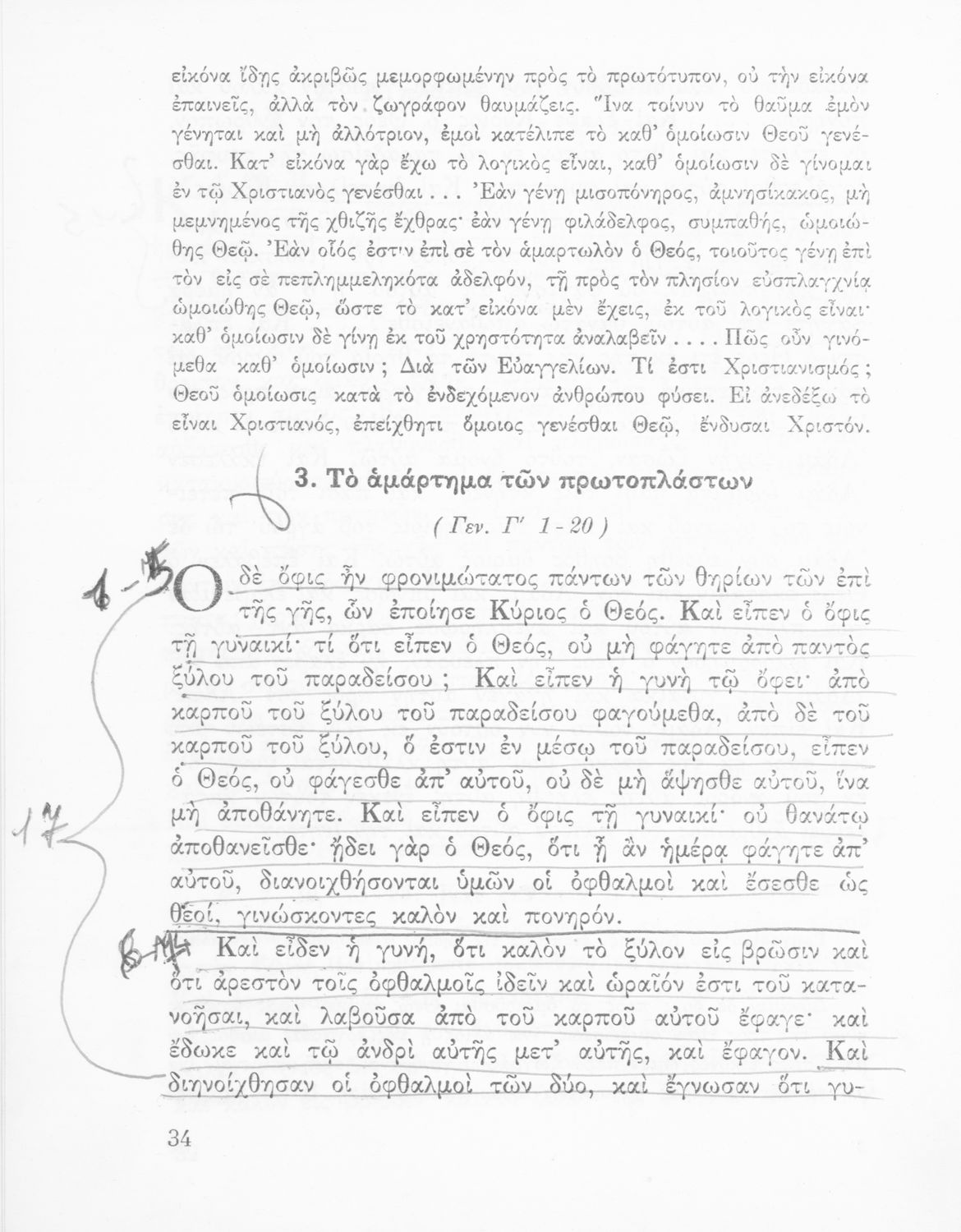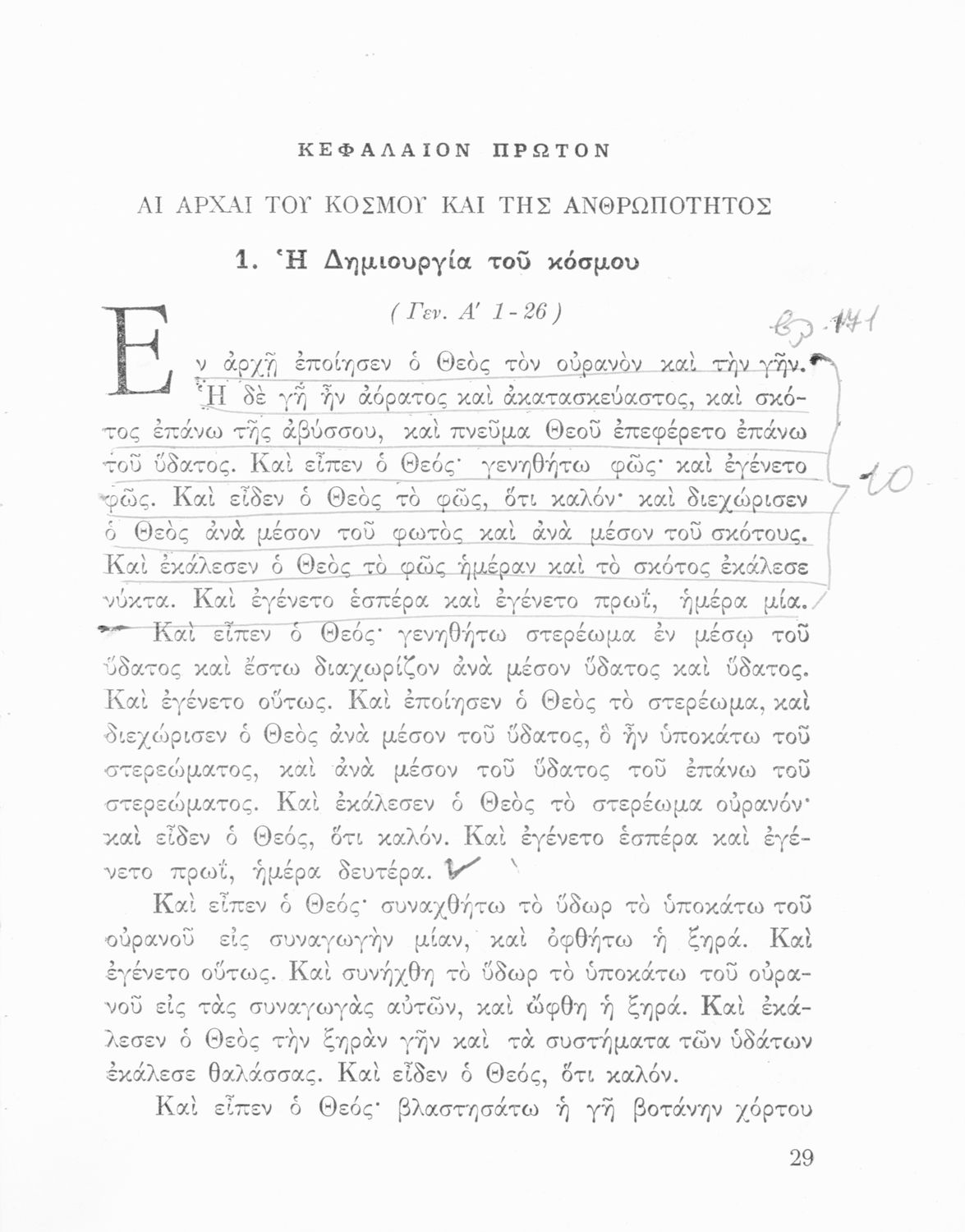 Σχολικό εγχειρίδιο Θρησκευτικών που περιλαμβάνει εισαγωγικά σχόλια στα βιβλία της Παλαιάς και Καινής Διαθήκης, περικοπές, ερμηνευτικές και πραγματολογικές σημειώσεις και πίνακα με τα κυριότερα ονόματα.
