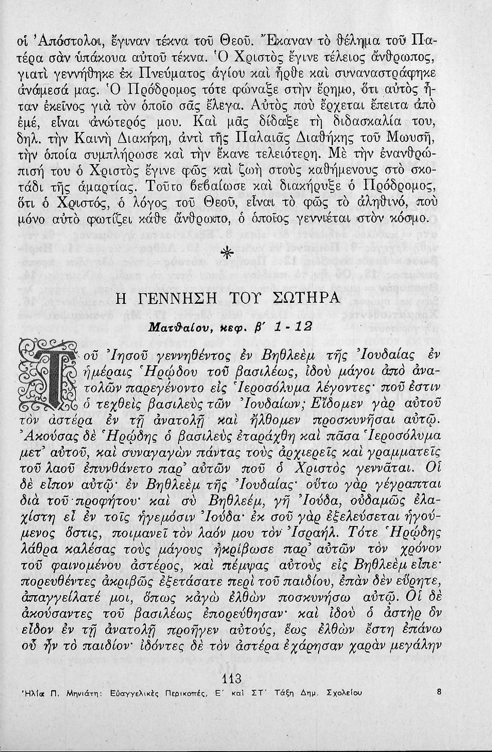 Κωδικός αναγνώρισης: 01-17440 Τίτλος: Ευαγγελικές Περικοπές για την Ε΄ και ΣΤ΄ τάξη του Δημοτικού Σχολείου Συγγραφέας: Ηλίας Π. Μηνιάτης Μέγεθος και υπόστρωμα: Μαθητικό βοήθημα, 20εκ., μαλακό εξώφυλλο, 160 σελίδες. Εικόνες (ασπρόμαυρες). |