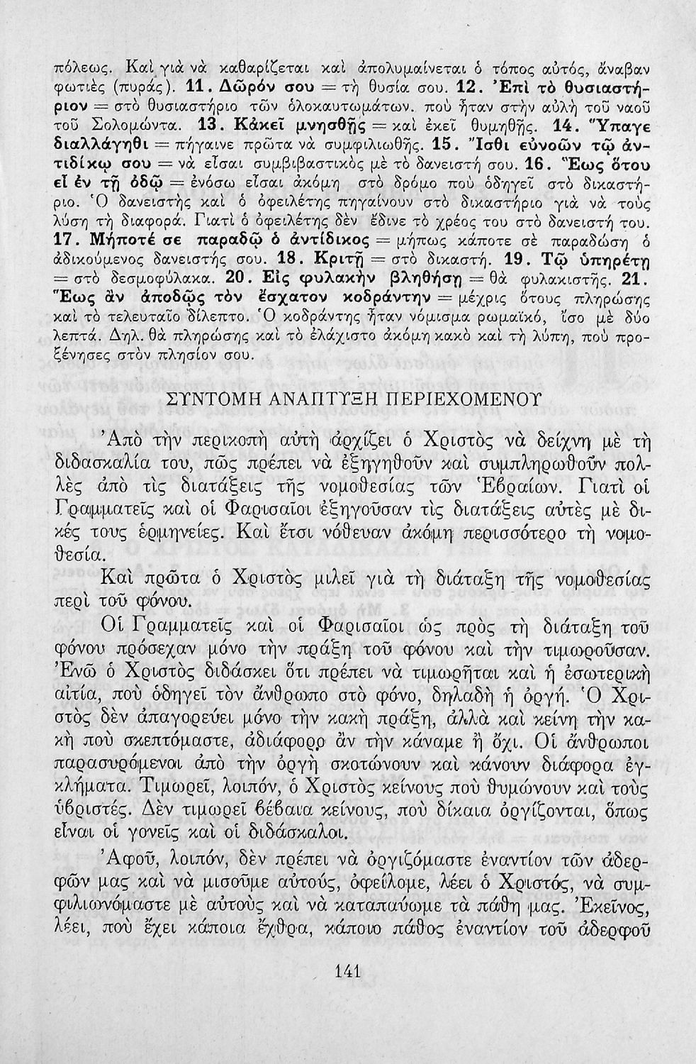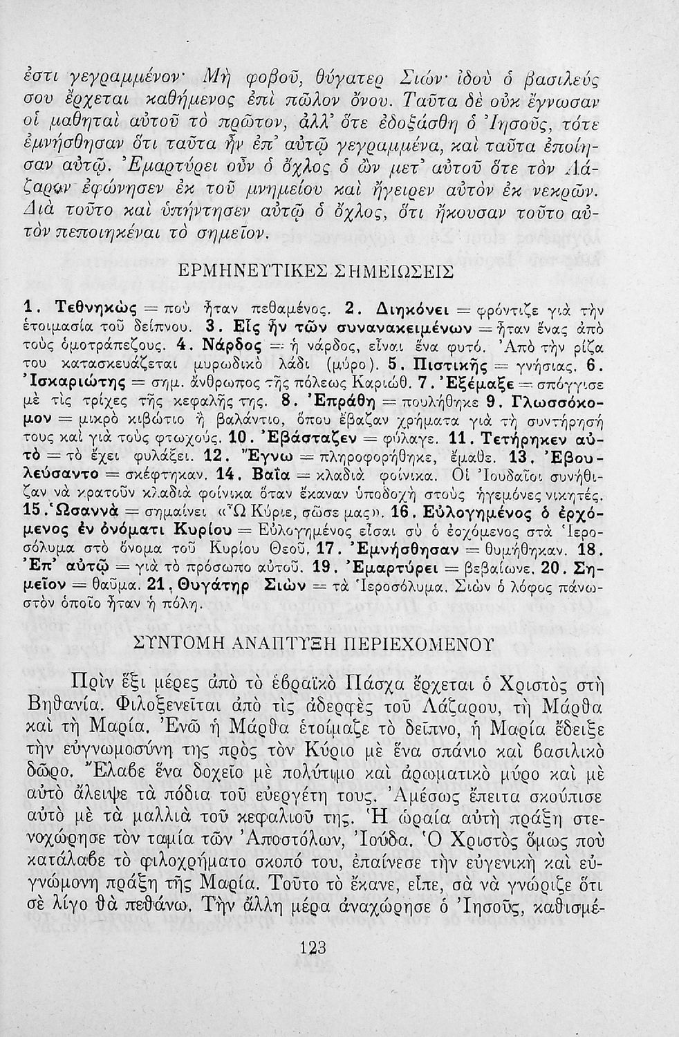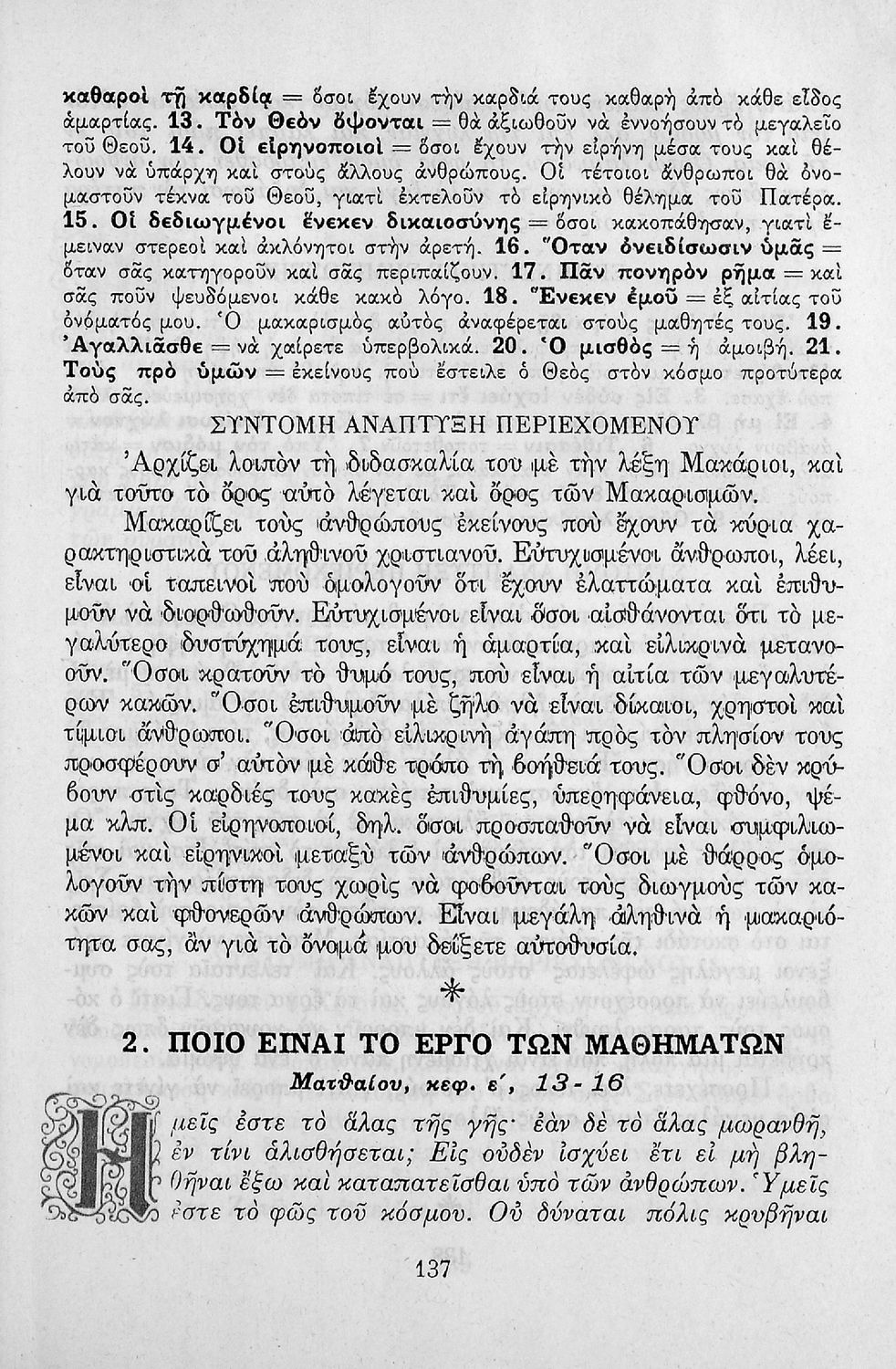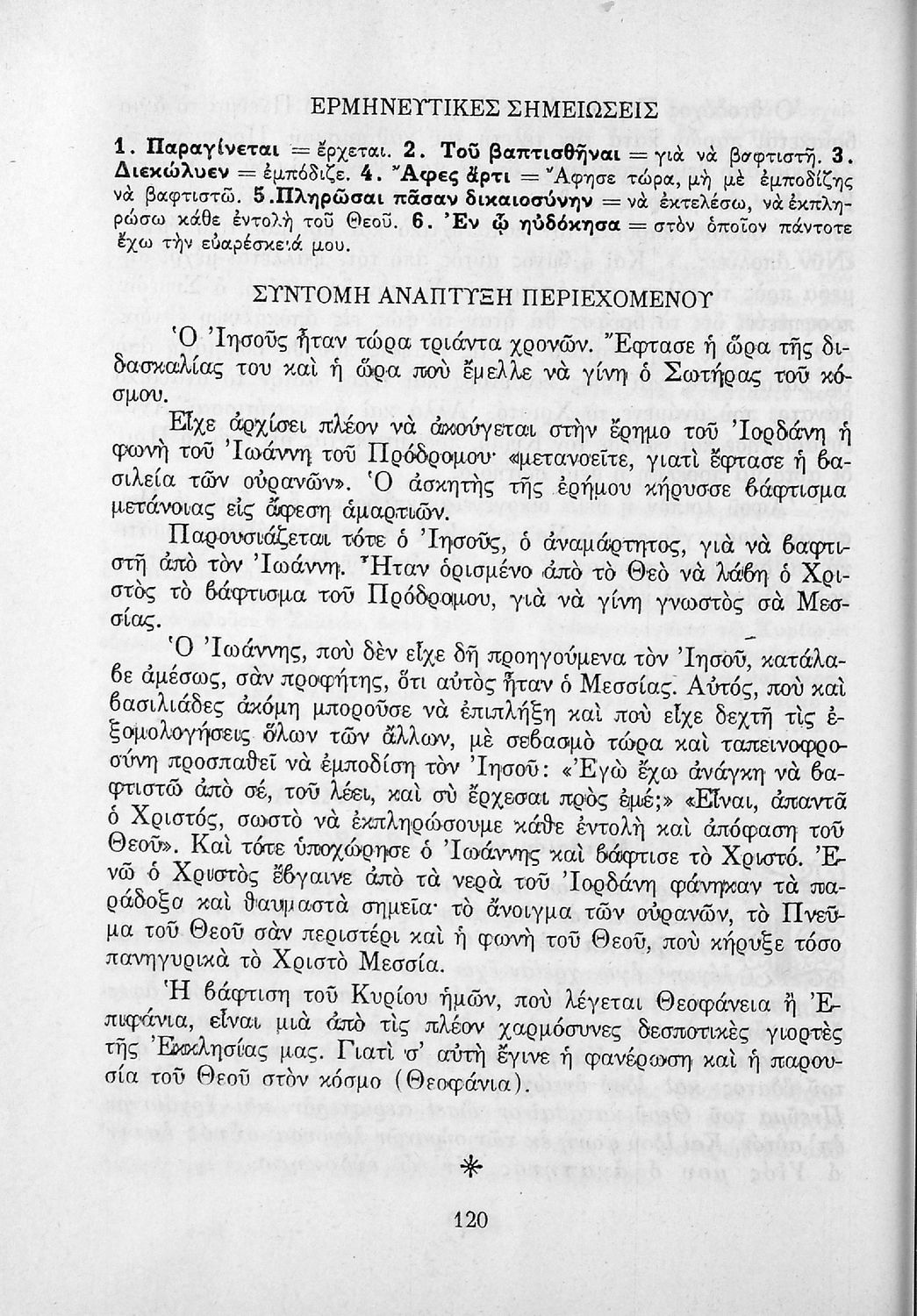 Βαθμίδα εκπαίδευσης: Πρωτοβάθμια Τάξη: Ε' Δημοτικού / ΣΤ' Δημοτικού Μάθημα: Θρησκευτικά Γλώσσα: Δημοτική Παρουσίαση περιεχομένου: Μαθητικό βοήθημα Θρησκευτικών για τις Ε΄ και ΣΤ΄ Δημοτικού που περιλαμβάνει εισαγωγικά σχόλια στα βιβλία της Παλαιάς και Καινής Διαθήκης, βιογραφικά σημειώματα των ευαγγελιστών περικοπές, και ερμηνευτικές και πραγματολογικές σημειώσεις. |