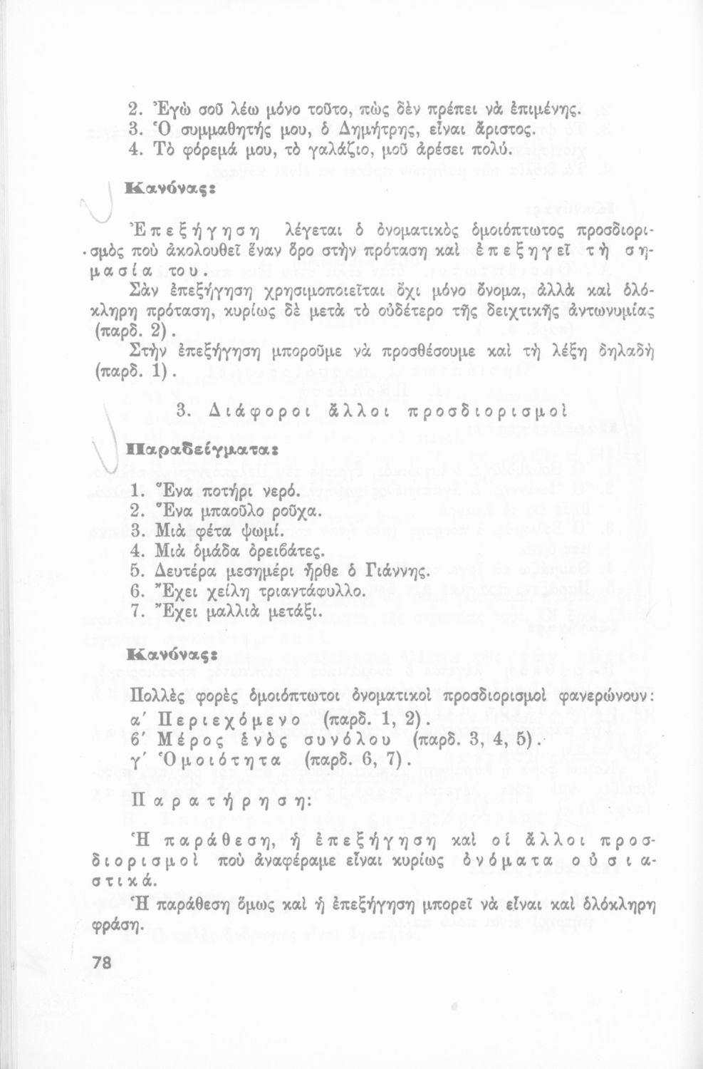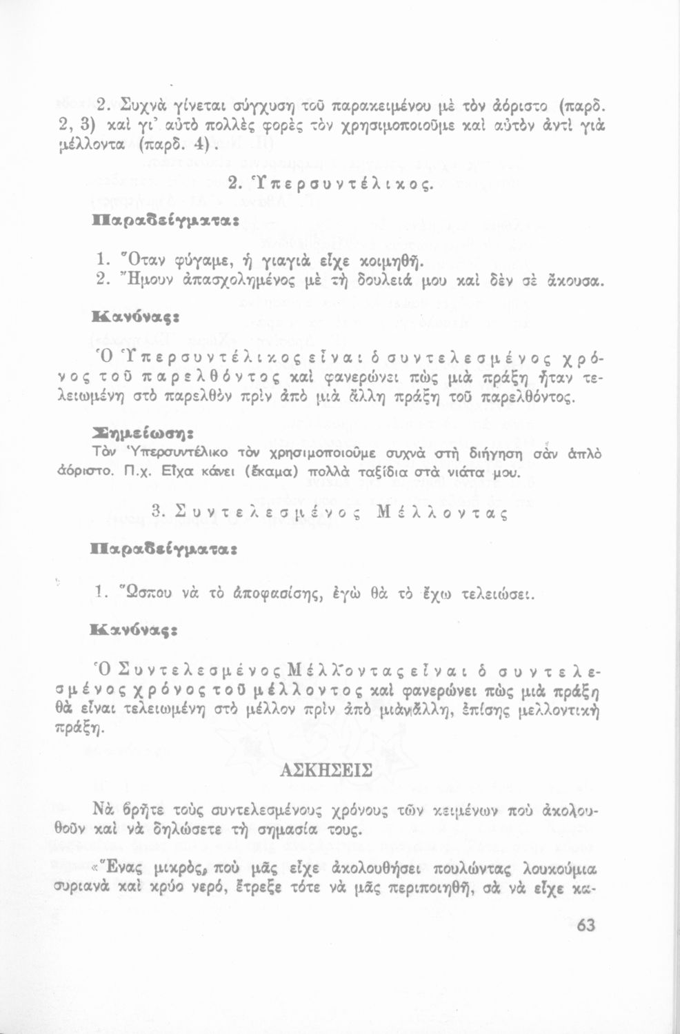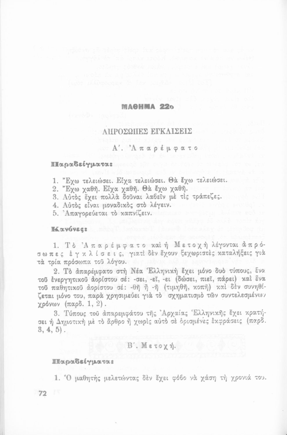 Σχολικό εγχειρίδιο Νέων Ελληνικών που παρουσιάζει το συντακτικό της κοινής δημοτικής μέσα από κανόνες και παραδείγματα.