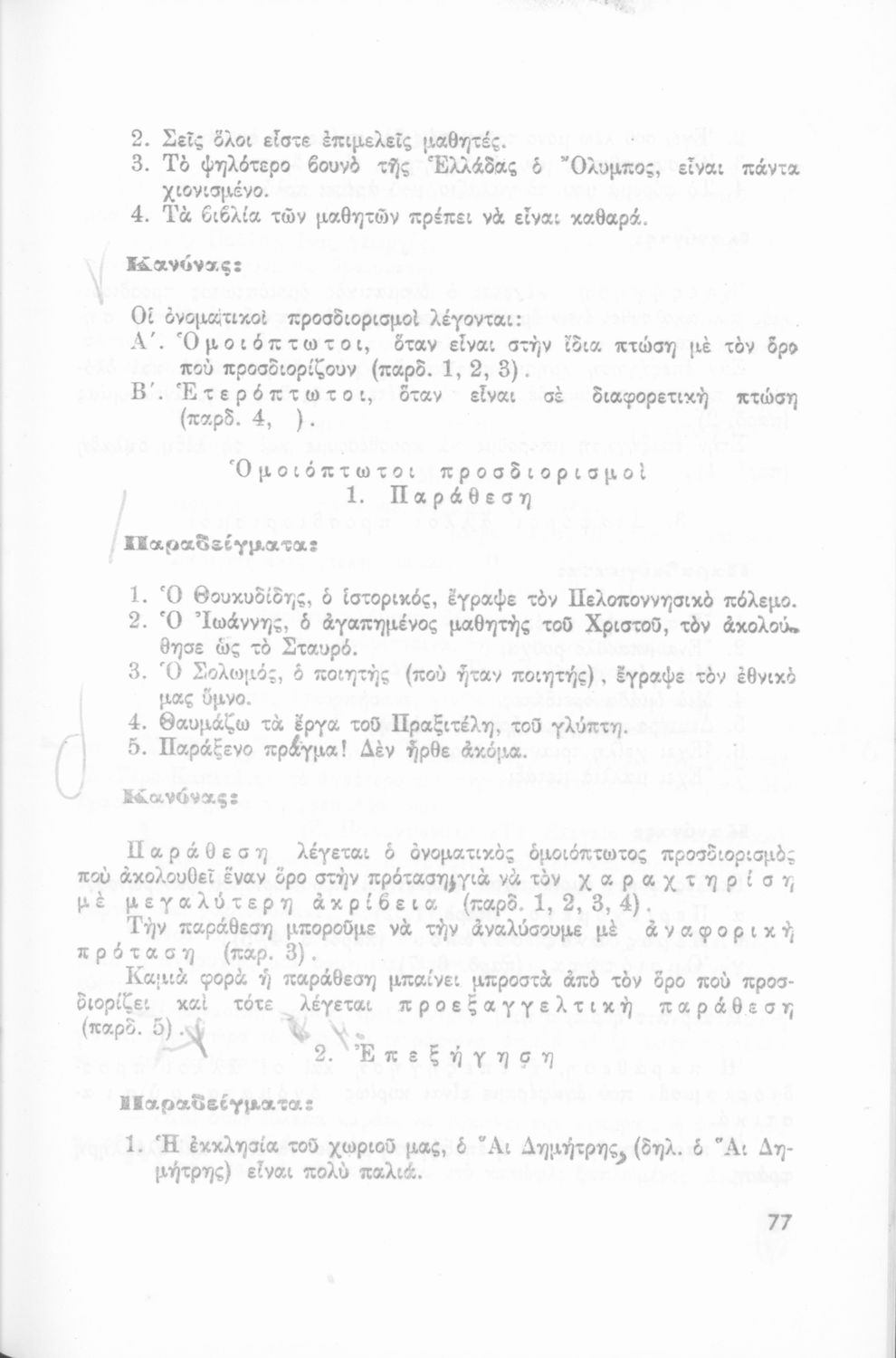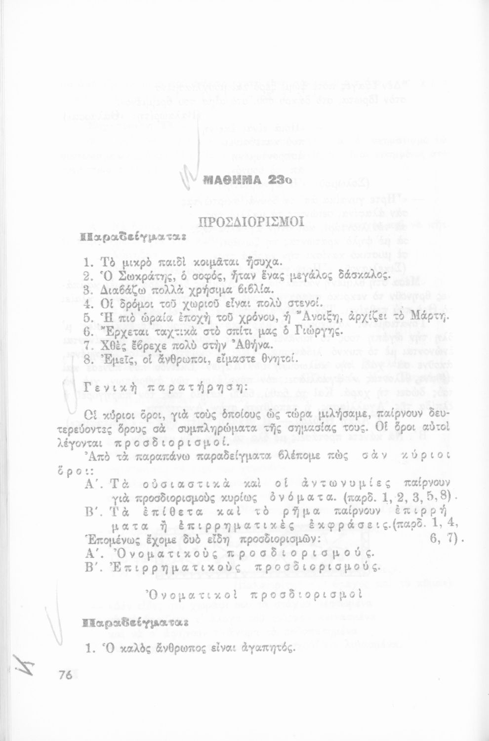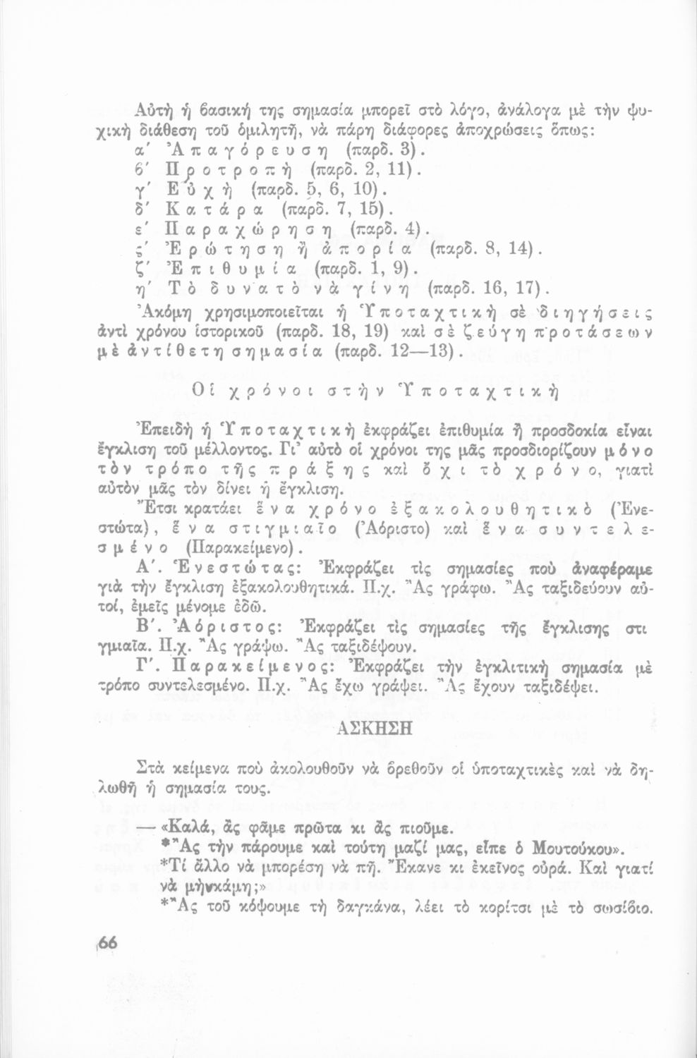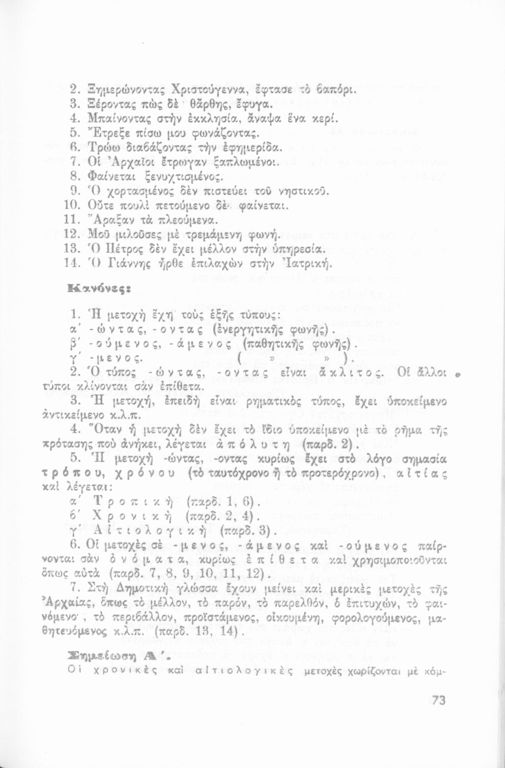 Μαθητικό βοήθημα Αρχαίων Ελληνικών Γυμνασίου που εξετάζει τα μέρη του λόγου και την σύνταξή τους.