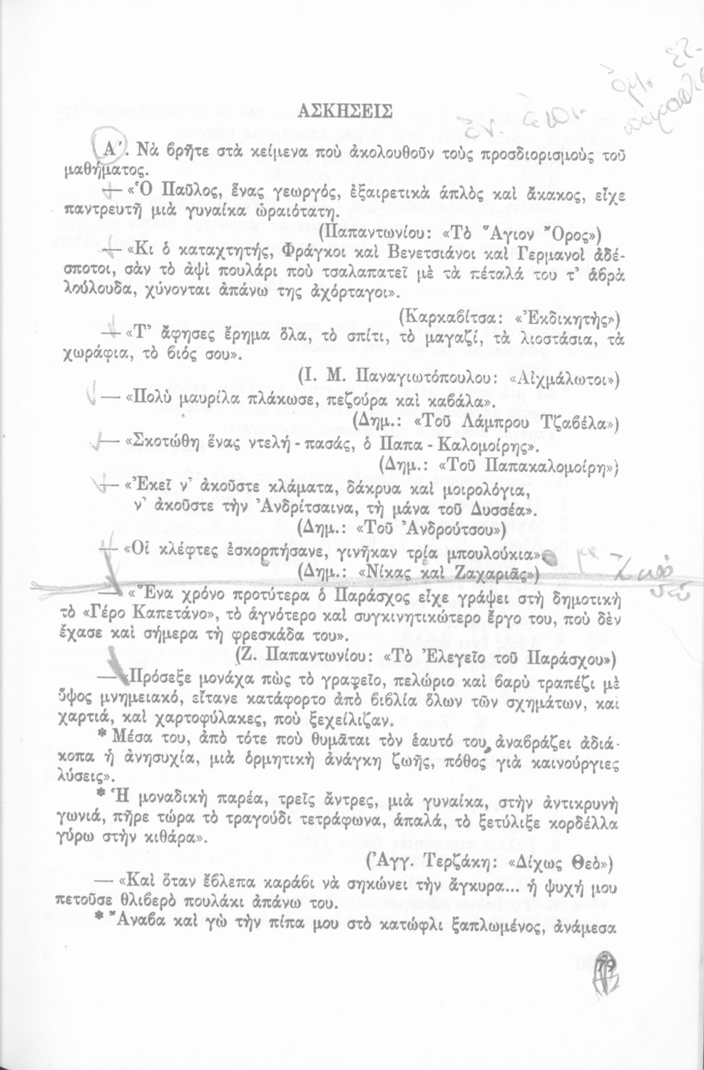 Παιδαγωγικό βοήθημα Γλώσσας για τον δάσκαλο. Περιέχει πεζά και ποιήματα Ελλήνων λογοτεχνών για την εκμάθηση της Ελληνικής γλώσσας.