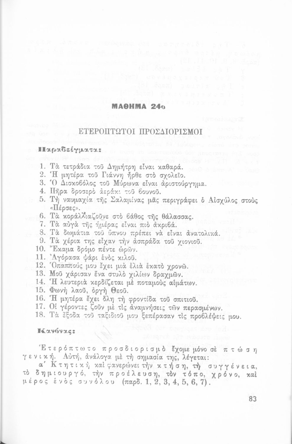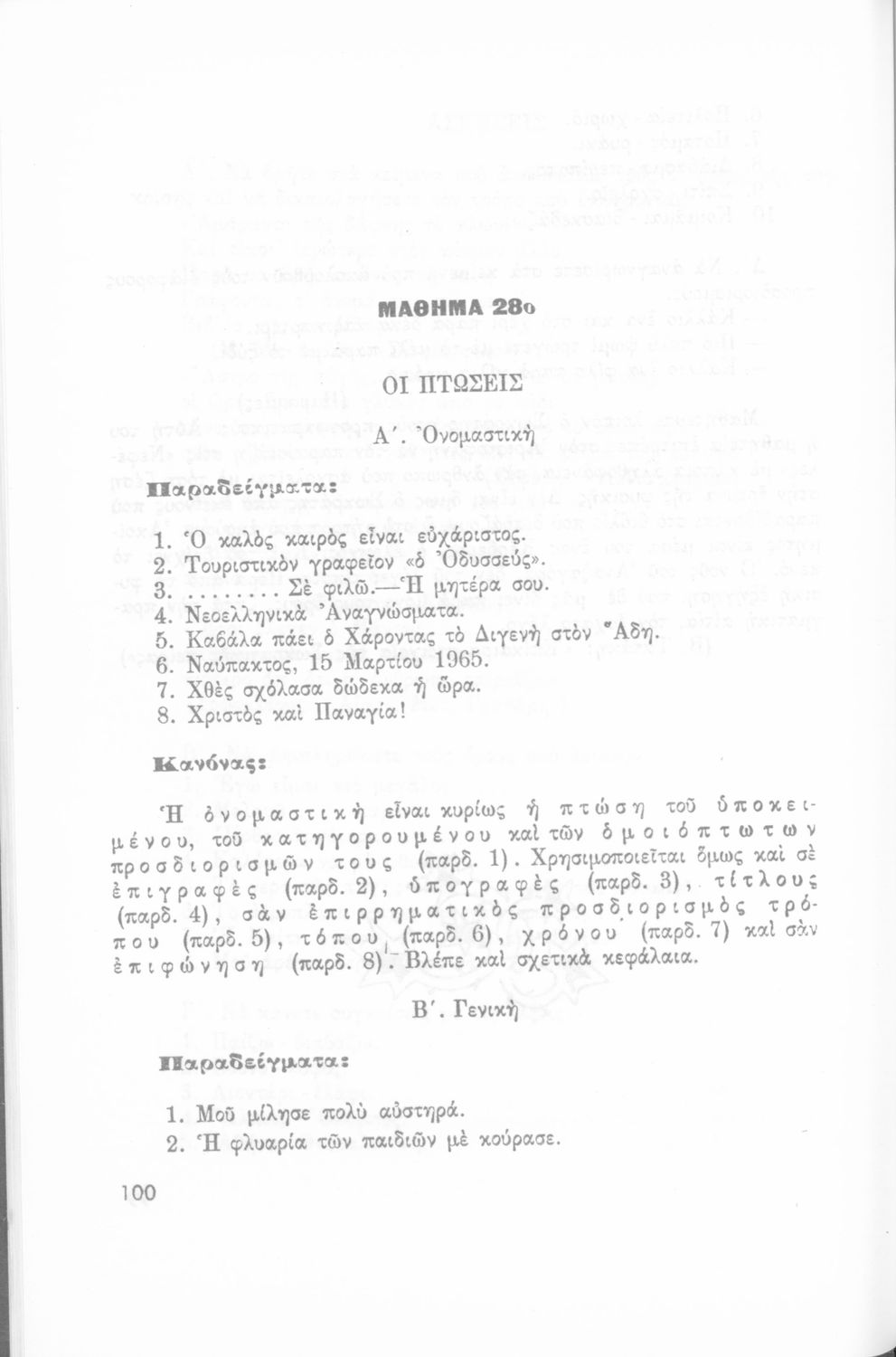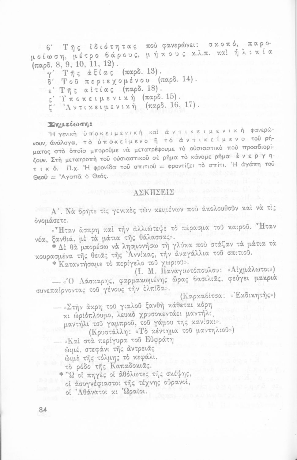 Μαθητικό βοήθημα Αρχαίων Ελληνικών Γυμνασίου που εξετάζει τα μέρη του λόγου και την σύνταξή τους.