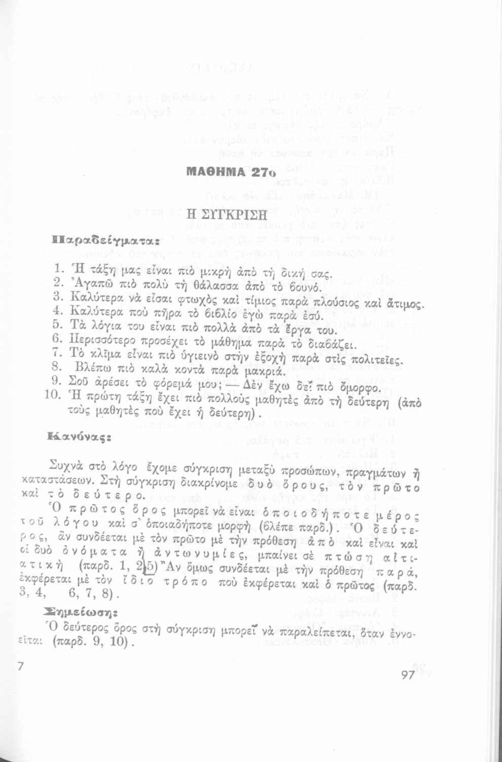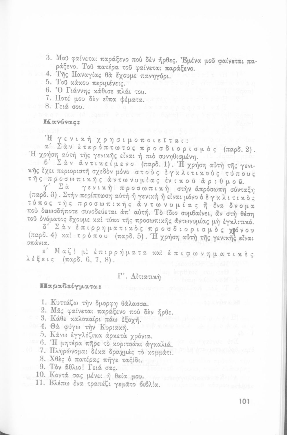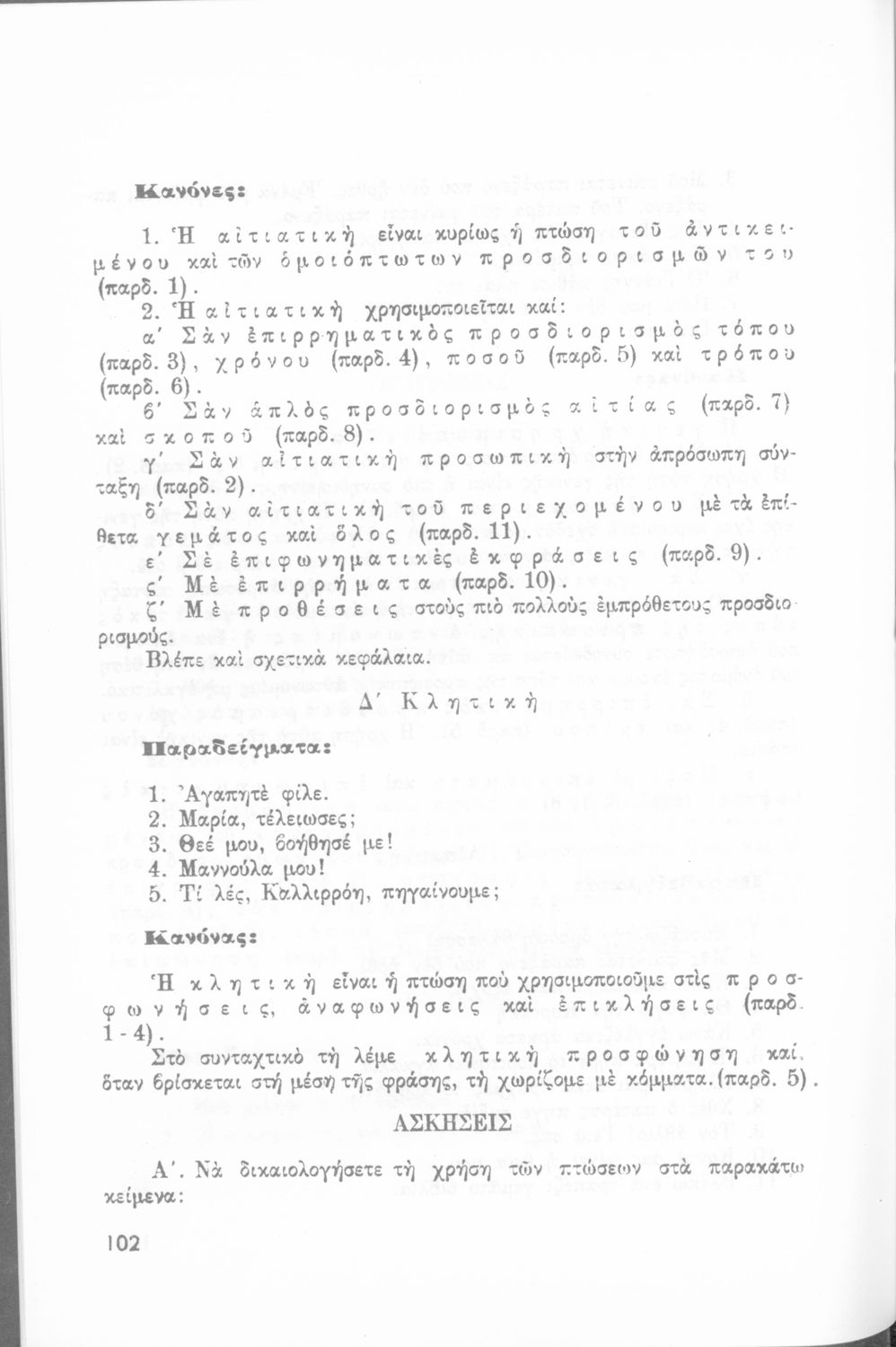 Σχολικό εγχειρίδιο Νέων Ελληνικών που παρουσιάζει το συντακτικό της κοινής δημοτικής μέσα από κανόνες και παραδείγματα.