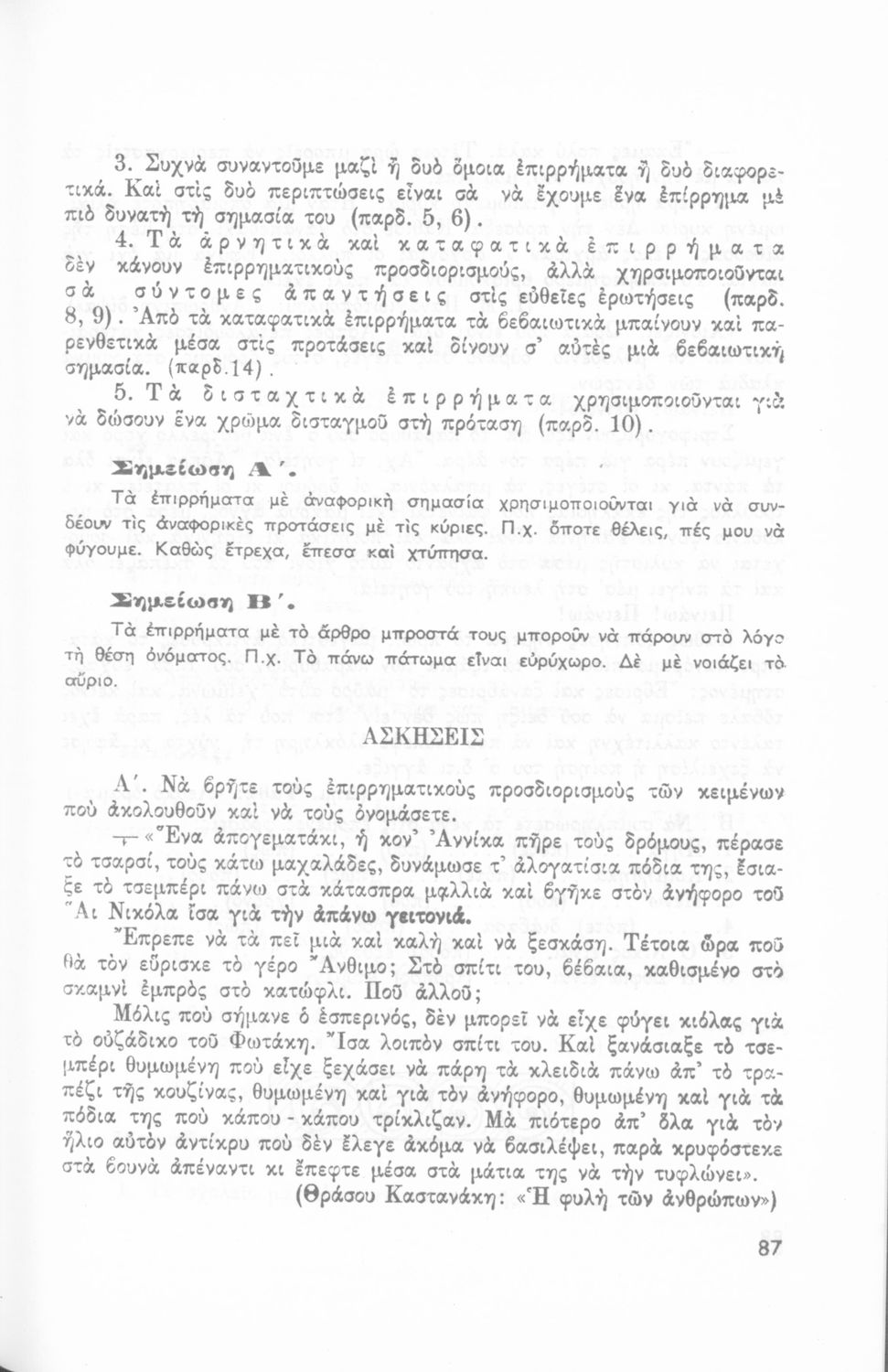 Σχολικό εγχειρίδιο για την Ε΄ και ΣΤ΄ Δημοτικού με κείμενα και ασκήσεις πάνω σε μαθήματα της Γραμματικής για εξάσκηση και εμπέδωση των μαθητών.
