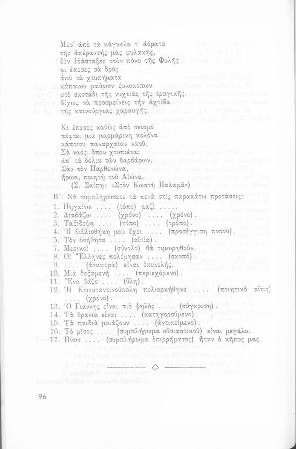 Παιδαγωγικό βοήθημα Γλώσσας για τον δάσκαλο. Περιέχει πεζά και ποιήματα Ελλήνων λογοτεχνών για την εκμάθηση της Ελληνικής γλώσσας.