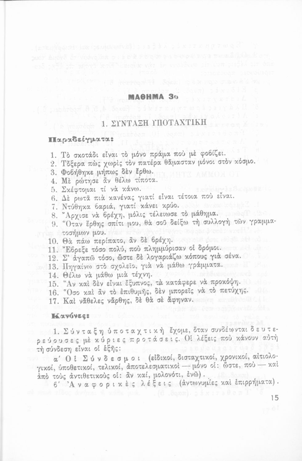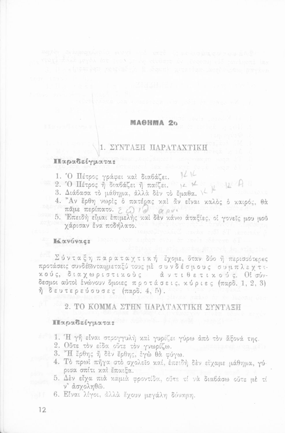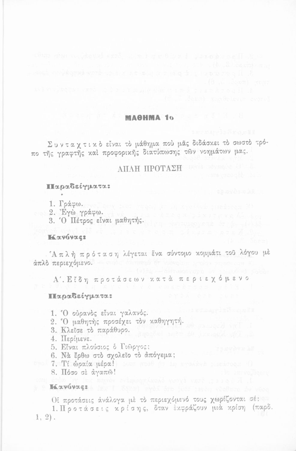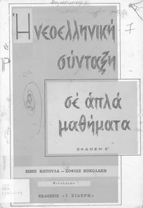 Σχολικό εγχειρίδιο Νέων Ελληνικών που παρουσιάζει το συντακτικό της κοινής δημοτικής μέσα από κανόνες και παραδείγματα.
