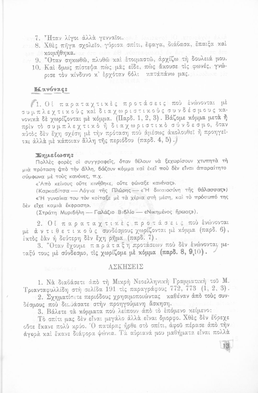 Σχολικό εγχειρίδιο συντακτικού που αναφέρεται στο σύνθετο λόγο και την συσχέτιση προτάσεων της Δημοτικής Γλώσσας.