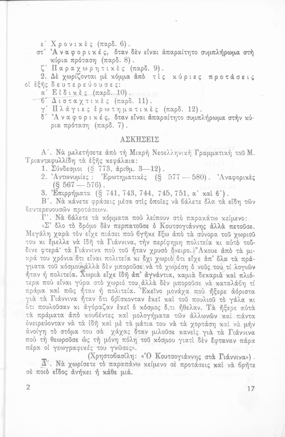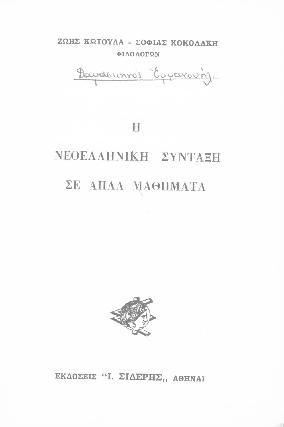 Μαθητικό βοήθημα Νέων Ελληνικών που επικεντρώνει στο συντακτικό.
