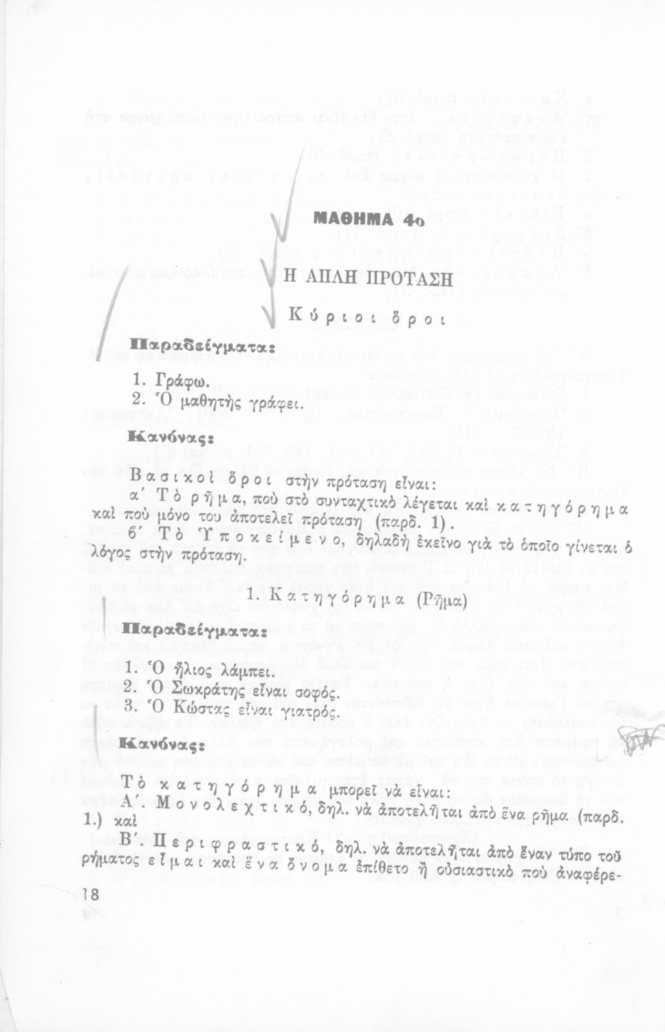 Μαθητικό βοήθημα Αρχαίων Ελληνικών Γυμνασίου που εξετάζει τα μέρη του λόγου και την σύνταξή τους.