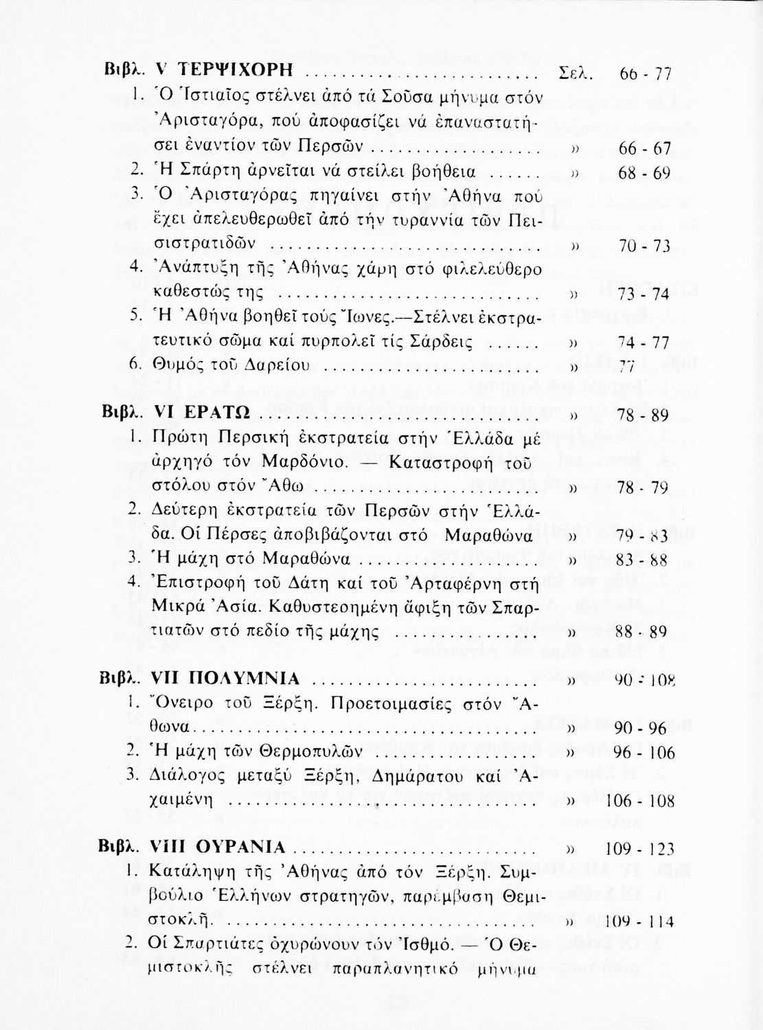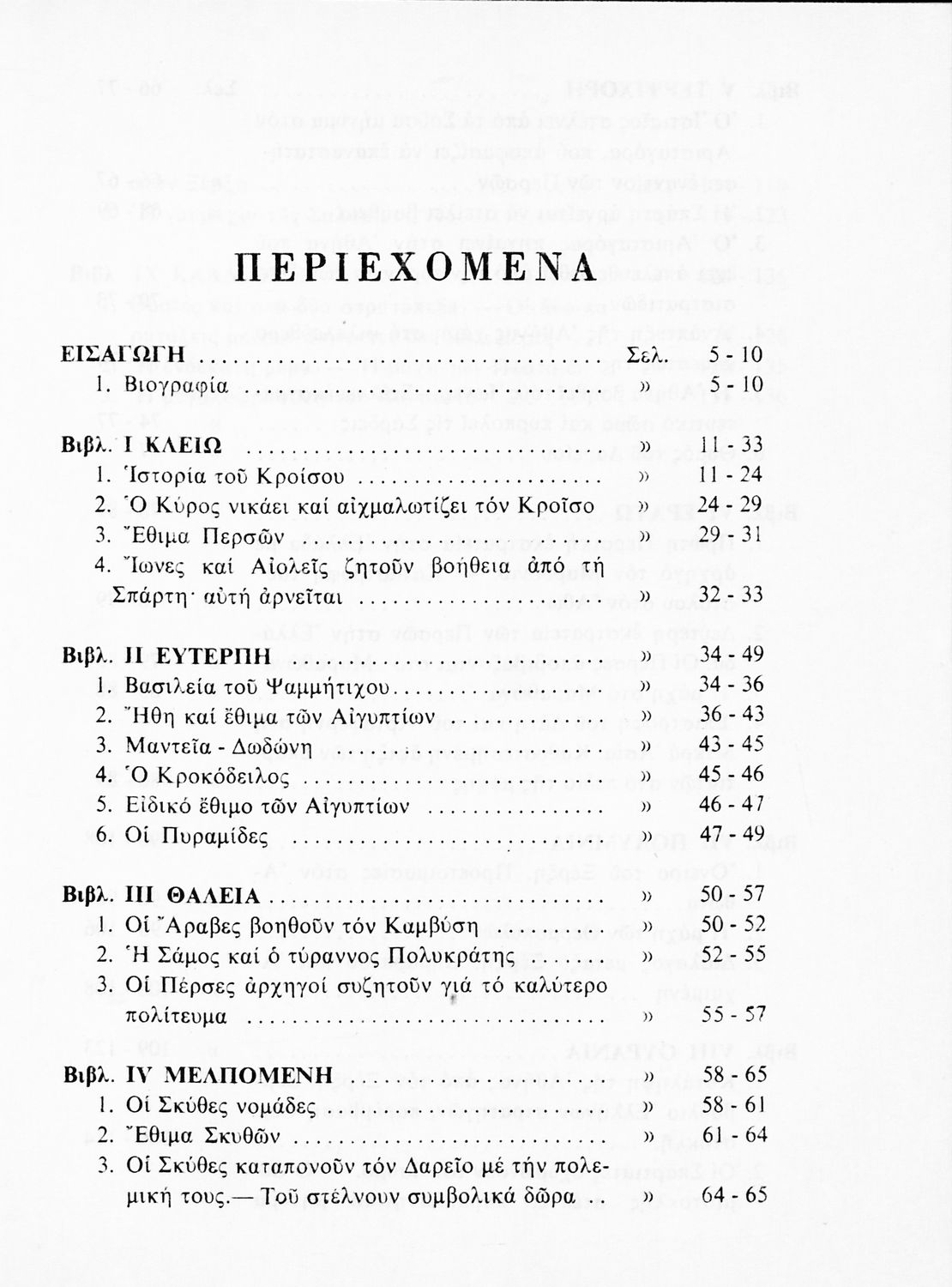 Σχολικό εγχειρίδιο Αρχαίων Ελληνικών Α΄ Γυμνασίου που περιλαμβάνει αποσπάσματα από την Ιστορία του Ηρόδοτου σε μετάφραση, εισαγωγή στη ζωή, το έργο και τη διάλεκτό του και ερμηνευτικά και πραγματολογικά σχόλια.