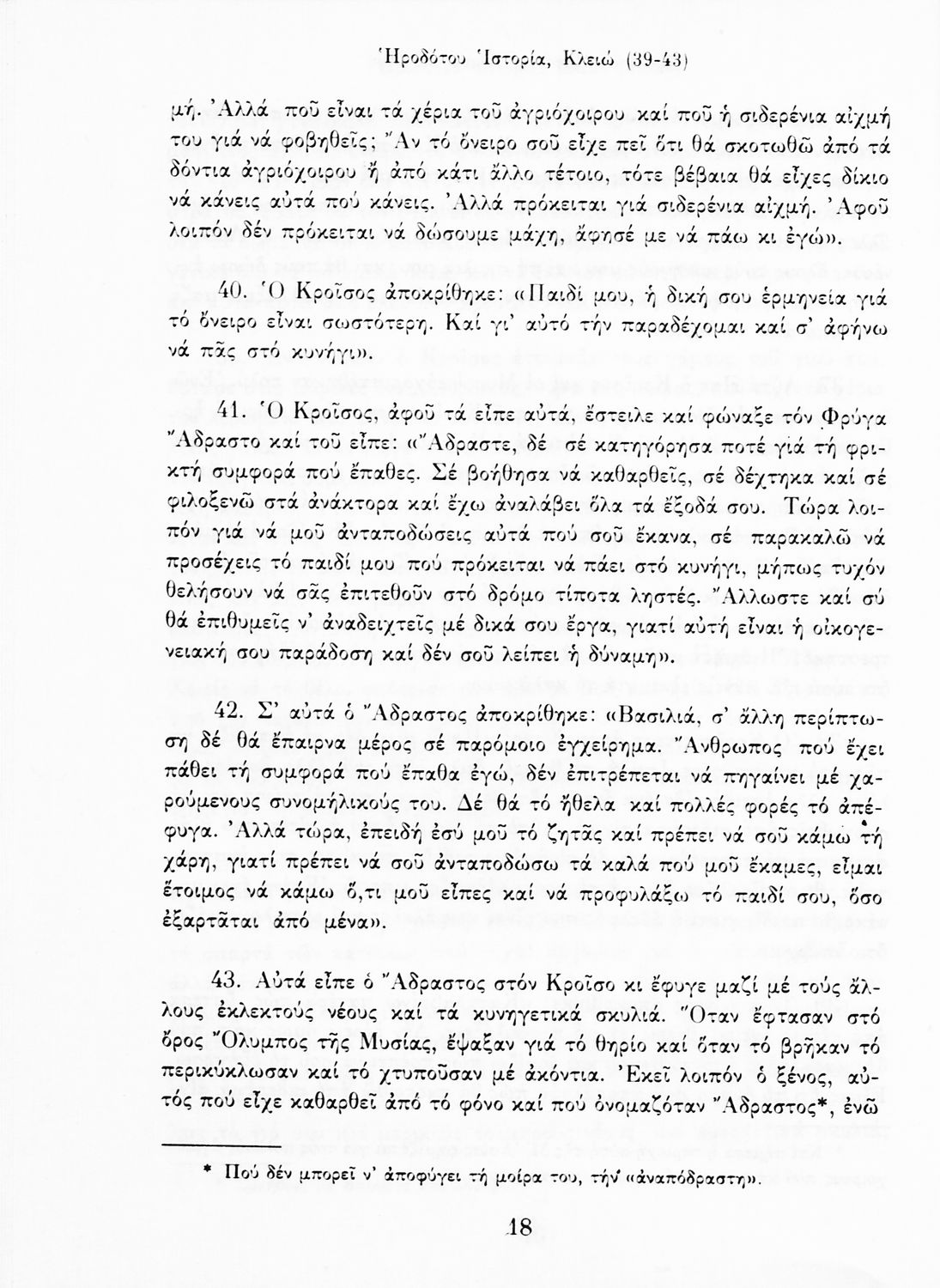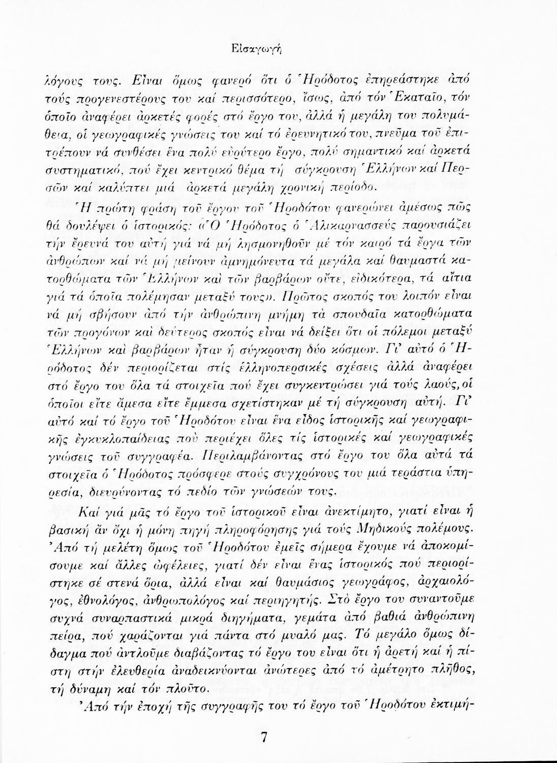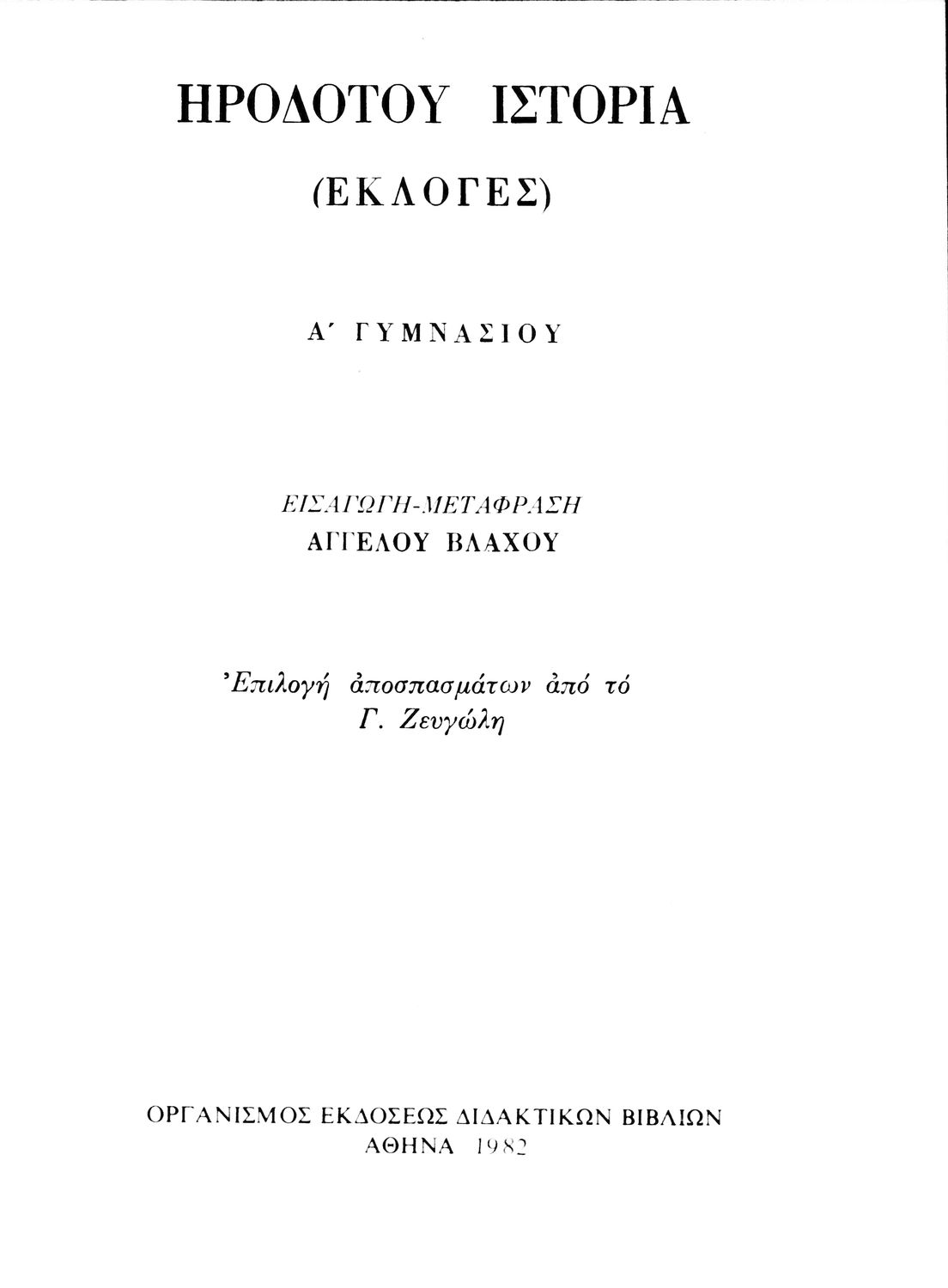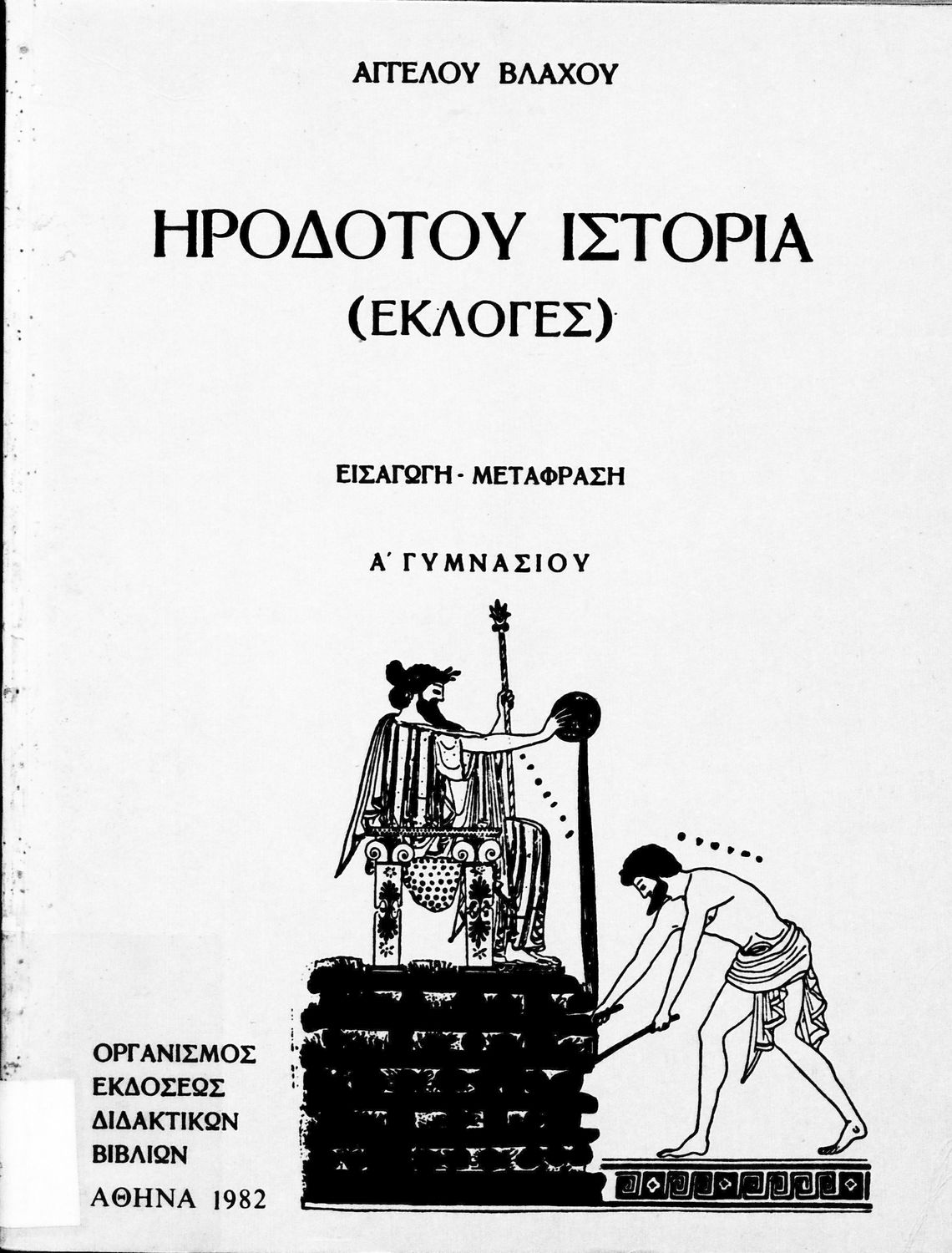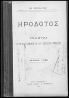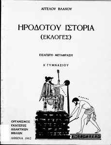 Σχολικό εγχειρίδιο Αρχαίων Ελληνικών Α΄ Γυμνασίου που περιλαμβάνει αποσπάσματα από την Ιστορία του Ηρόδοτου σε μετάφραση, εισαγωγή στη ζωή, το έργο και τη διάλεκτό του και ερμηνευτικά και πραγματολογικά σχόλια.