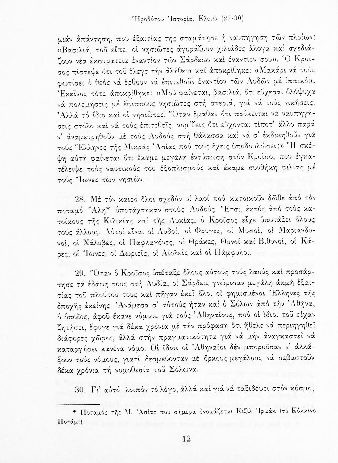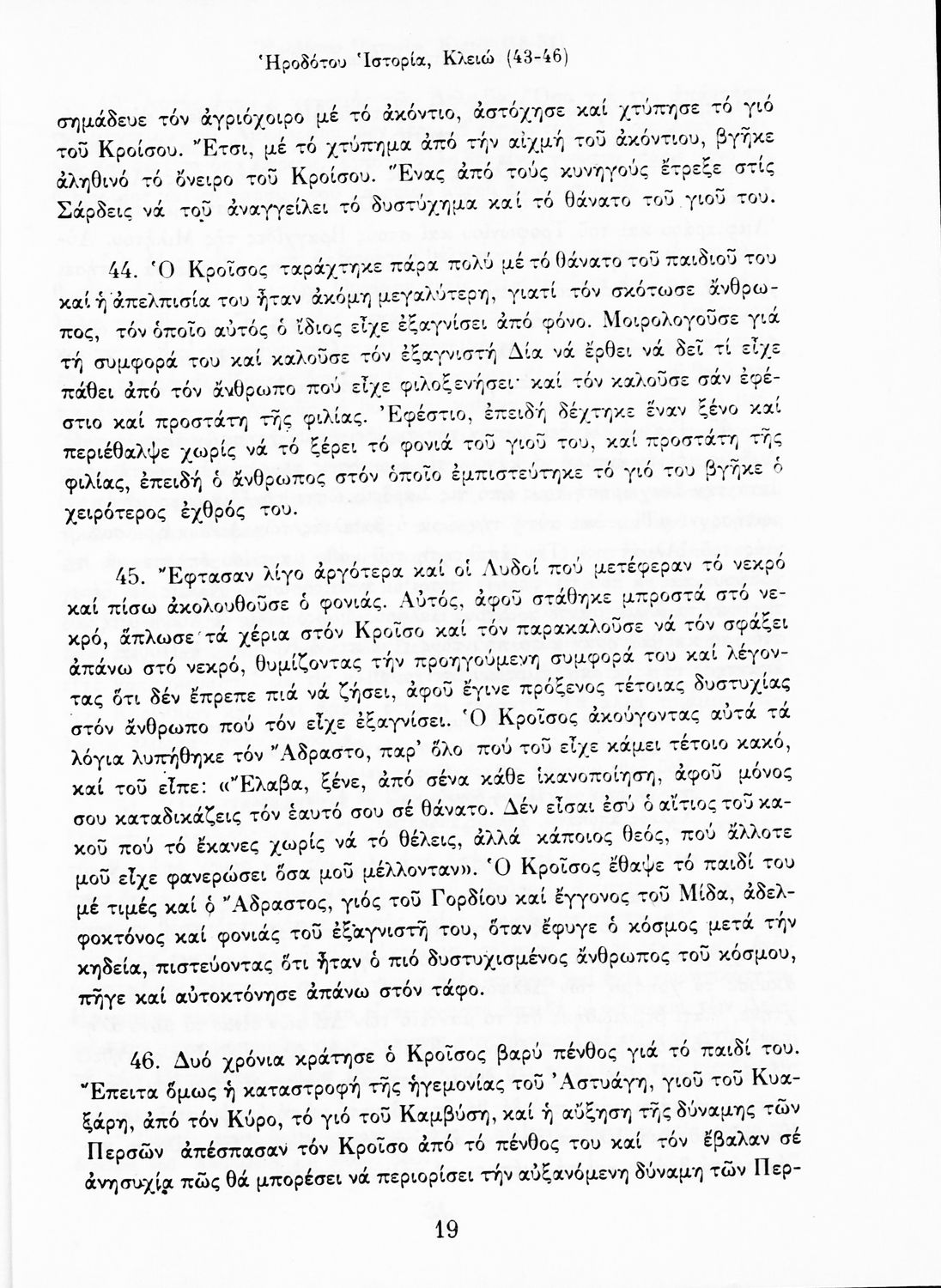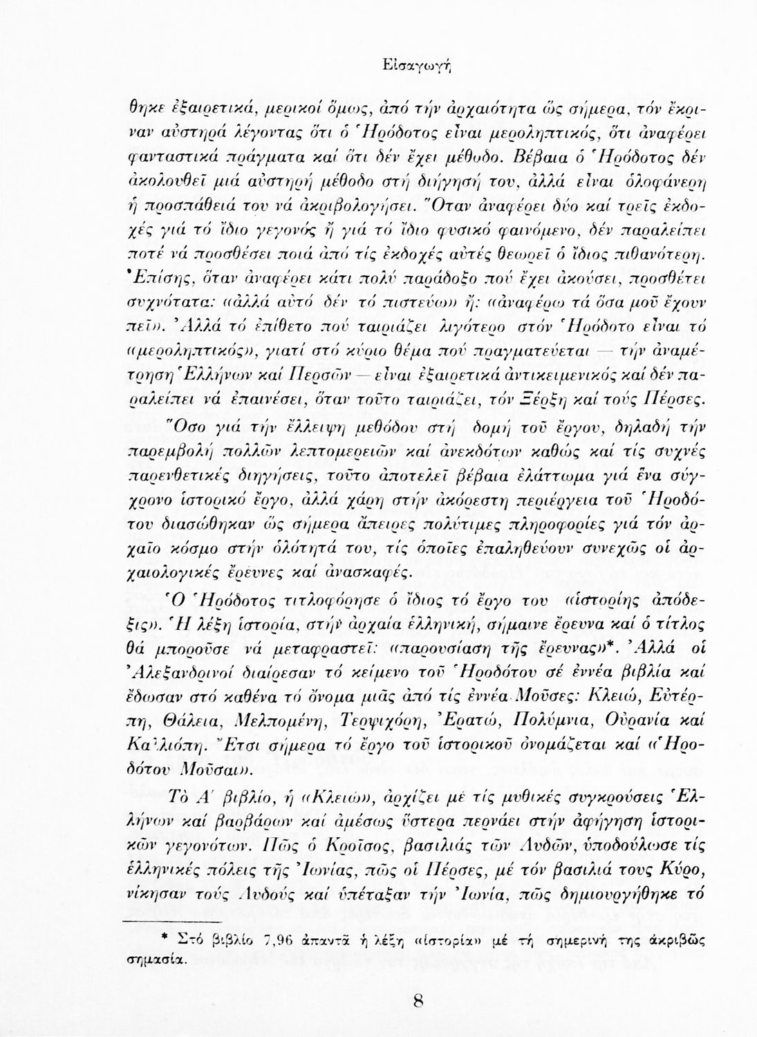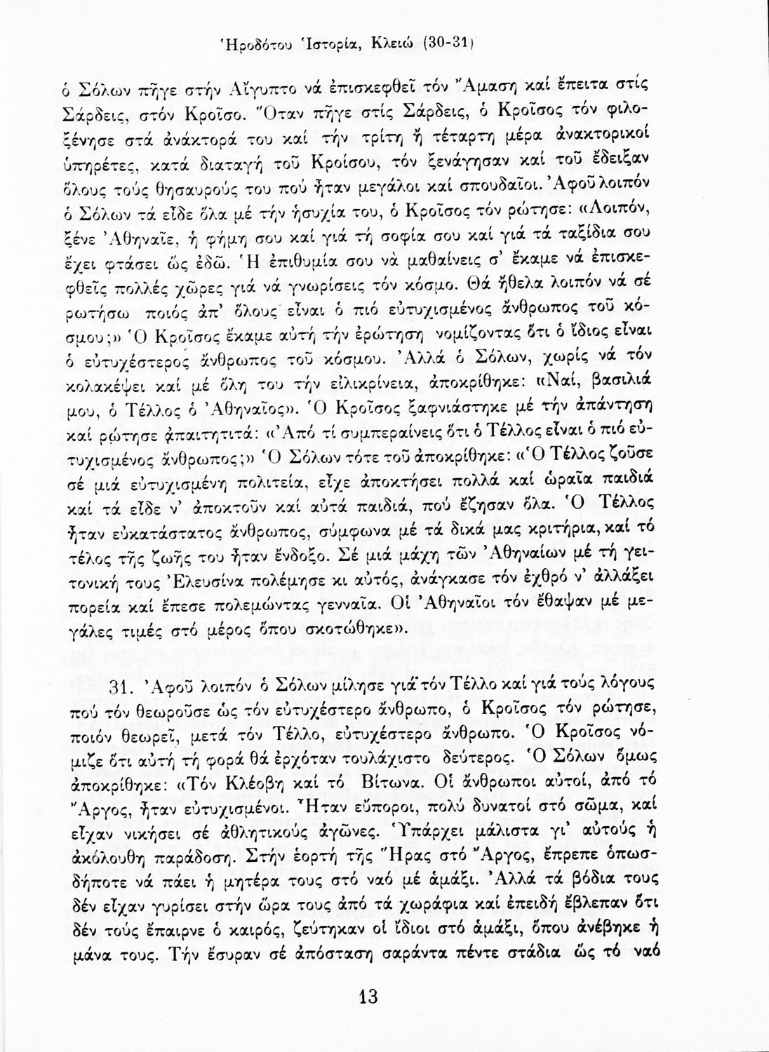 Σχολικό εγχειρίδιο Αρχαίων Ελληνικών Α΄ Γυμνασίου που περιλαμβάνει αποσπάσματα από την Ιστορία του Ηρόδοτου σε μετάφραση, εισαγωγή στη ζωή, το έργο και τη διάλεκτό του και ερμηνευτικά και πραγματολογικά σχόλια.
