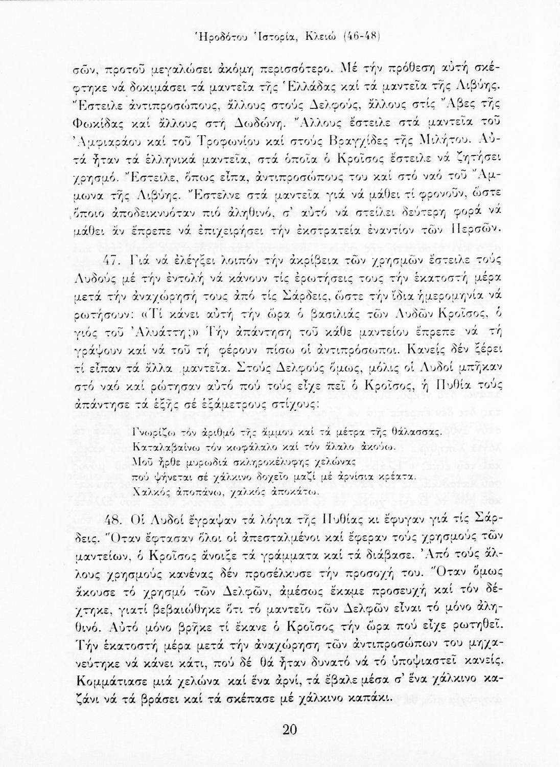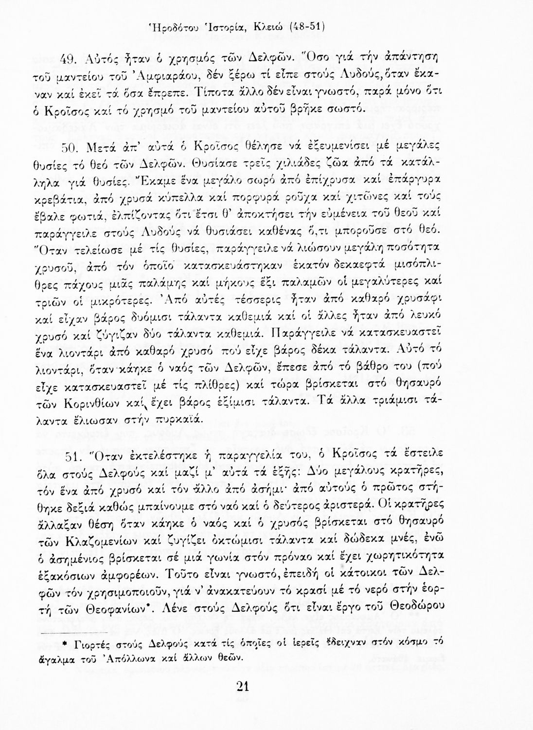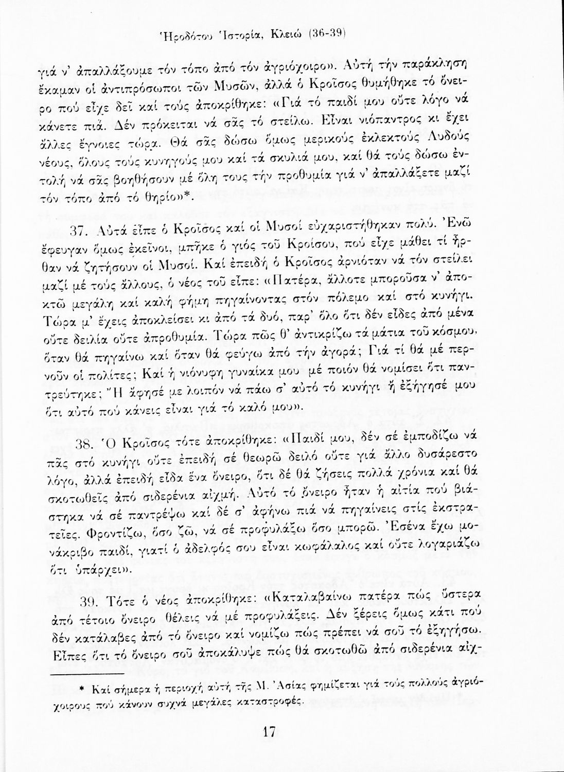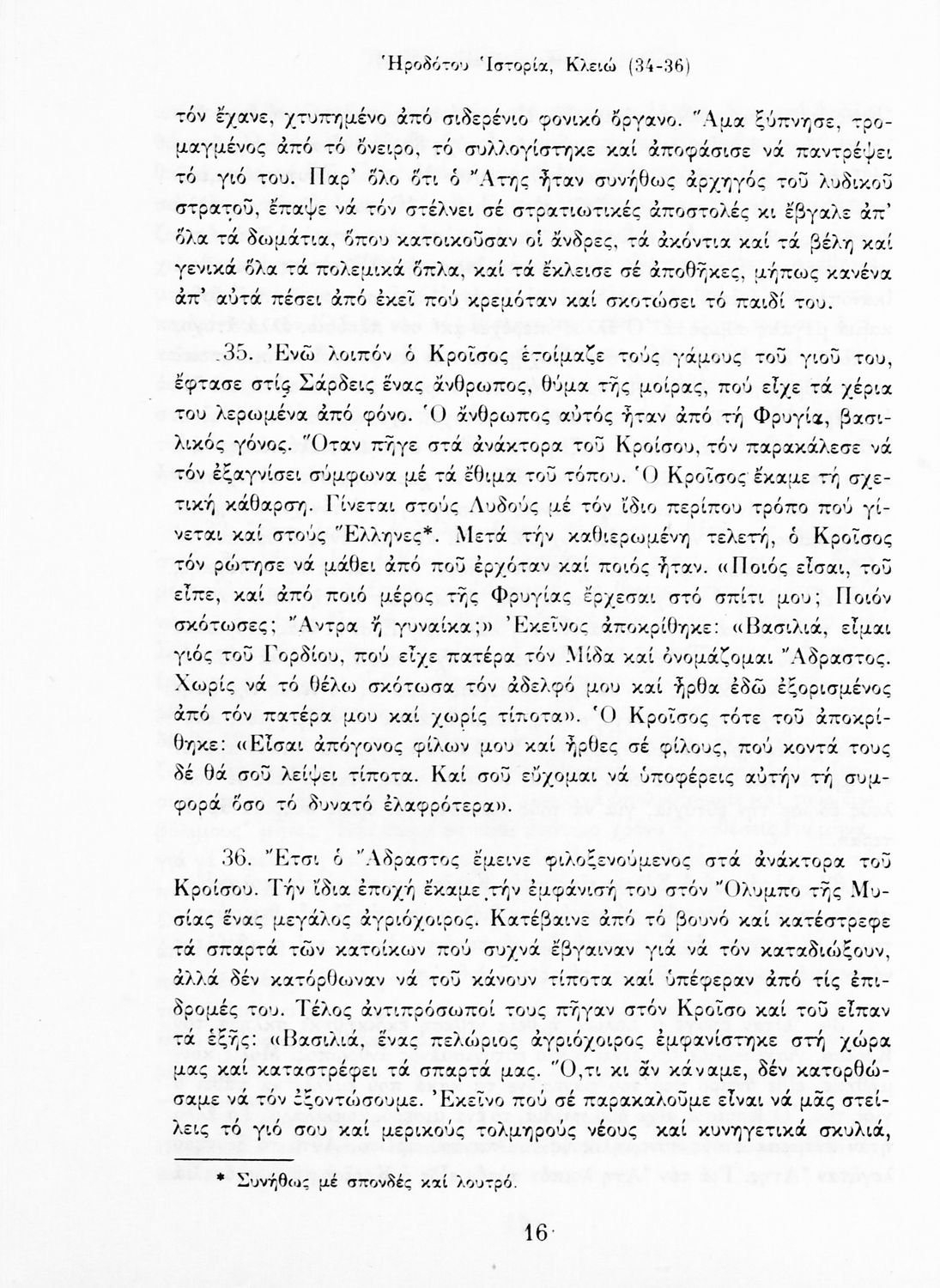 Σχολικό εγχειρίδιο Αρχαίων Ελληνικών Α΄ Γυμνασίου που περιλαμβάνει αποσπάσματα από την Ιστορία του Ηρόδοτου σε μετάφραση, εισαγωγή στη ζωή, το έργο και τη διάλεκτό του και ερμηνευτικά και πραγματολογικά σχόλια.