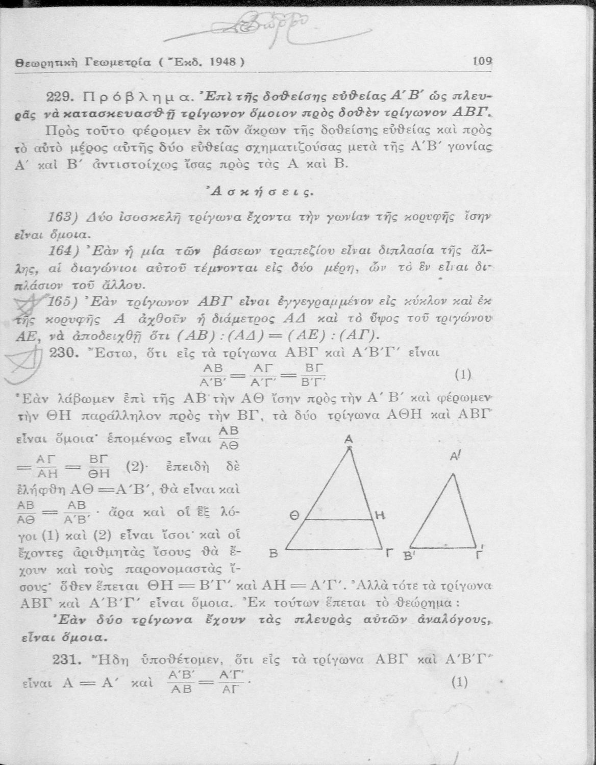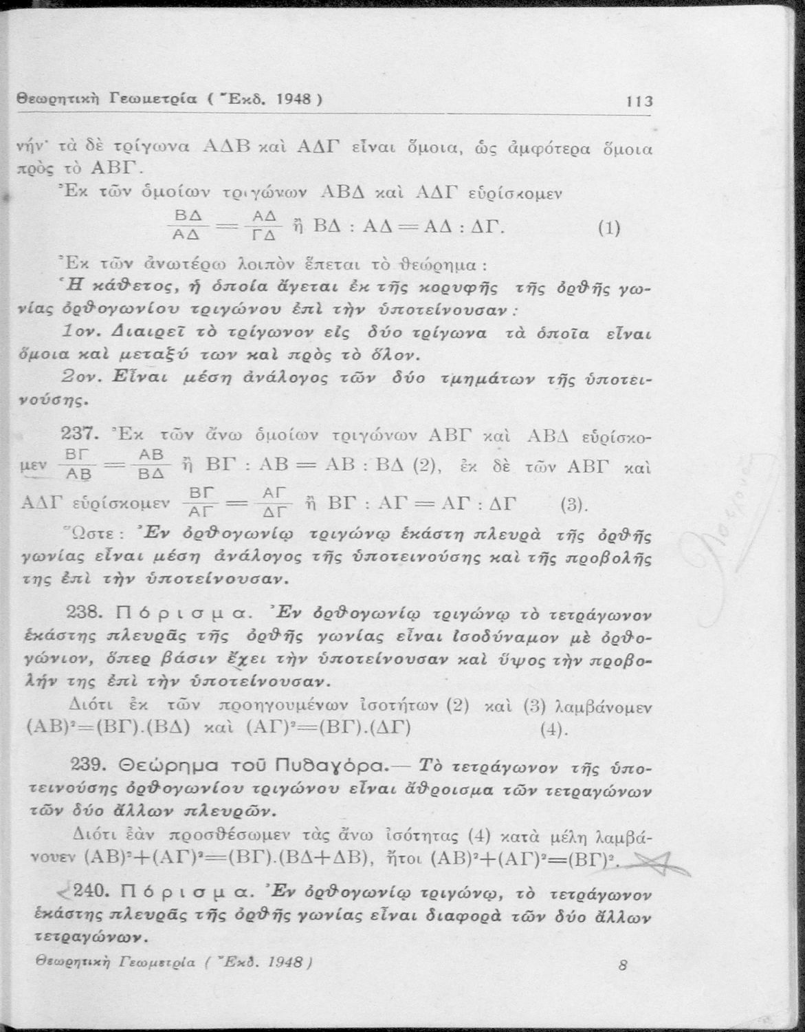 Θεωρητική γεωμετρία δια τας ανωτέρας τάξεις των Γυμνασίων νέου τύπου