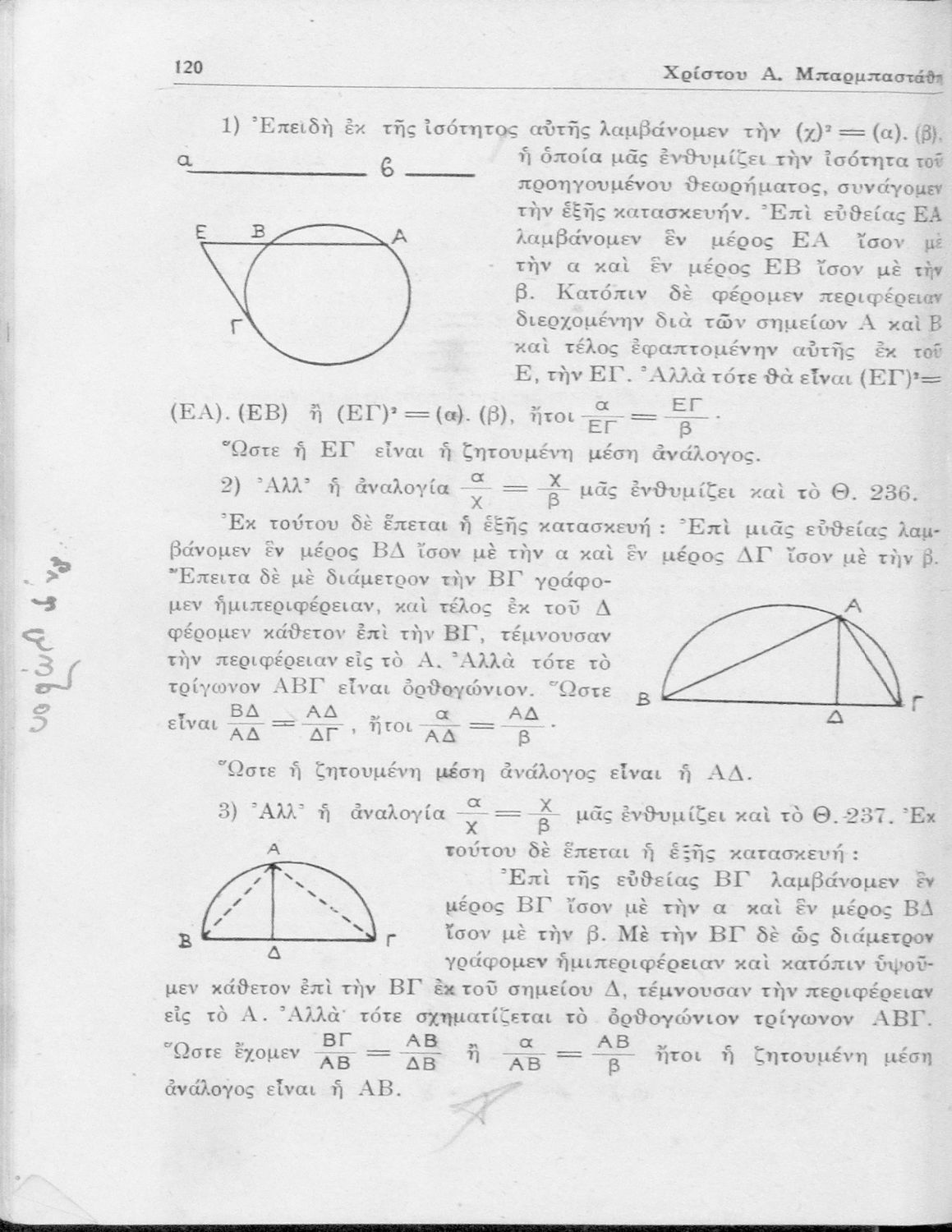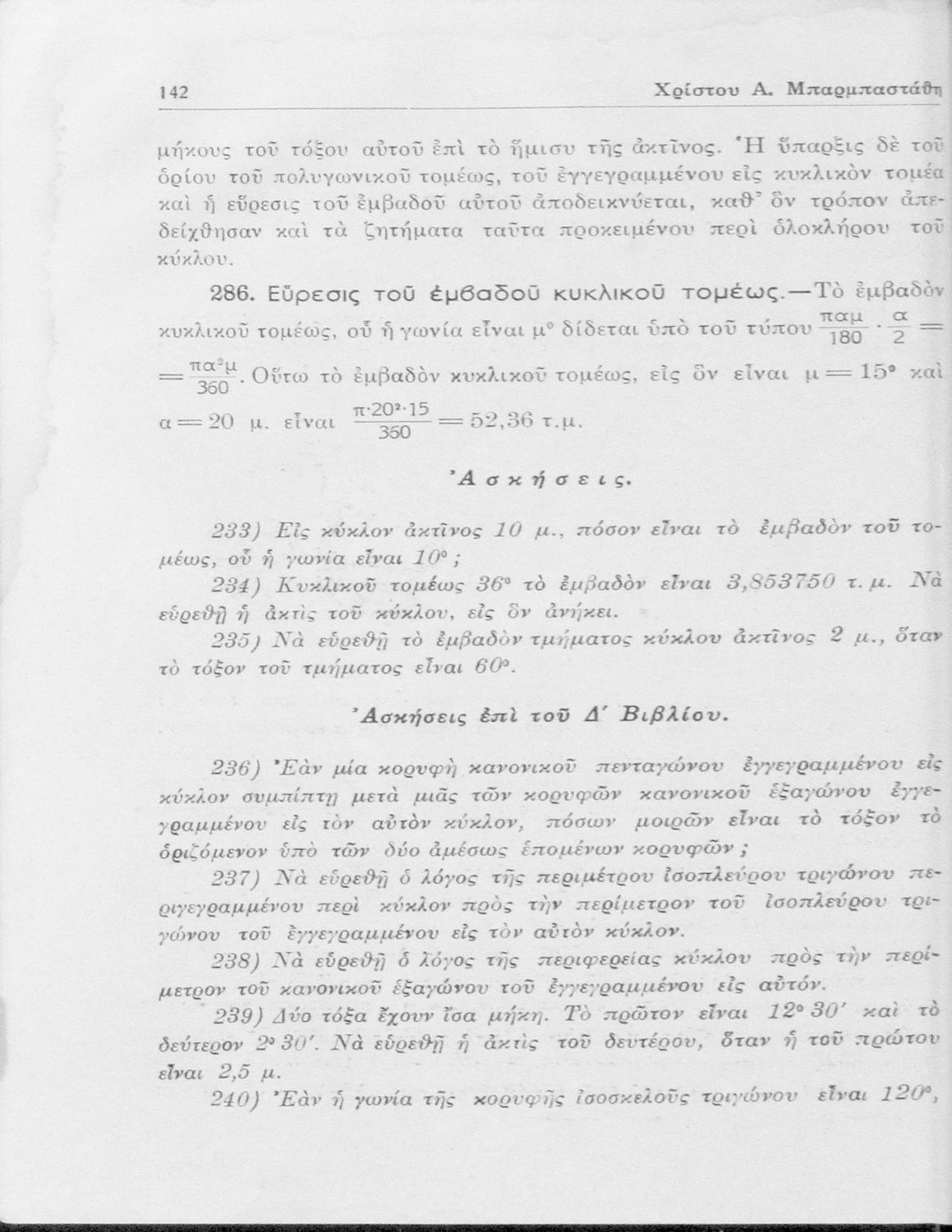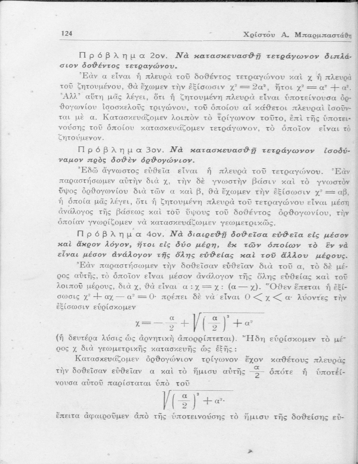 Κωδικός αναγνώρισης: 01-17451 Τίτλος: Θεωρητική γεωμετρία δια τας ανωτέρας τάξεις των Γυμνασίων νέου τύπου Συγγραφέας: Χρίστος Α. Μπαρμπαστάθης Μέγεθος και υπόστρωμα: Σχολικό εγχειρίδιο, 20εκ., μαλακό εξώφυλλο, 219 σελίδες. Σκίτσα (ασπρόμαυρα). |