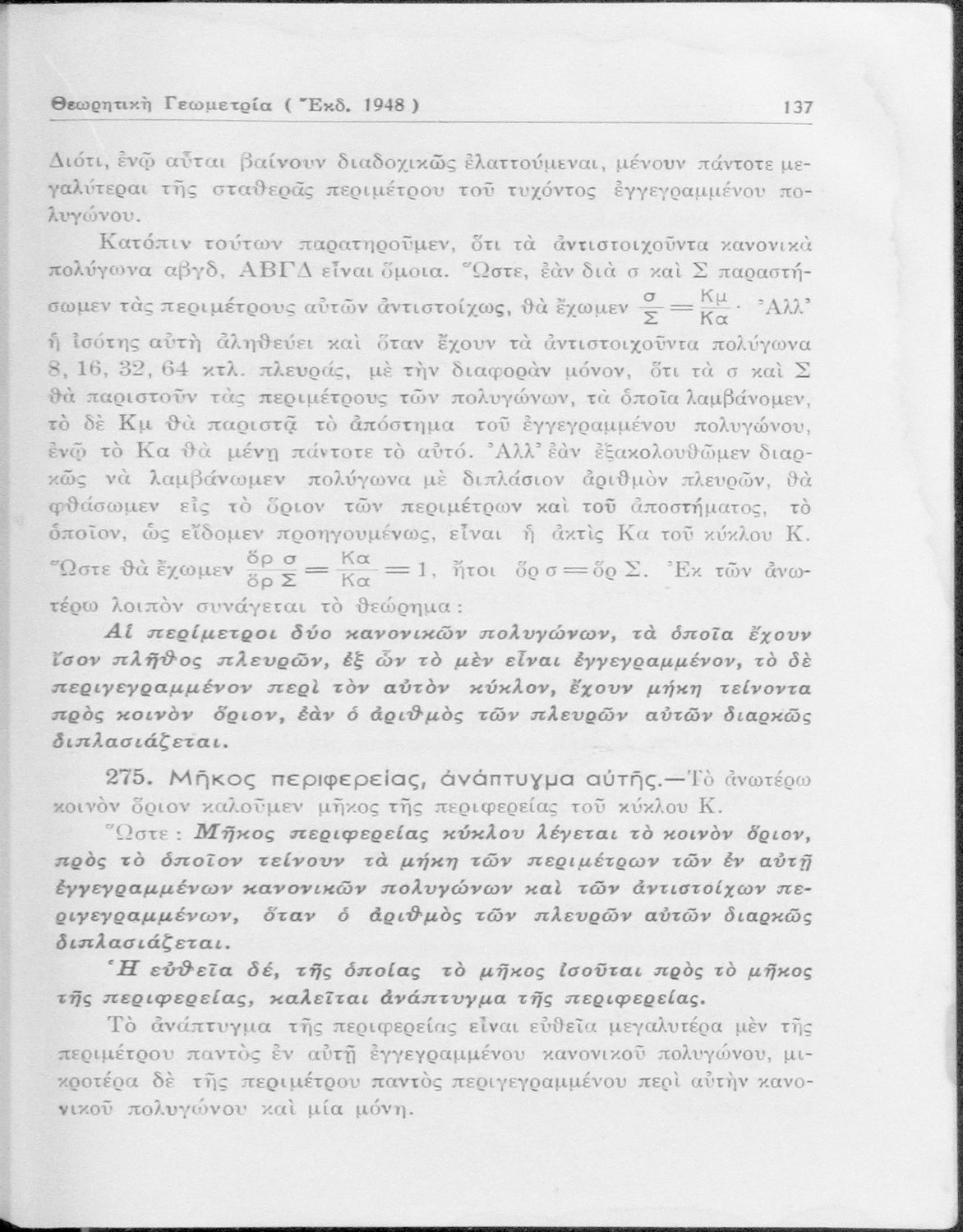 LDR 01115 2200193 4500 035 ## _a01-17451 040 ## _aΙνστιτούτο Εκπαιδευτικής Πολιτικής 041 ## _ael 100 ## _aΧρίστος Α. Μπαρμπαστάθης 110 ## _a17451 245 0# _aΘεωρητική γεωμετρία δια τας ανωτέρας τάξεις των Γυμνασίων νέου τύπου 260 ## _aΑθήνα _bΟργανισμός Εκδόσεως Σχολικών Βιβλίων _c1948 300 ## _a219 _bΣκίτσα (ασπρόμαυρα) _c20 520 ## _aΣχολικό εγχειρίδιο Γεωμετρίας για τα Γυμνάσια νέου τύπου που είναι χωρισμένο σε Επιπεδομετρία και Στερεομετρία και περιλαμβάνει θεωρία και ασκήσεις. 521 ## _aΓυμνάσιο 522 ## _aΕλλάδα 546 ## _aΑπλή καθαρεύουσα 563 ## _aΜαλακό Εξώφυλλο 650 #4 _aΓεωμετρικά σχήματα και σώματα _aΕμβαδόν _aΕπιφάνεια _aΌγκος
