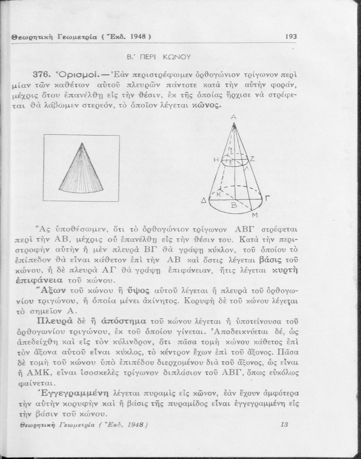 Τίτλος: Θεωρητική γεωμετρία δια τας ανωτέρας τάξεις των Γυμνασίων νέου τύπου