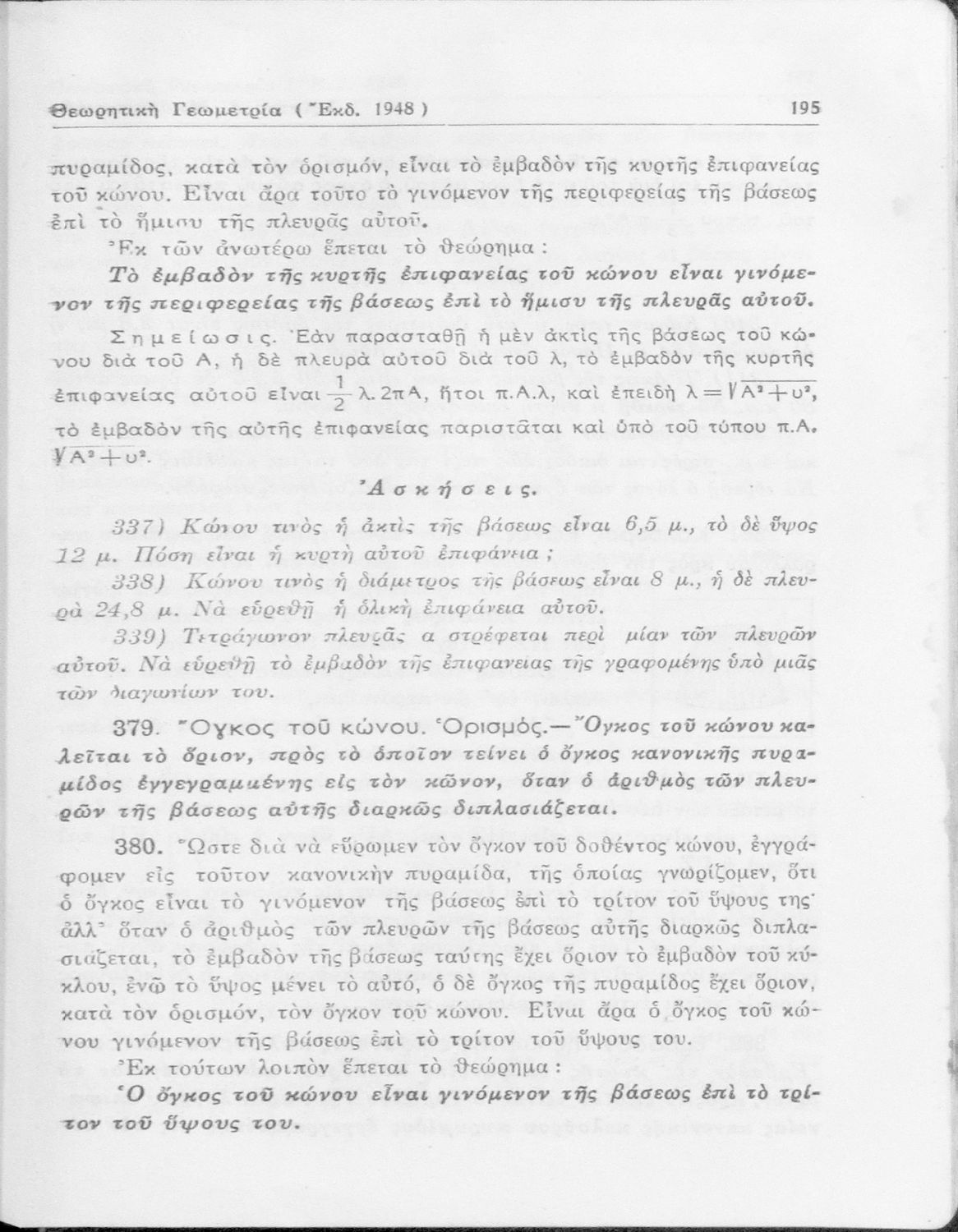 Θεωρητική γεωμετρία δια τας ανωτέρας τάξεις των Γυμνασίων νέου τύπου