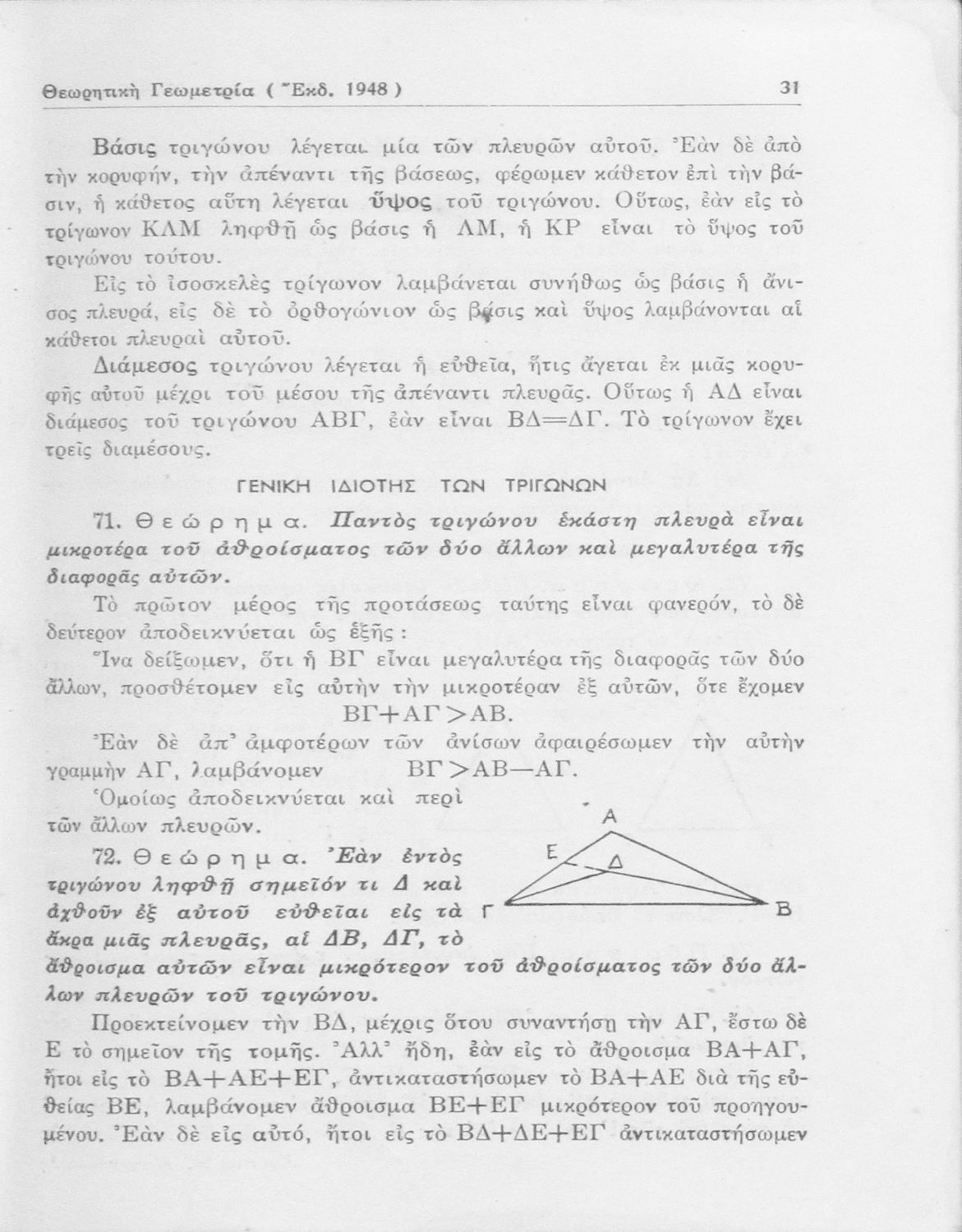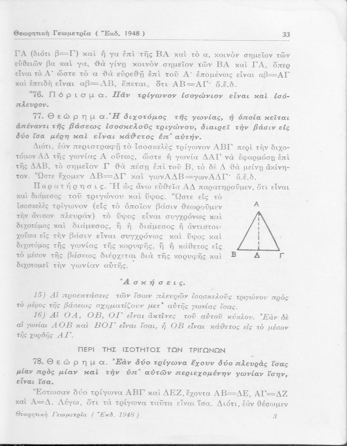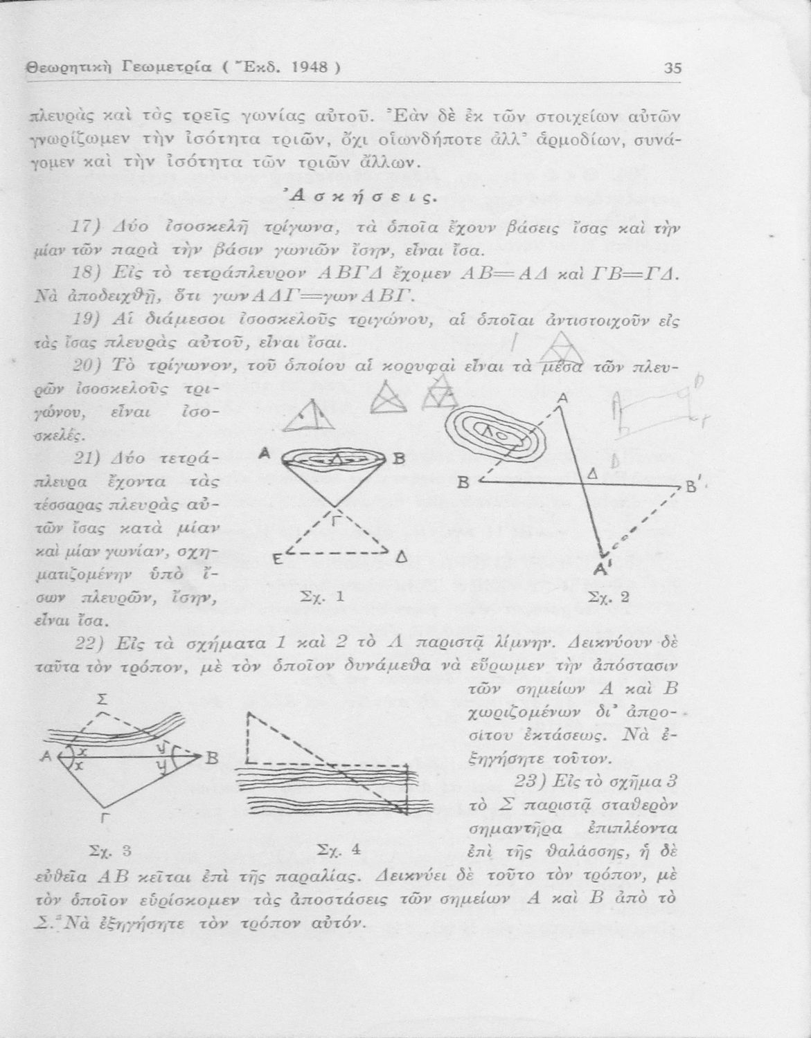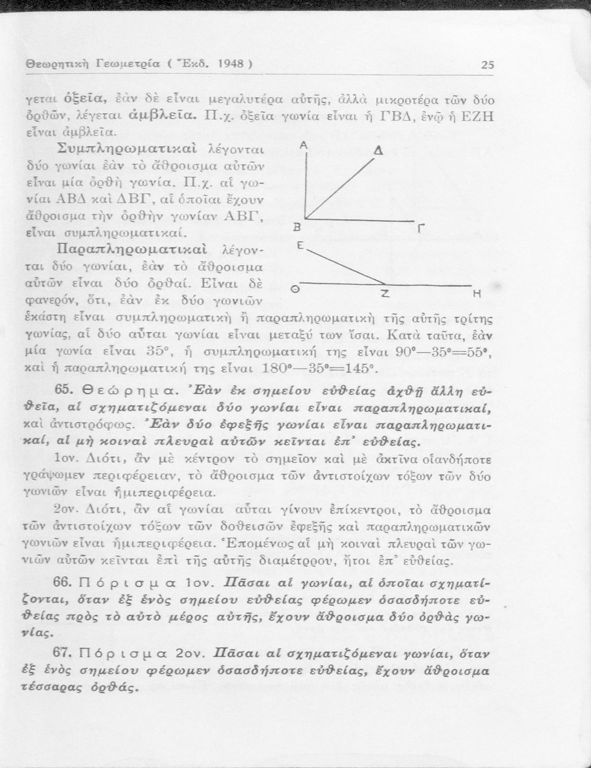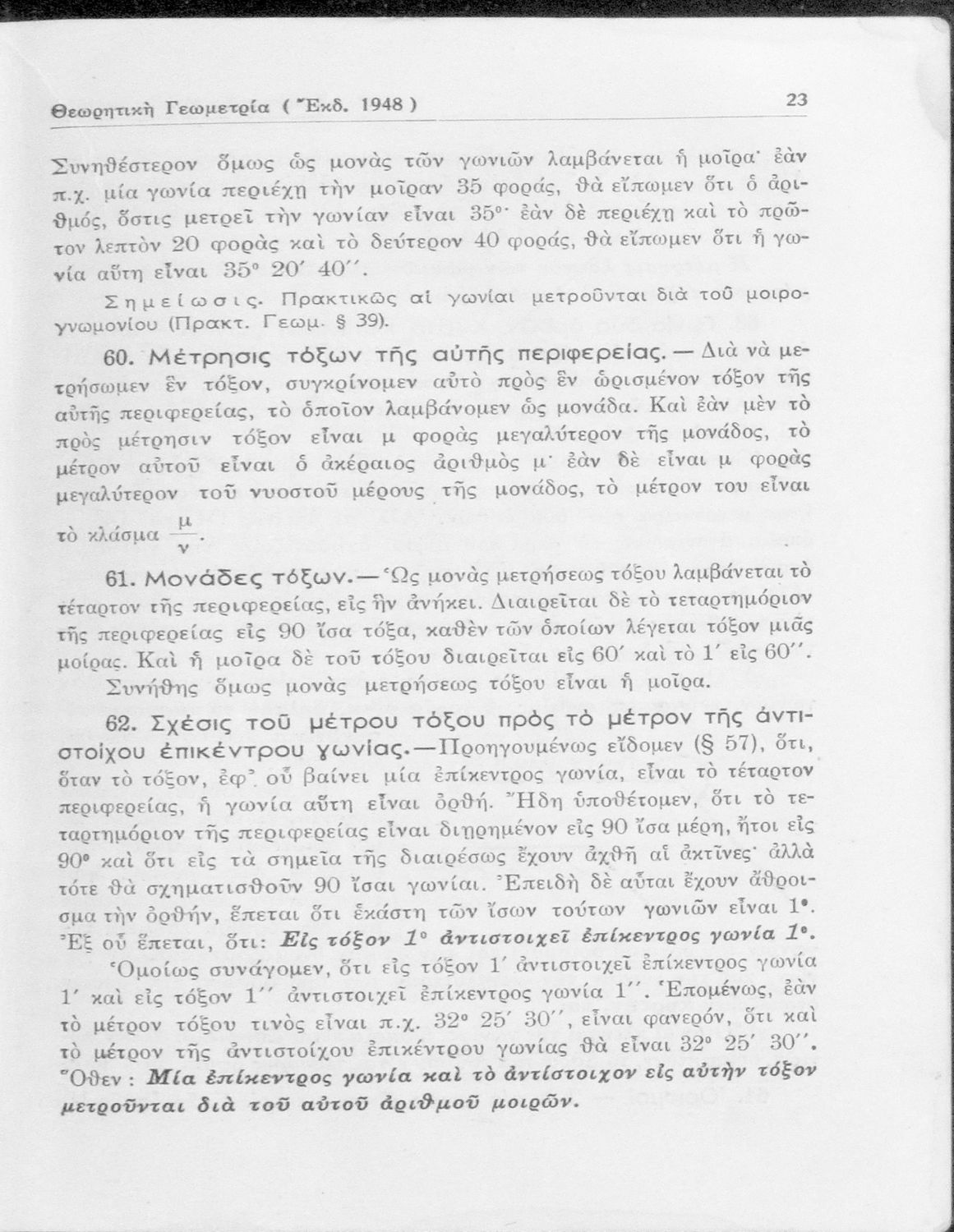 Βαθμίδα εκπαίδευσης: Δευτεροβάθμια Τάξη: Γυμνάσιο Μάθημα: Μαθηματικά Γλώσσα: Απλή καθαρεύουσα Παρουσίαση περιεχομένου: Σχολικό εγχειρίδιο Γεωμετρίας για τα Γυμνάσια νέου τύπου που είναι χωρισμένο σε Επιπεδομετρία και Στερεομετρία και περιλαμβάνει θεωρία και ασκήσεις. |