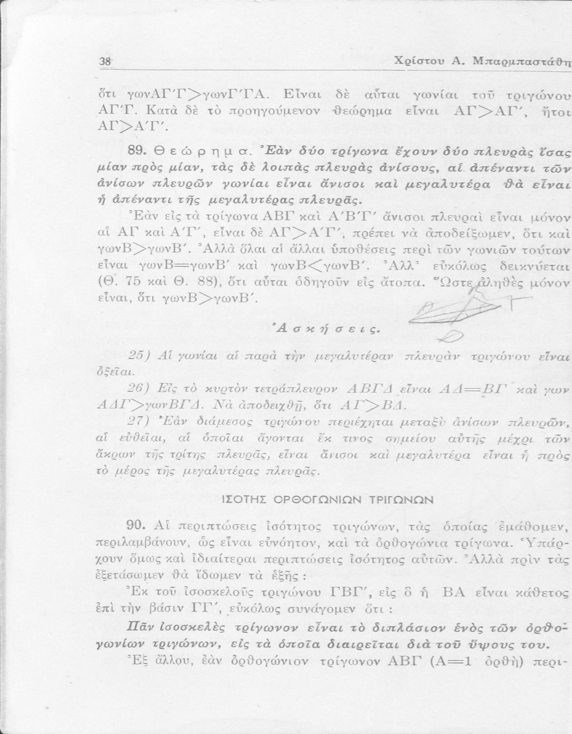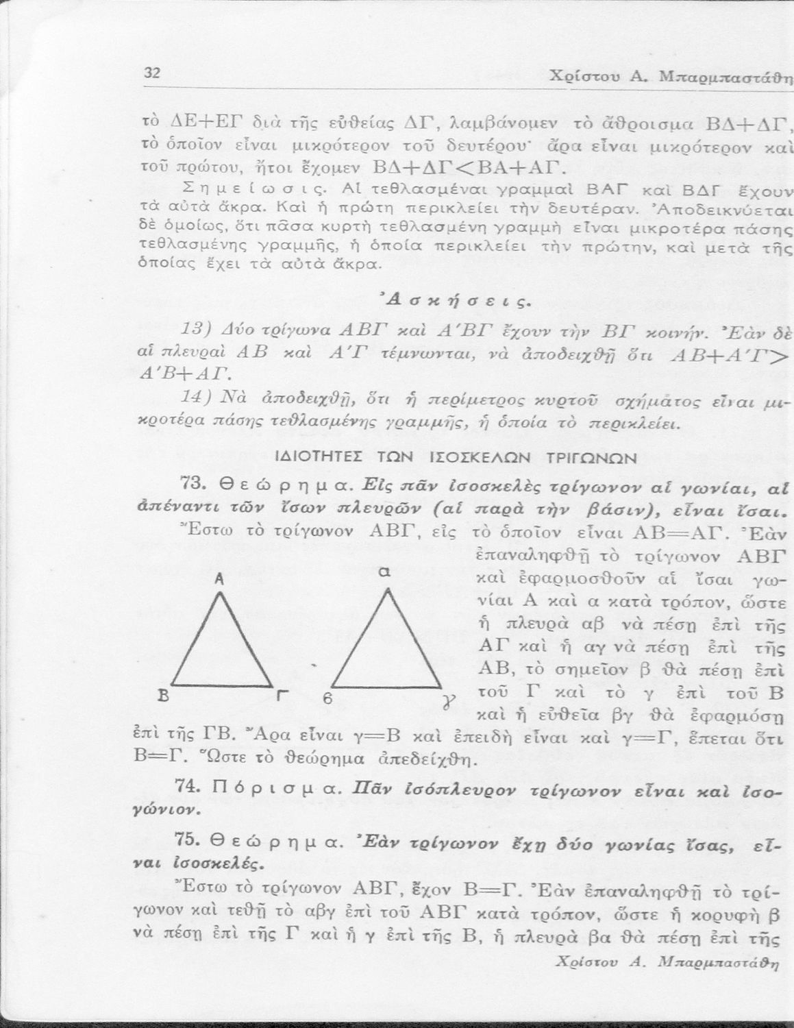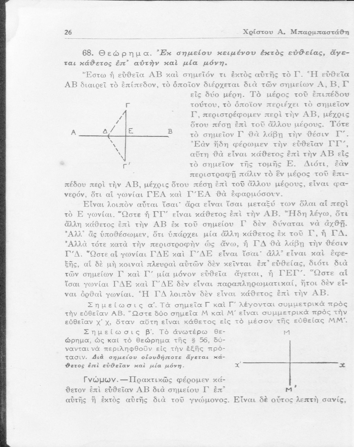 Κωδικός αναγνώρισης: 01-17451 Τίτλος: Θεωρητική γεωμετρία δια τας ανωτέρας τάξεις των Γυμνασίων νέου τύπου Συγγραφέας: Χρίστος Α. Μπαρμπαστάθης Μέγεθος και υπόστρωμα: Σχολικό εγχειρίδιο, 20εκ., μαλακό εξώφυλλο, 219 σελίδες. Σκίτσα (ασπρόμαυρα). |