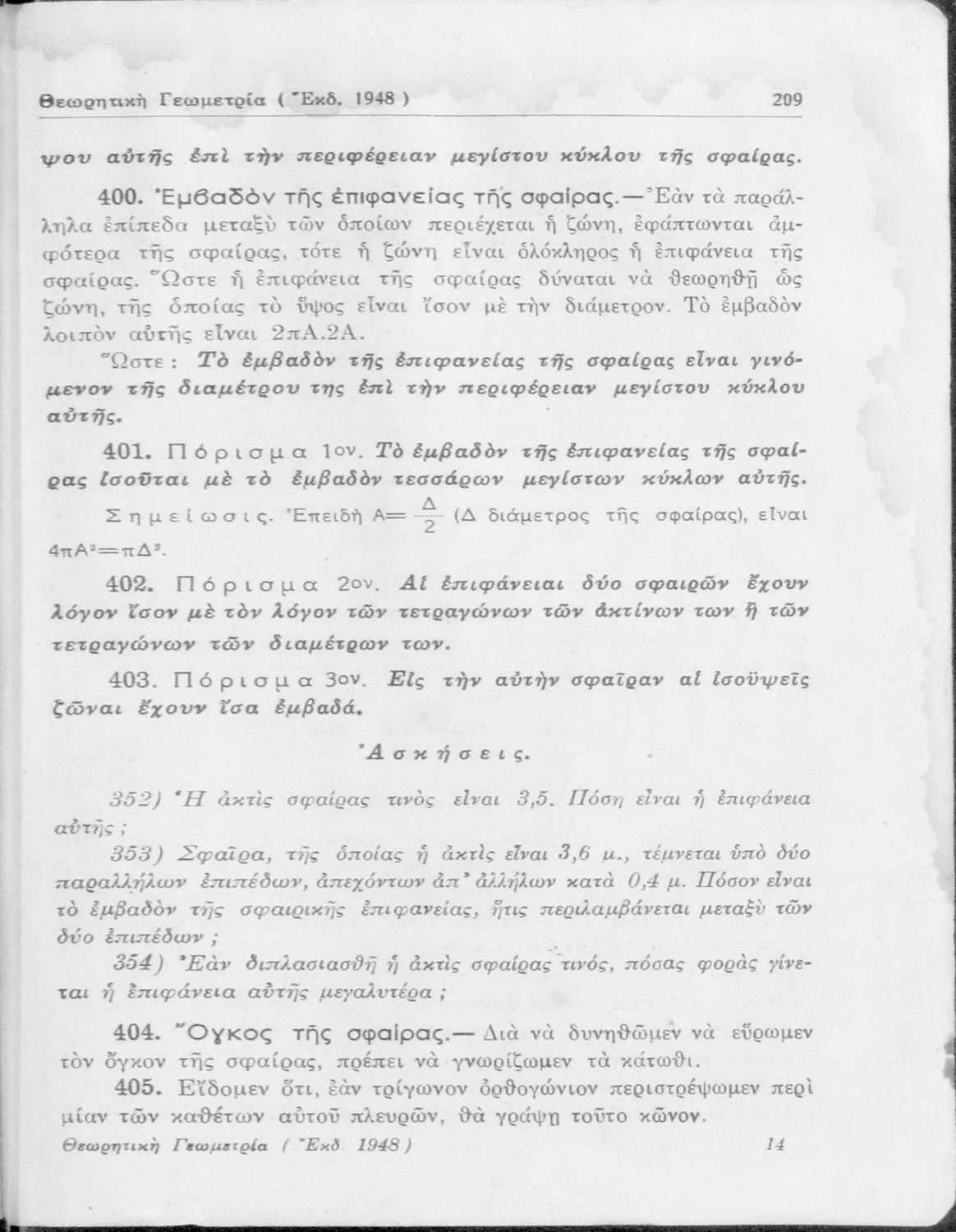 Θεωρητική γεωμετρία δια τας ανωτέρας τάξεις των Γυμνασίων νέου τύπου