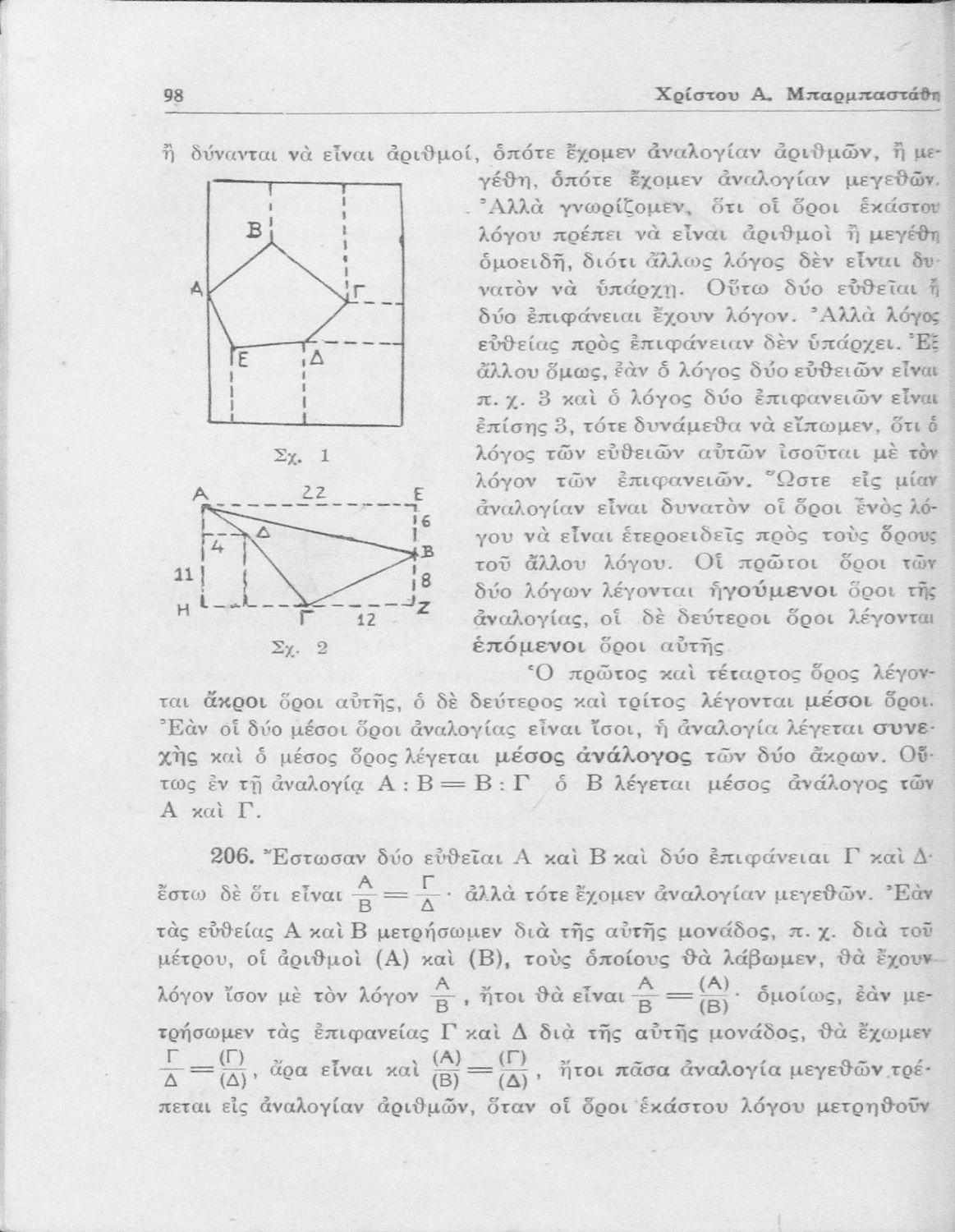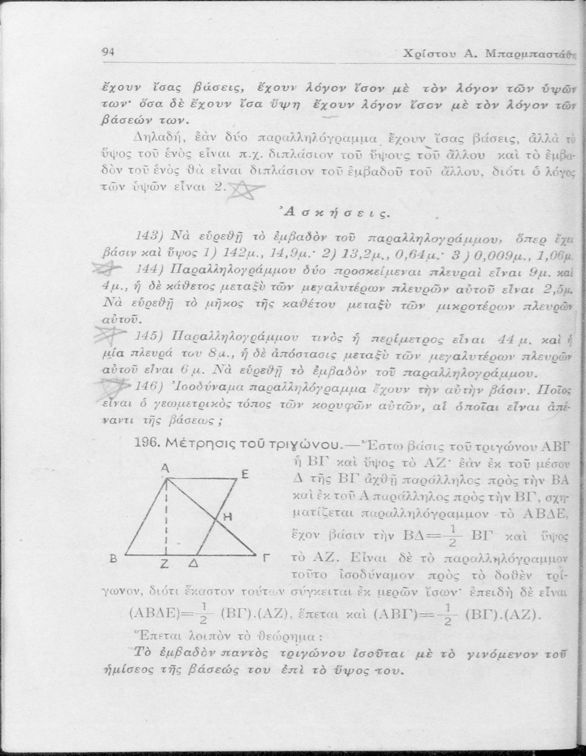 Σχολικό εγχειρίδιο Γεωμετρίας για τις Α΄, Β΄, Γ΄ Γυμνασίου που είναι χωρισμένο σε Επιπεδομετρία και Στερεομετρία και περιλαμβάνει θεωρία και ασκήσεις.