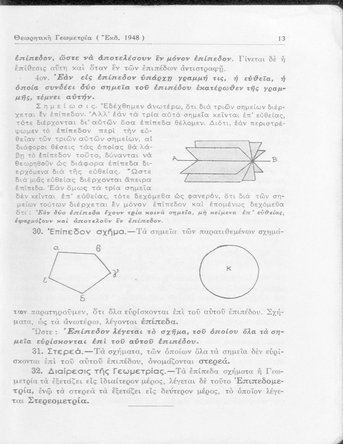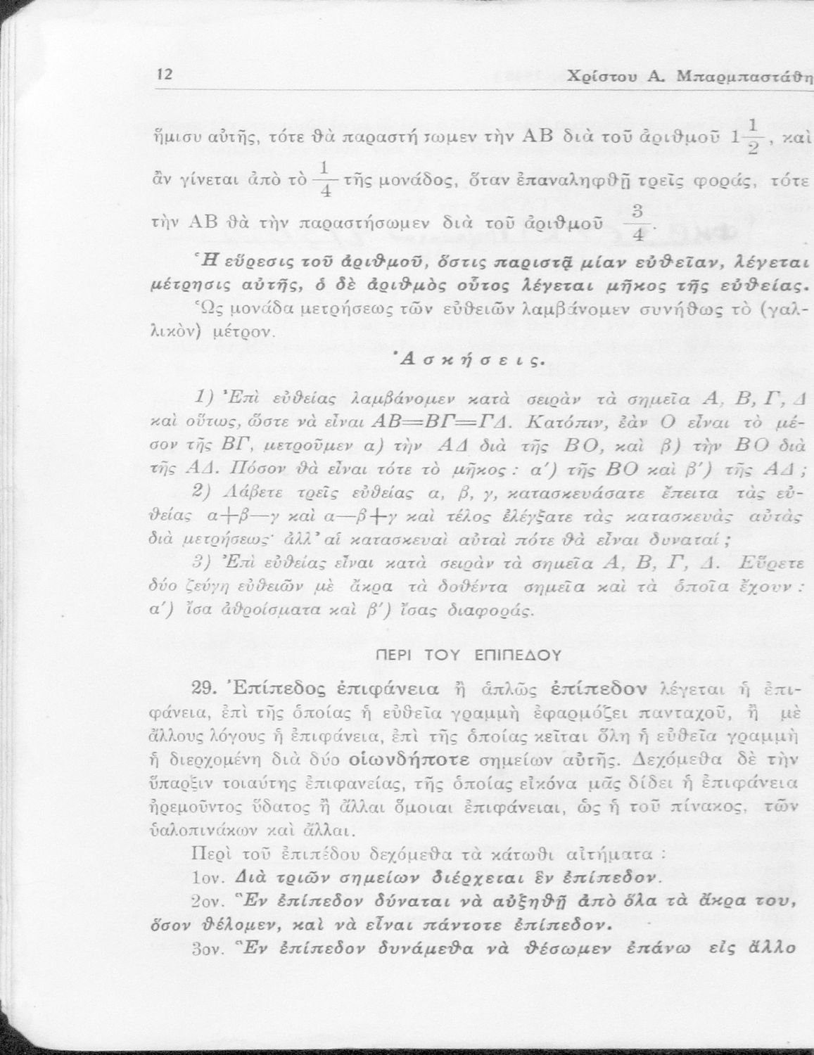 Θεωρητική γεωμετρία δια τας ανωτέρας τάξεις των Γυμνασίων νέου τύπου