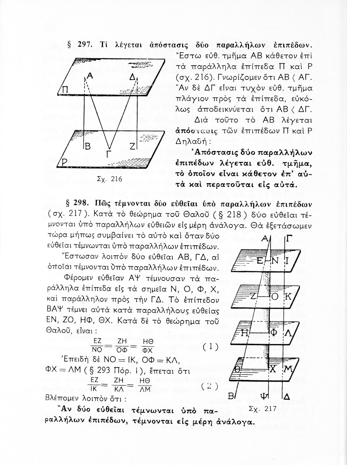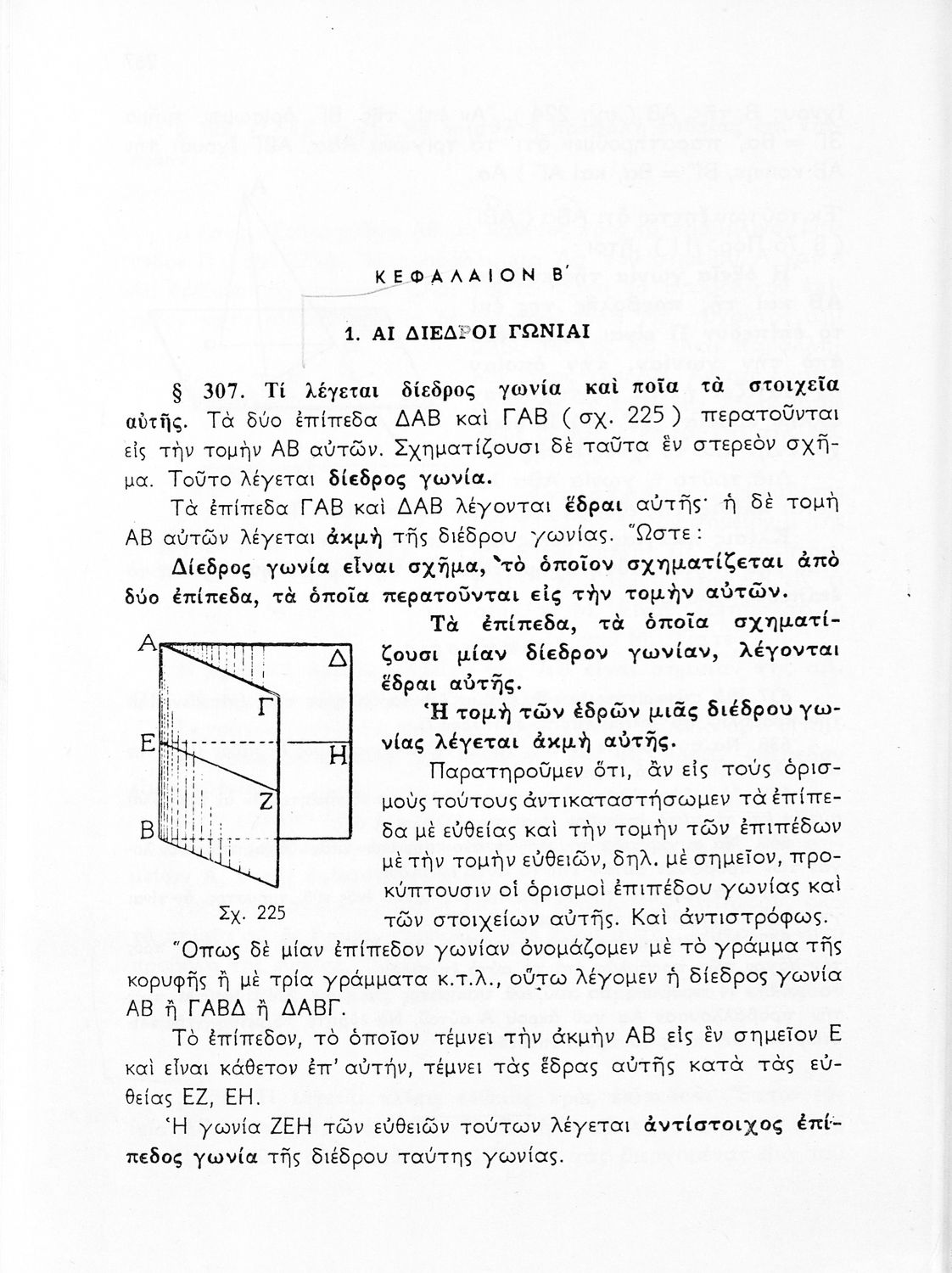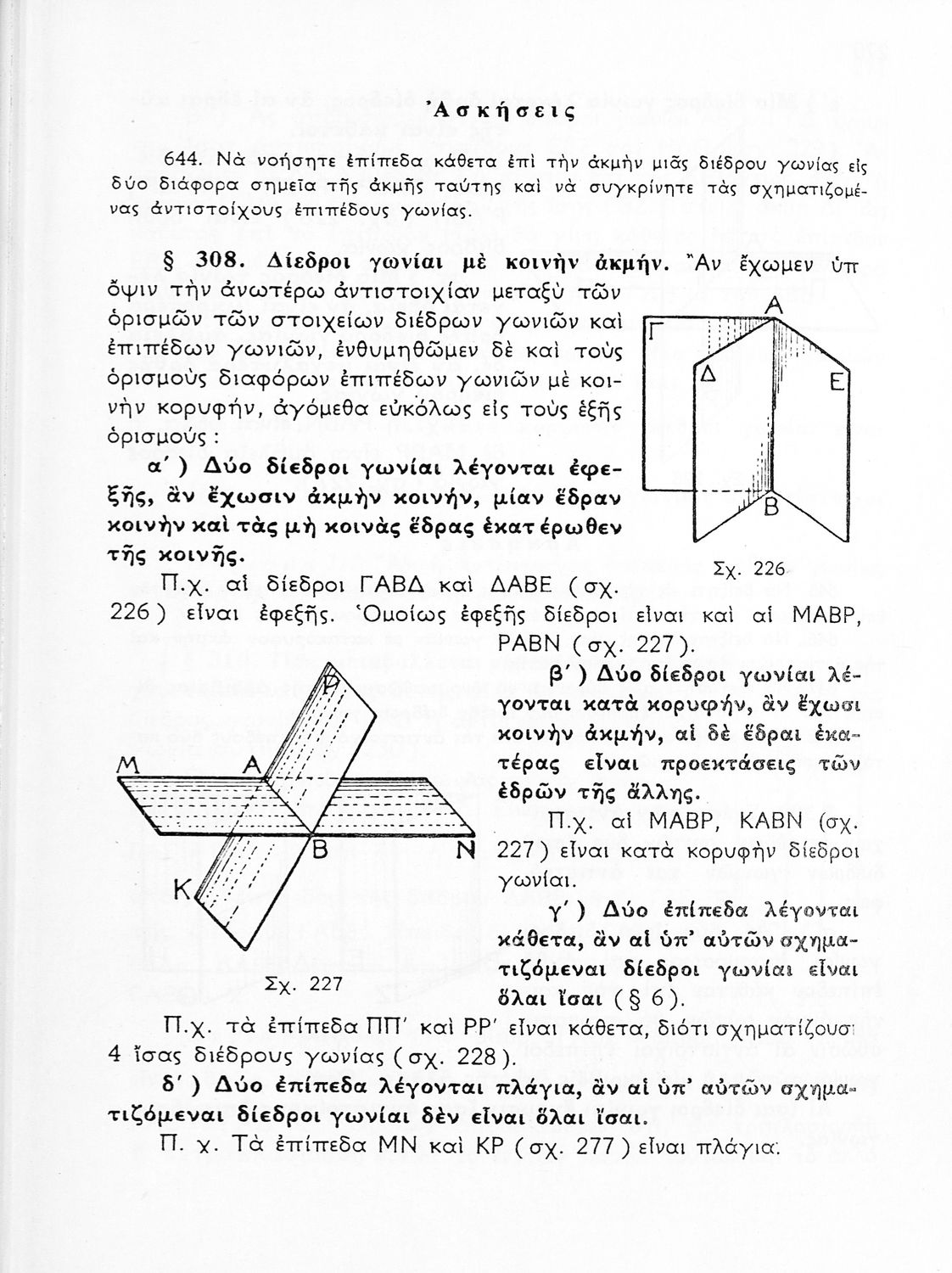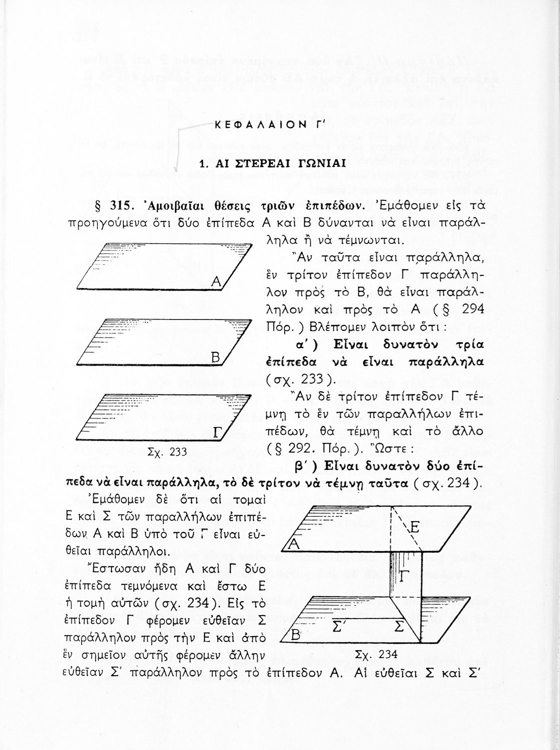 Σχολικό εγχειρίδιο Γεωμετρίας για τις Δ΄, Ε΄ και ΣΤ΄ Γυμνασίου που περιλαμβάνει αξιώματα, θεωρήματα και κατασκευές και είναι χωρισμένο σε γεωμετρία επιπέδου και γεωμετρία χώρου.