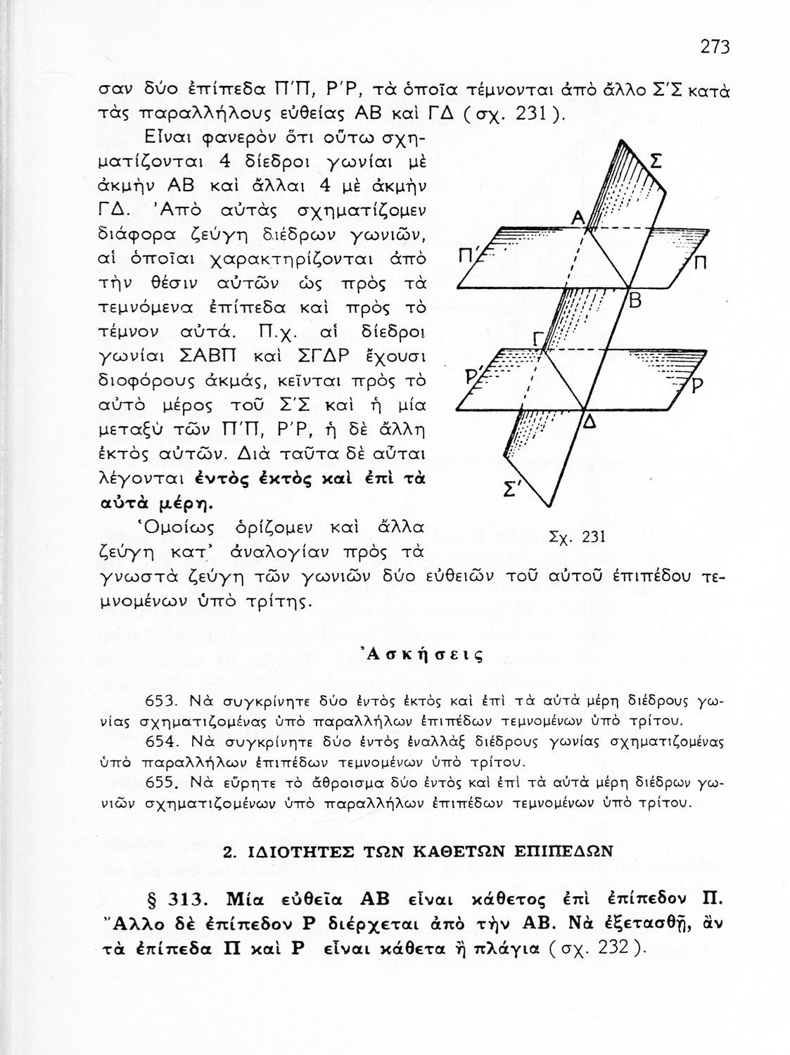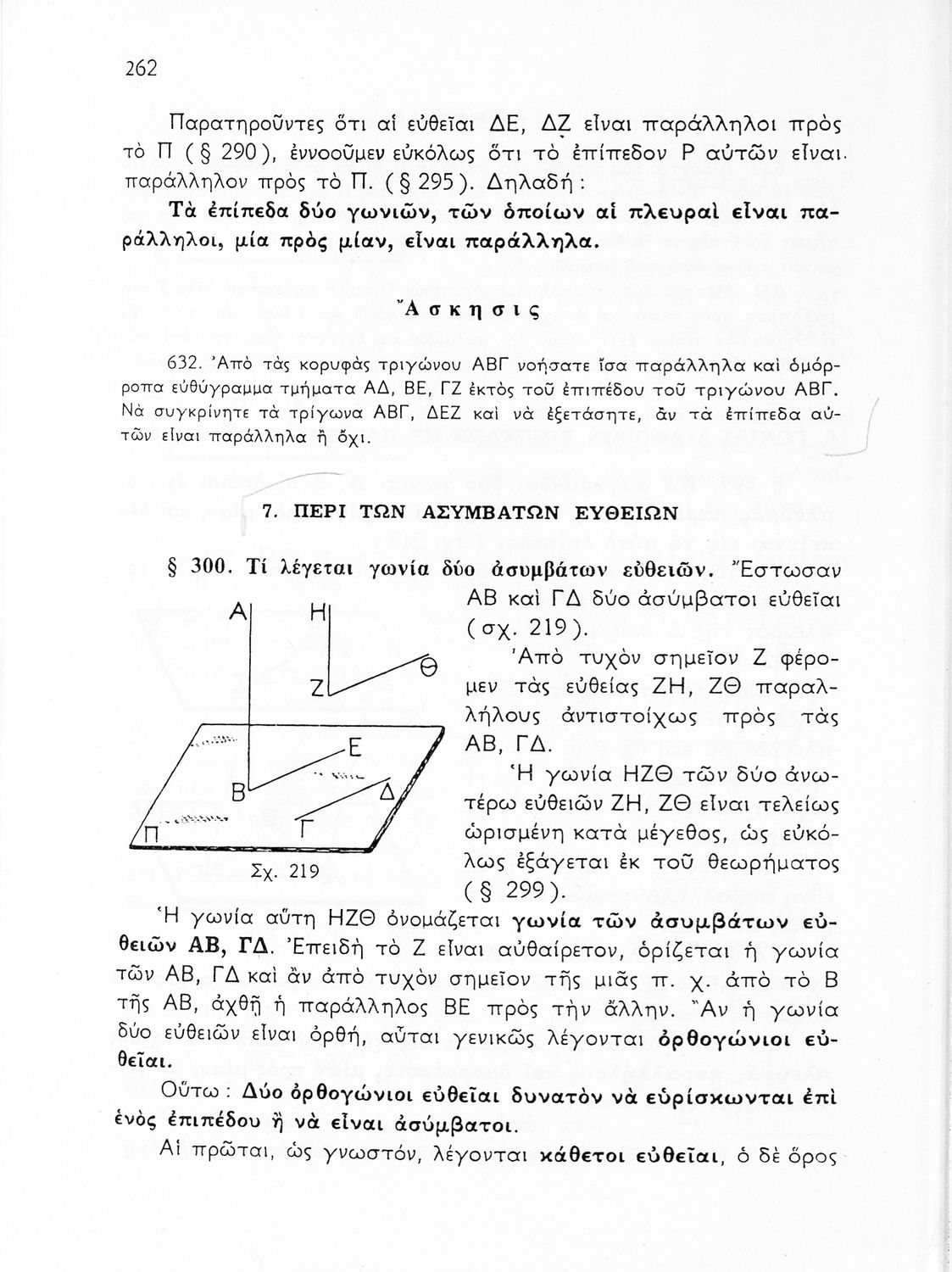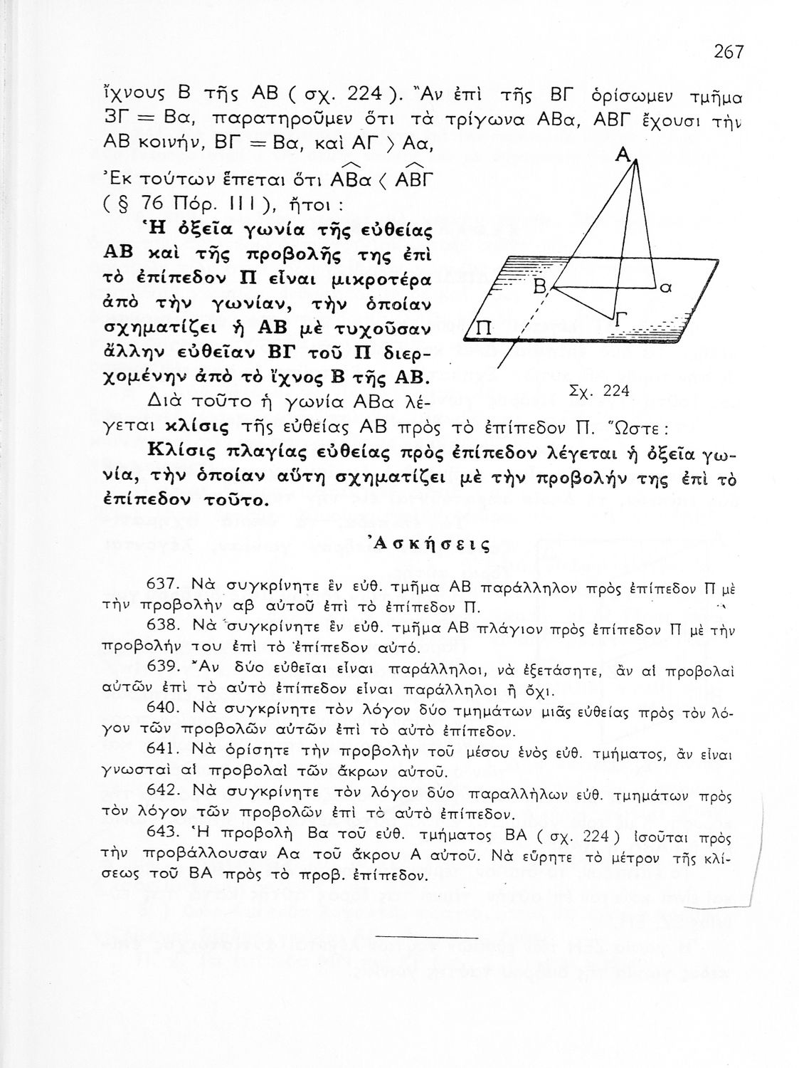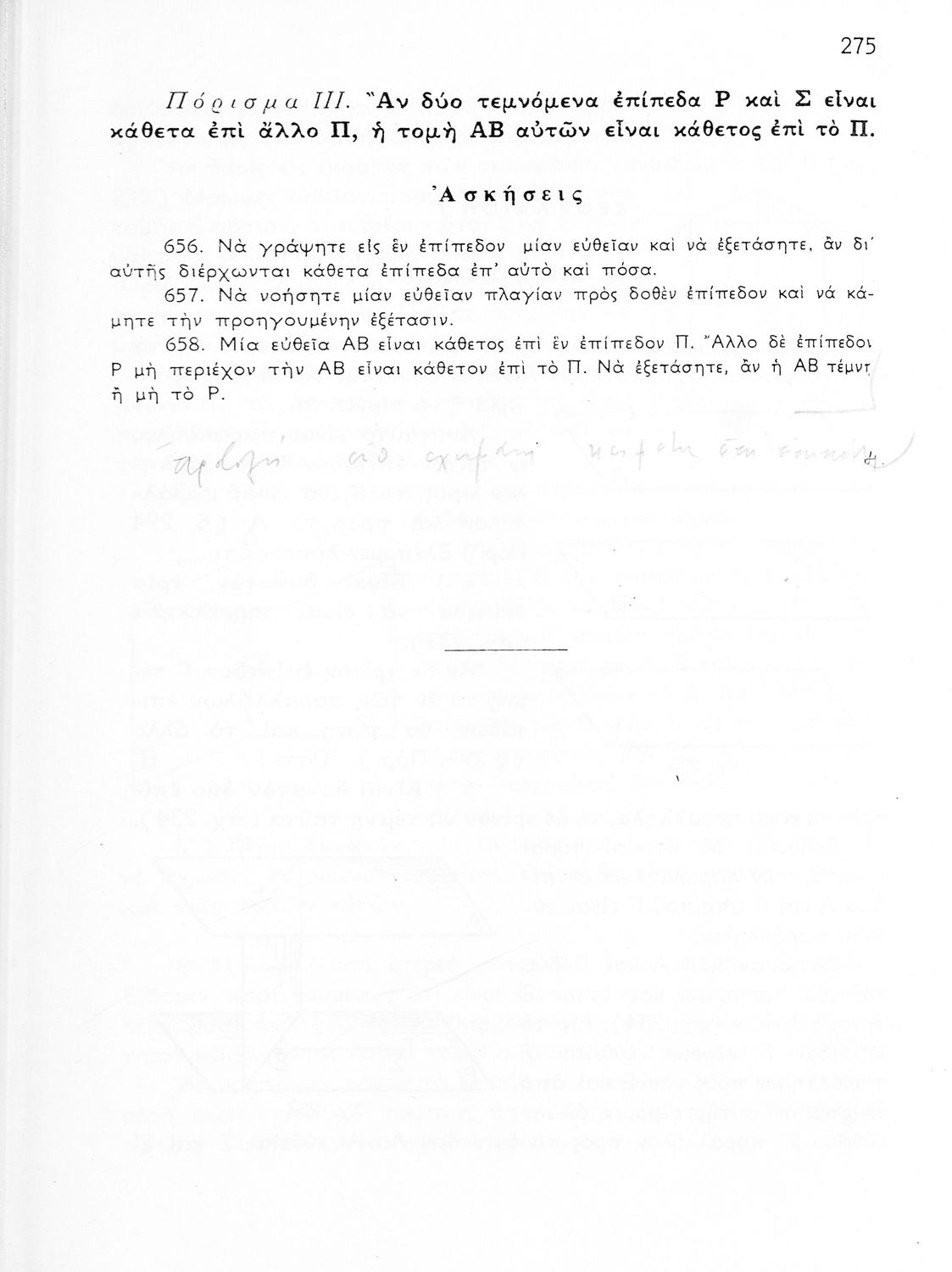 Σχολικό εγχειρίδιο Γεωμετρίας για τις Δ΄, Ε΄ και ΣΤ΄ Γυμνασίου που περιλαμβάνει αξιώματα, θεωρήματα και κατασκευές και είναι χωρισμένο σε γεωμετρία επιπέδου και γεωμετρία χώρου.