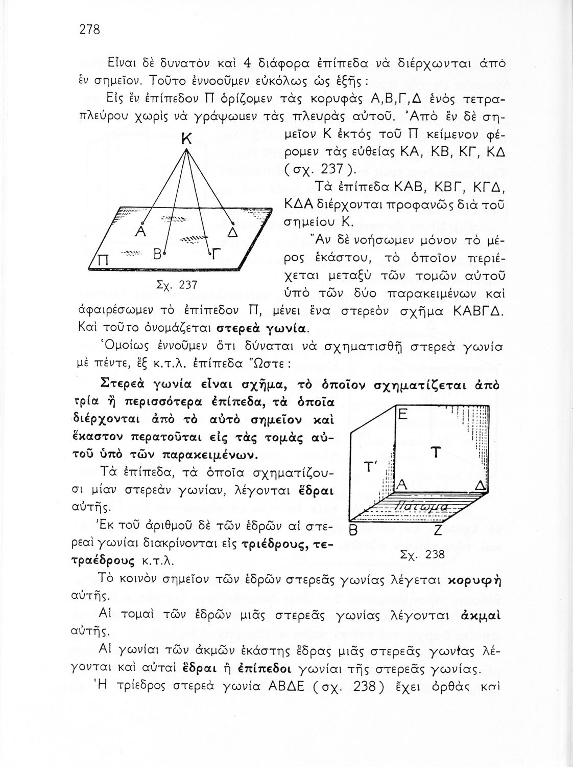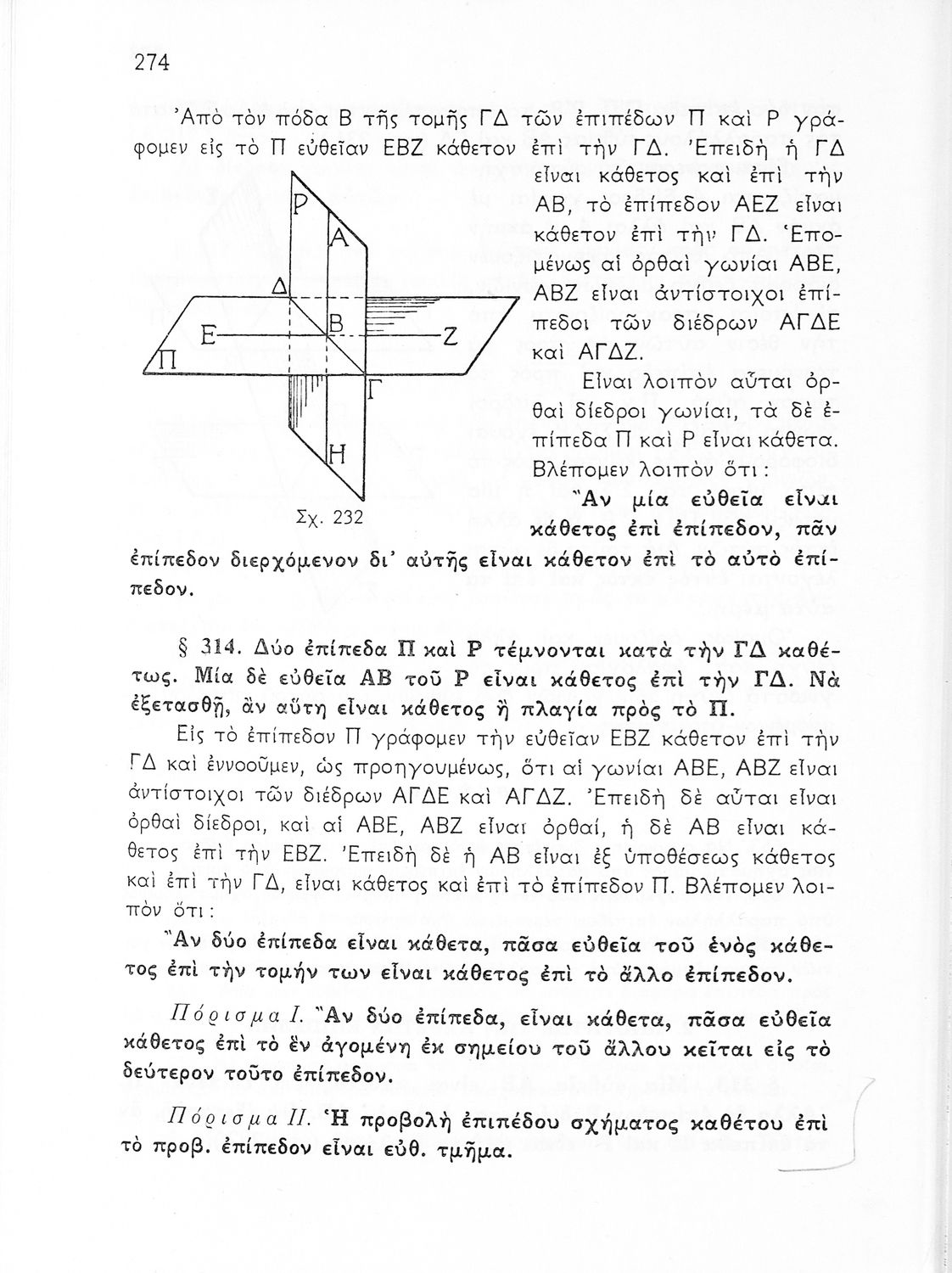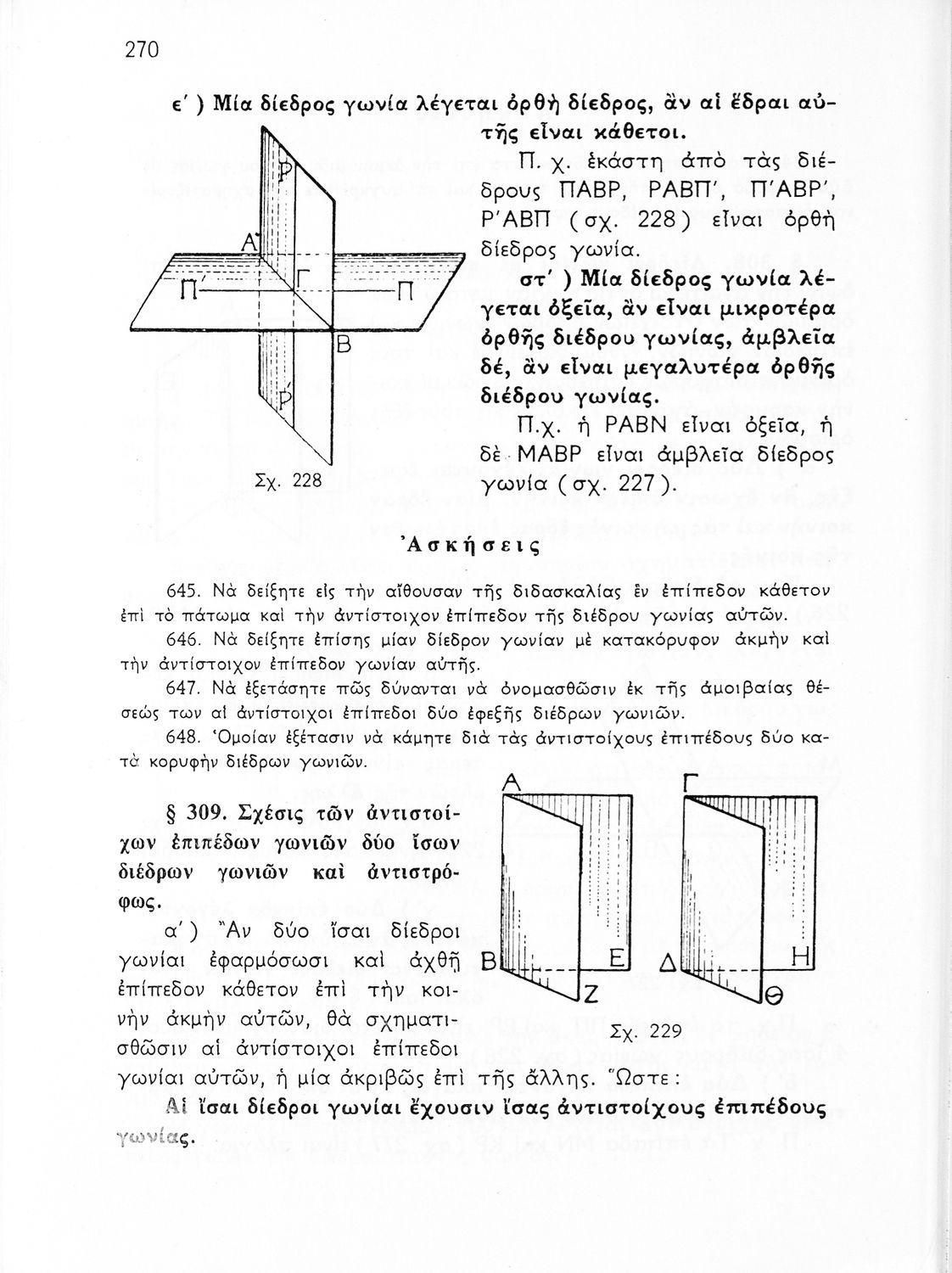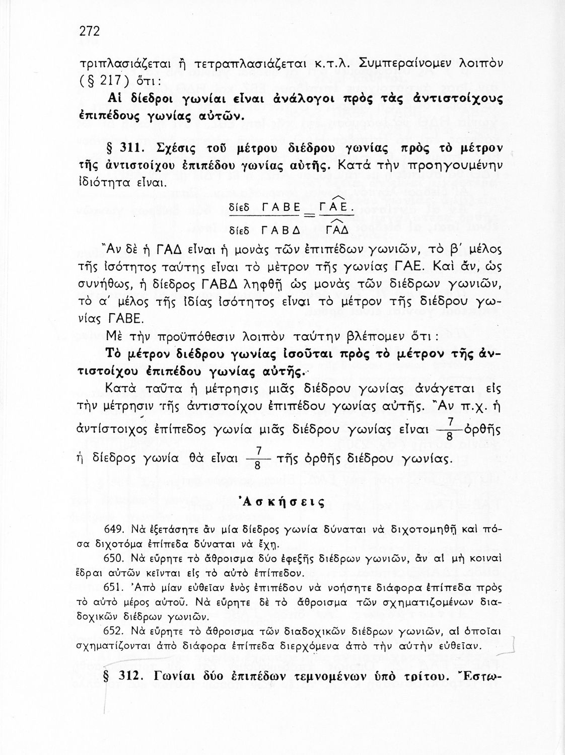 Σχολικό εγχειρίδιο Γεωμετρίας για τις Δ΄, Ε΄ και ΣΤ΄ Γυμνασίου που περιλαμβάνει αξιώματα, θεωρήματα και κατασκευές και είναι χωρισμένο σε γεωμετρία επιπέδου και γεωμετρία χώρου.