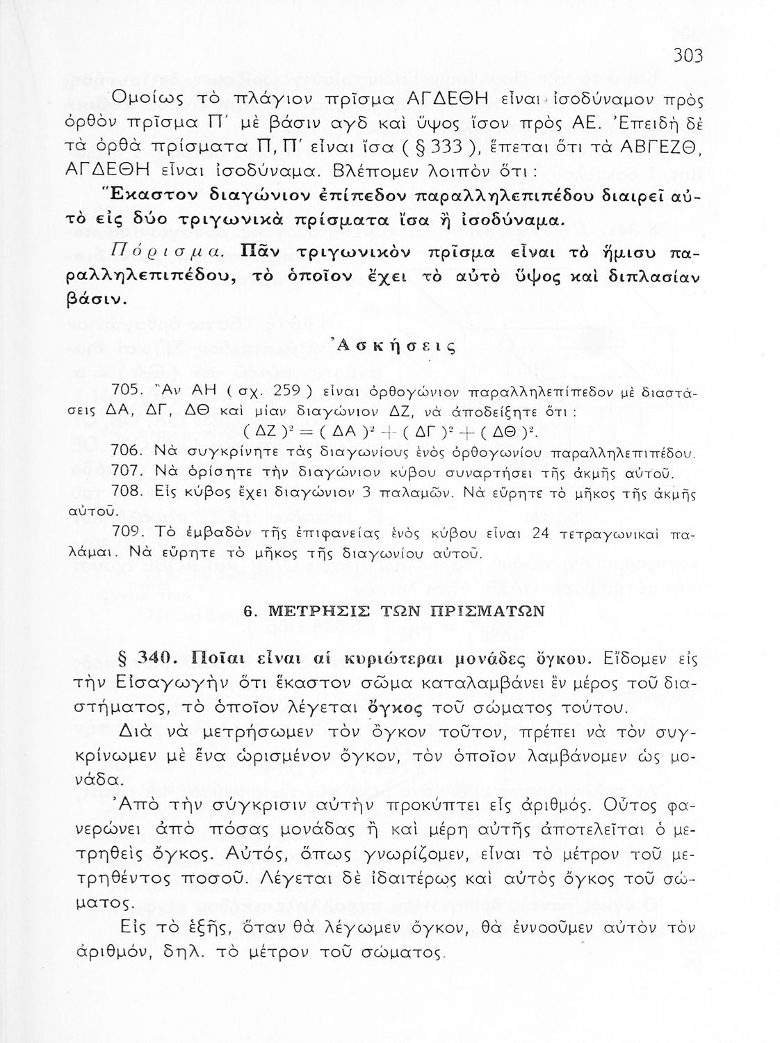 Σχολικό εγχειρίδιο Γεωμετρίας για τις Γ΄, Δ΄, Ε΄, ΣΤ΄ Γυμνασίου που περιλαμβάνει θεωρία και ασκήσεις και είναι χωρισμένο σε Επιπεδομετρία και Στερεομετρία.