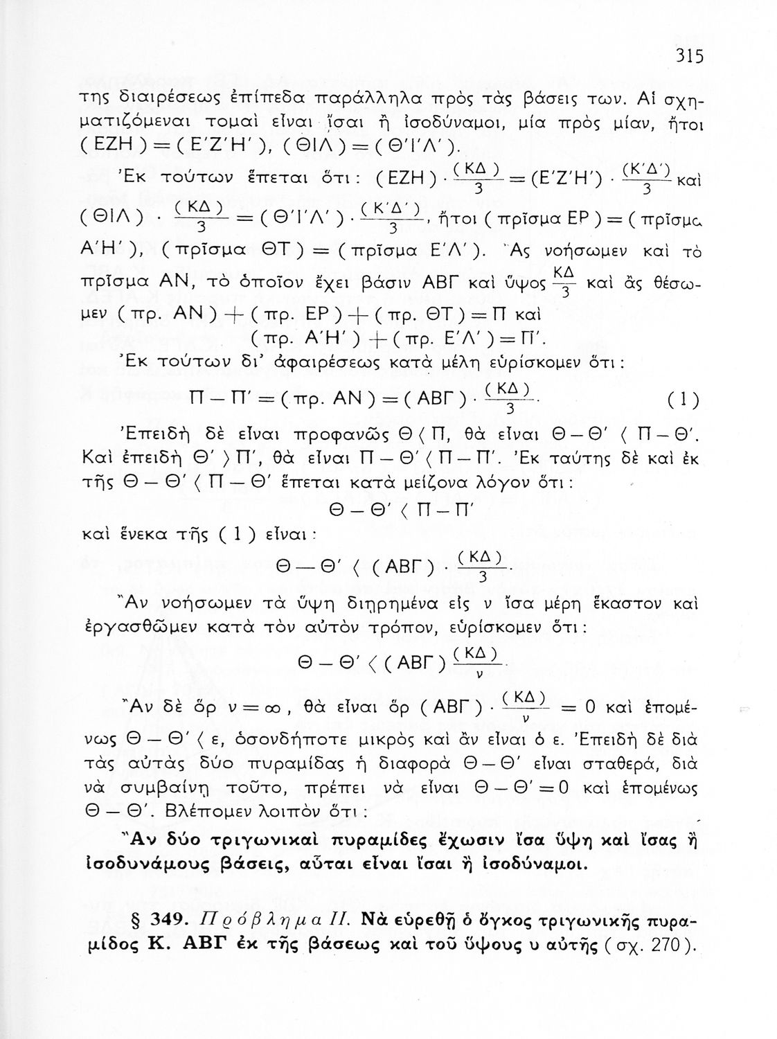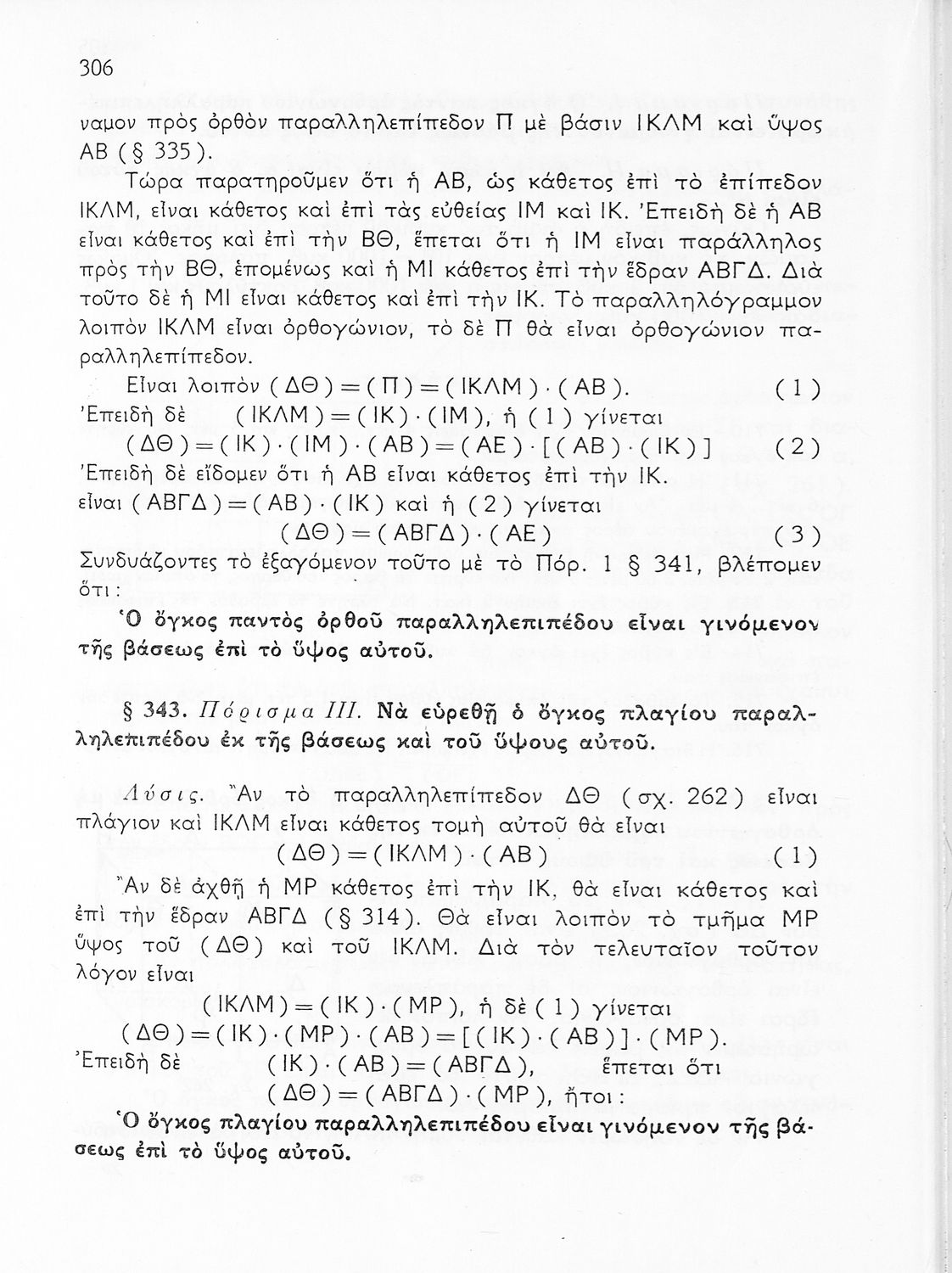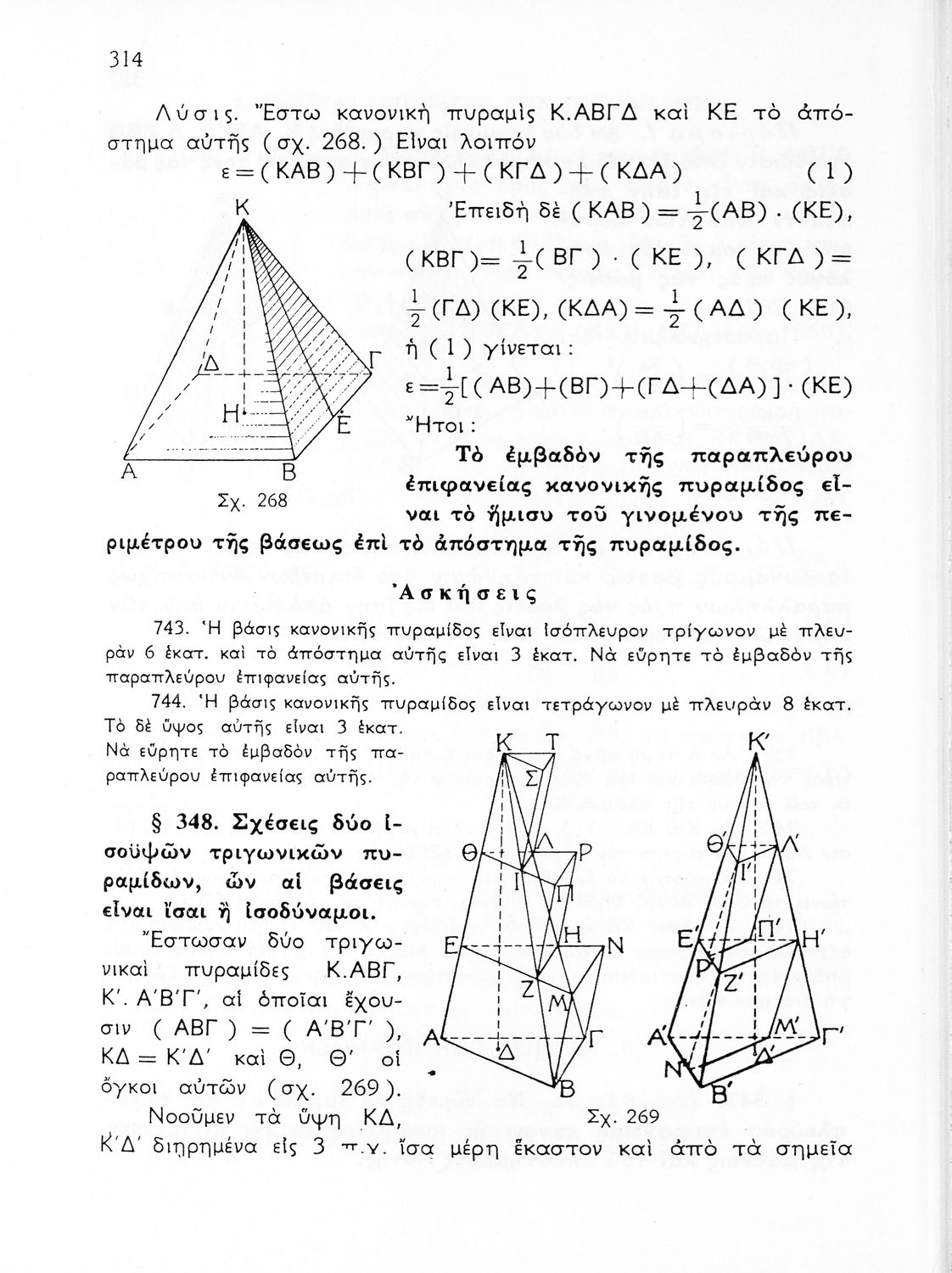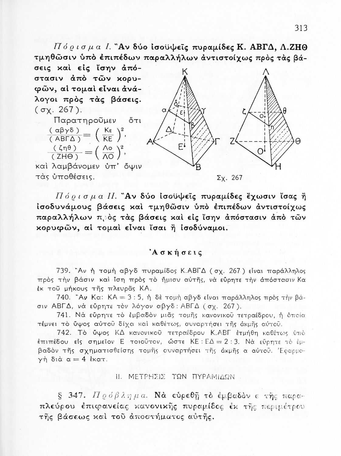 Σχολικό εγχειρίδιο Γεωμετρίας για τις Δ΄, Ε΄ και ΣΤ΄ Γυμνασίου που περιλαμβάνει αξιώματα, θεωρήματα και κατασκευές και είναι χωρισμένο σε γεωμετρία επιπέδου και γεωμετρία χώρου.