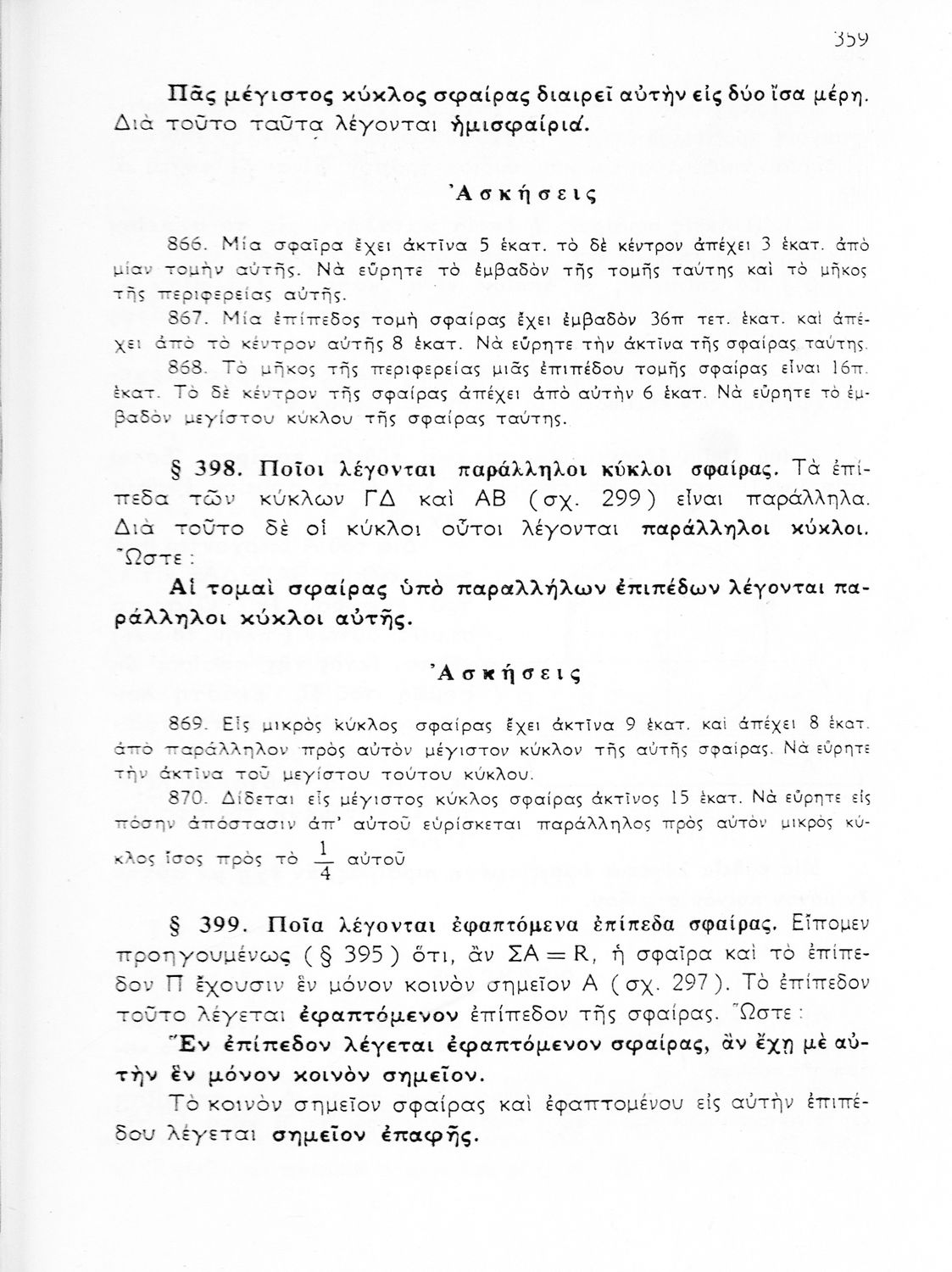 Παρουσίαση περιεχομένου: Σχολικό εγχειρίδιο Γεωμετρίας για τις Γ΄, Δ΄, Ε΄, ΣΤ΄ Γυμνασίου που περιλαμβάνει θεωρία και ασκήσεις και είναι χωρισμένο σε Επιπεδομετρία και Στερεομετρία. Φέρει το σύμβολο της δικτατορίας.