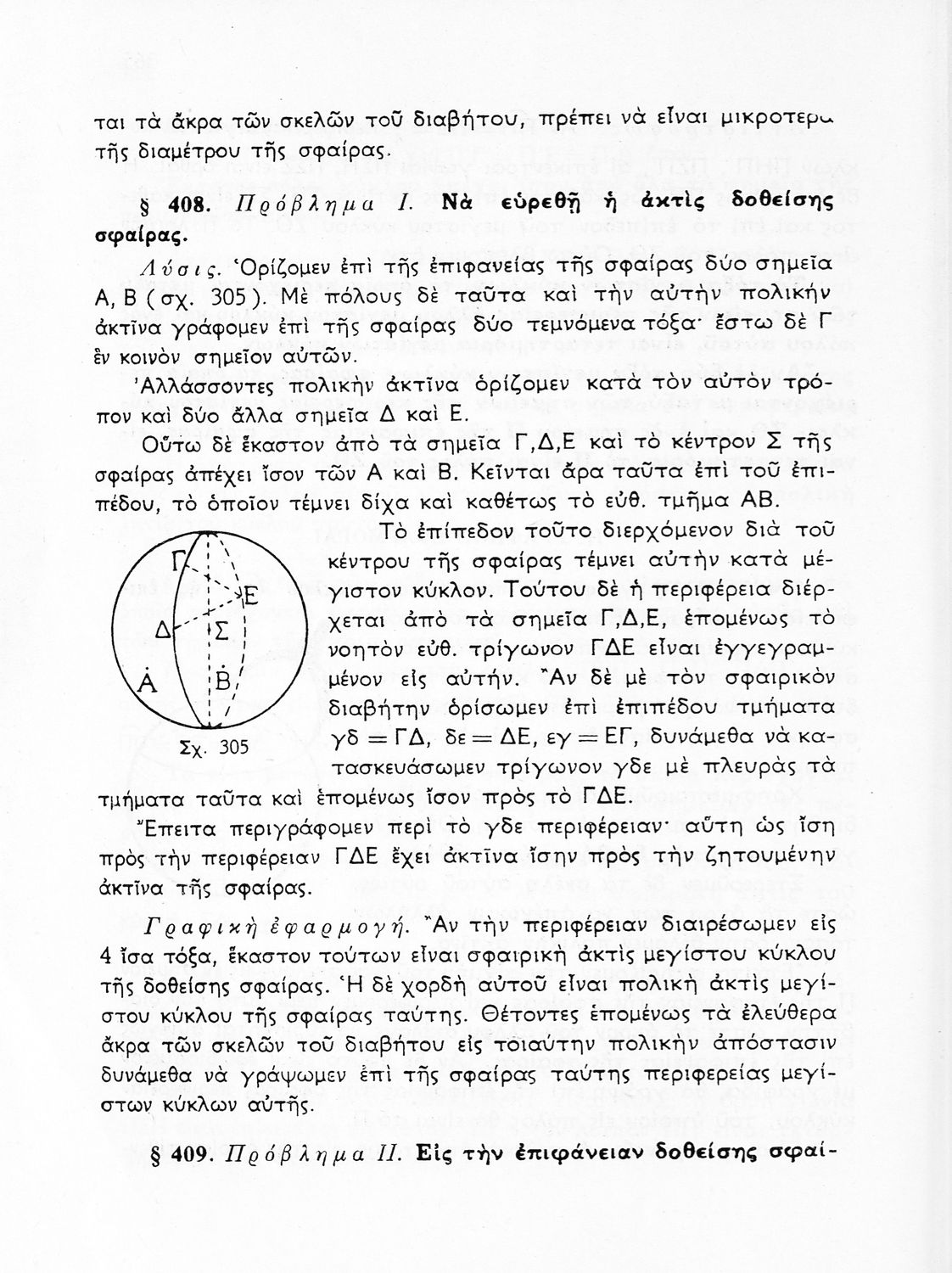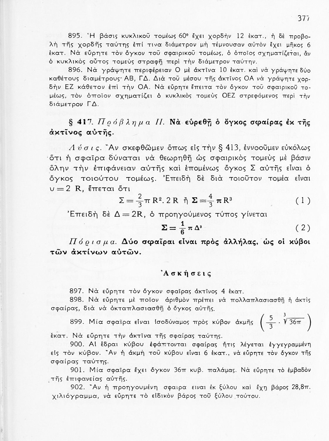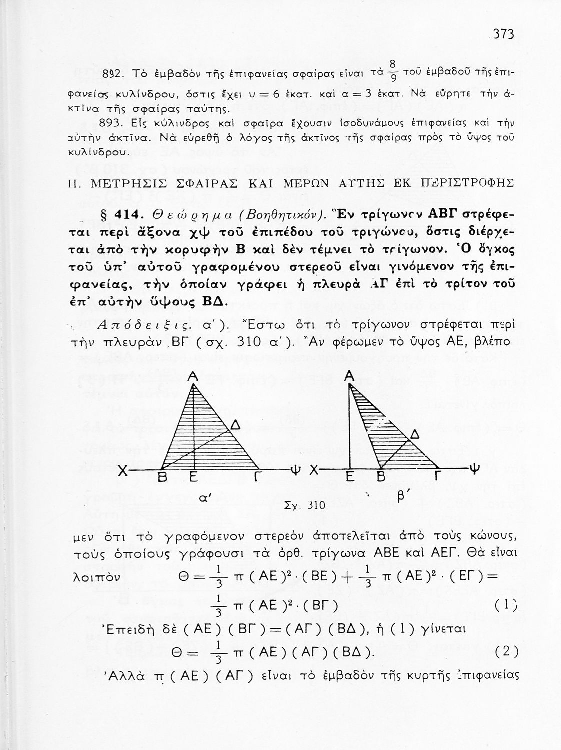 Σχολικό εγχειρίδιο Γεωμετρίας για τις Γ΄, Δ΄, Ε΄, ΣΤ΄ Γυμνασίου που περιλαμβάνει θεωρία και ασκήσεις και είναι χωρισμένο σε Επιπεδομετρία και Στερεομετρία. Φέρει το σύμβολο της δικτατορίας.