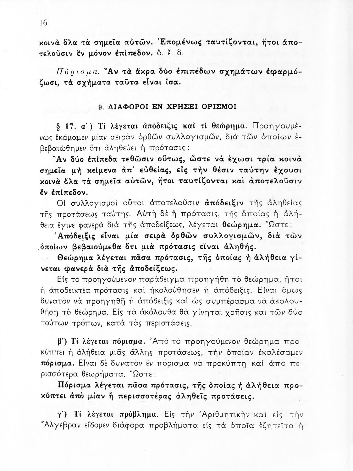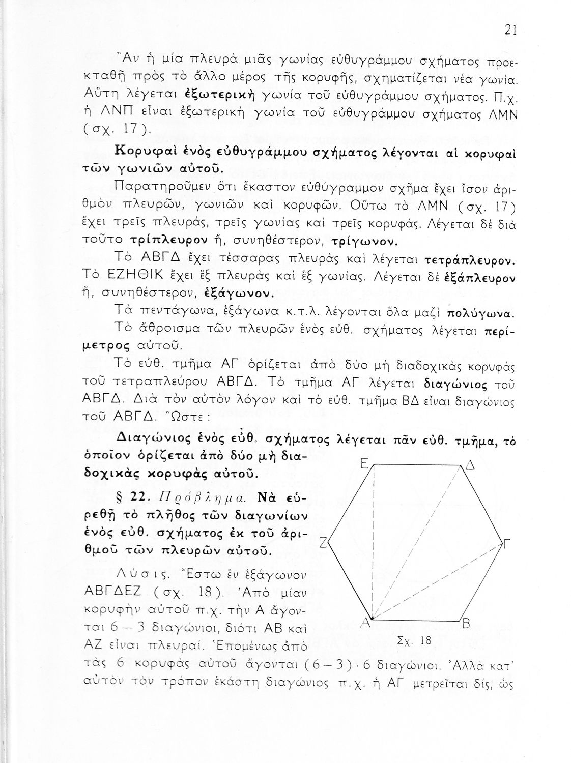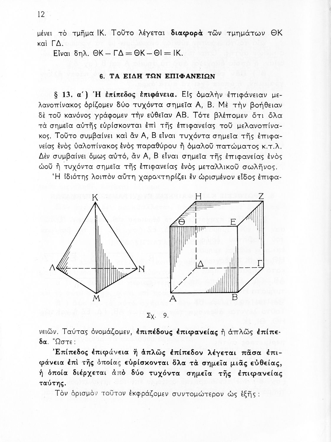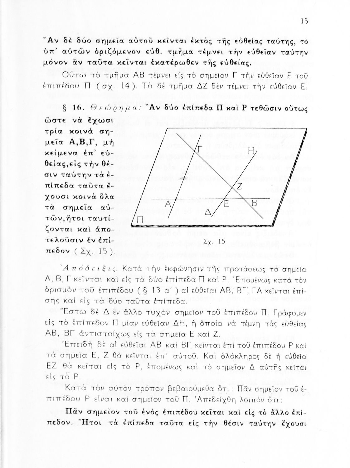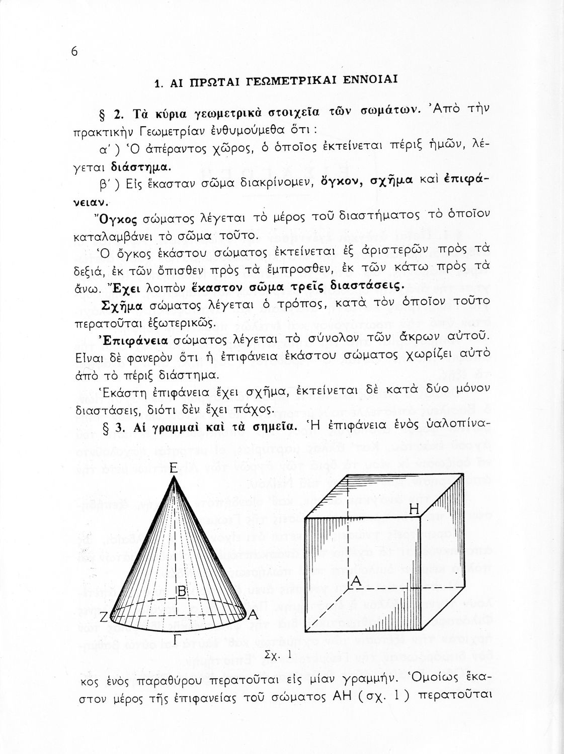 Σχολικό εγχειρίδιο Γεωμετρίας για τις Δ΄, Ε΄ και ΣΤ΄ Γυμνασίου που περιλαμβάνει αξιώματα, θεωρήματα και κατασκευές και είναι χωρισμένο σε γεωμετρία επιπέδου και γεωμετρία χώρου.