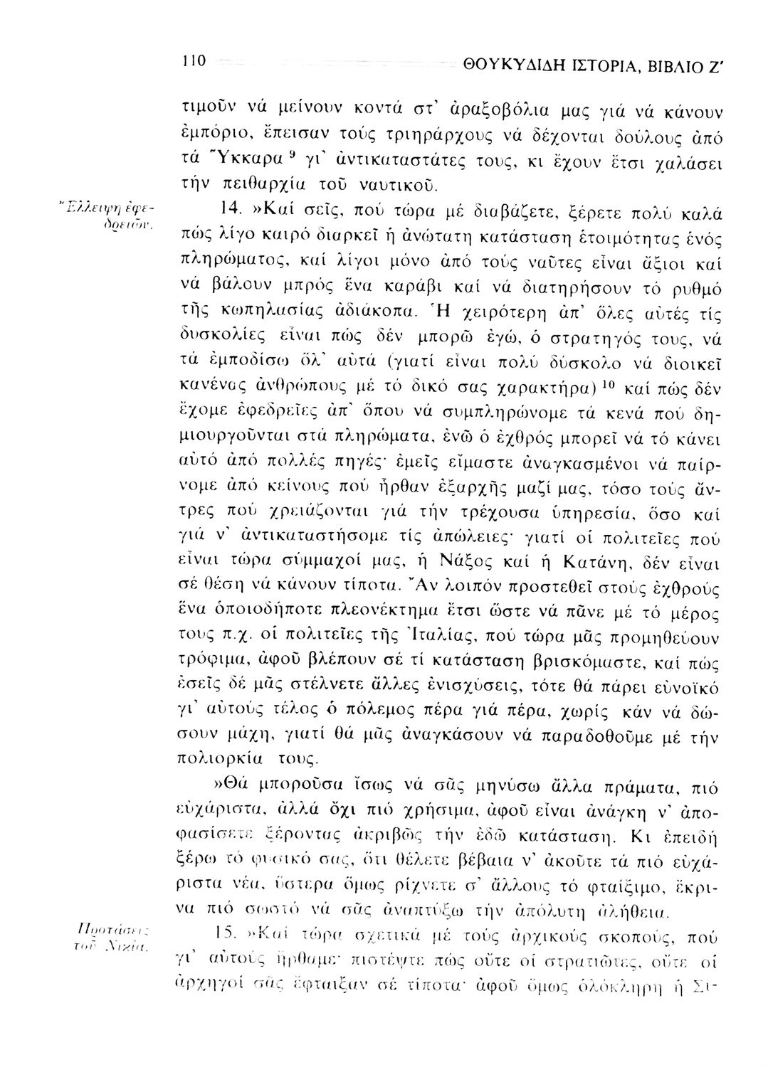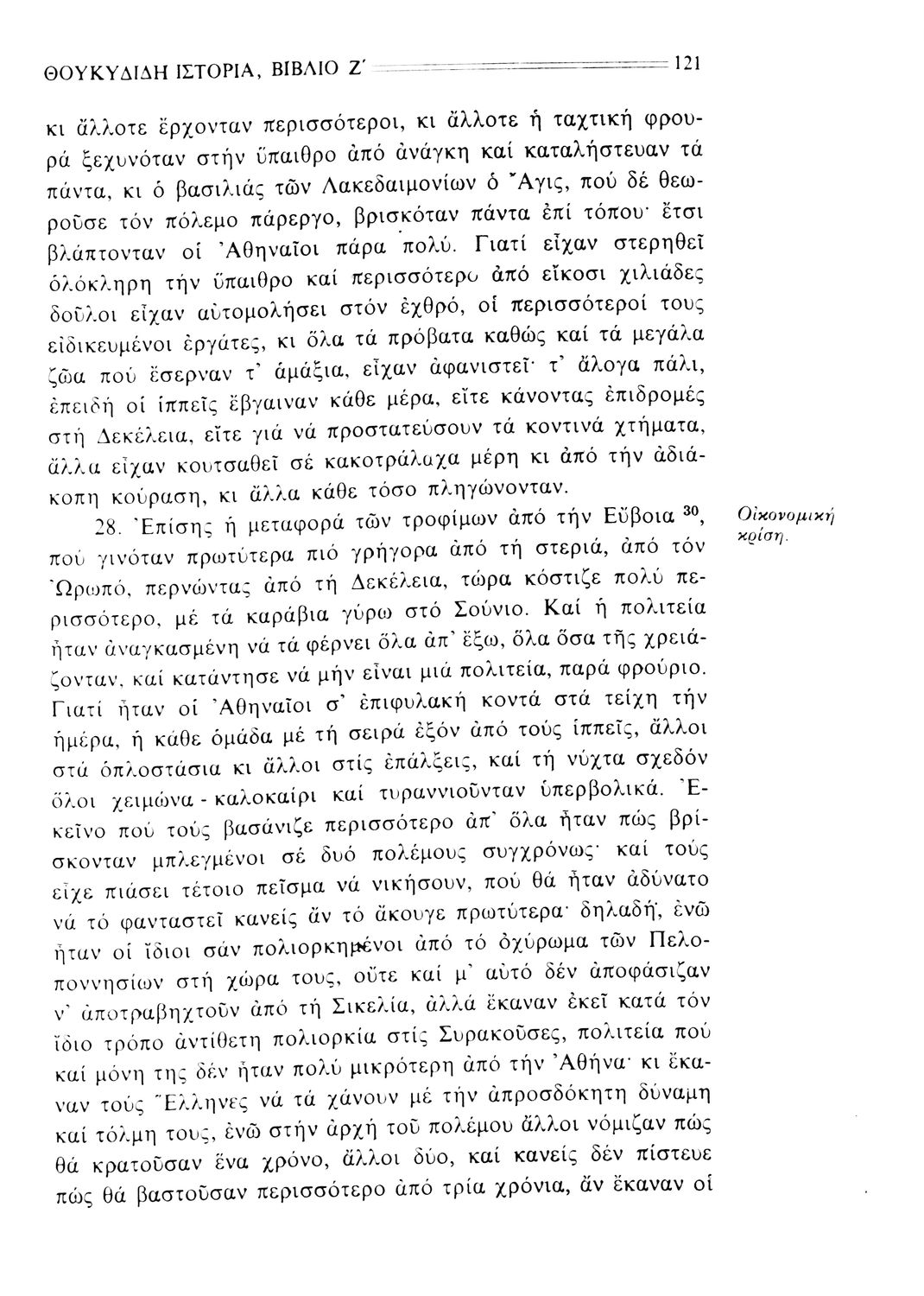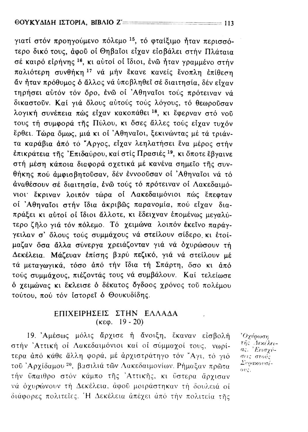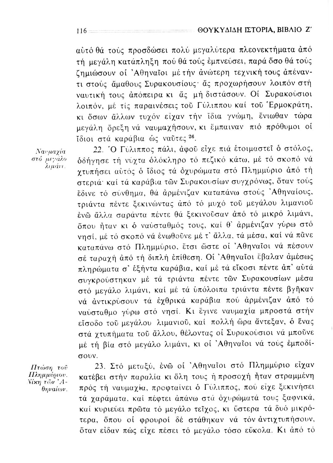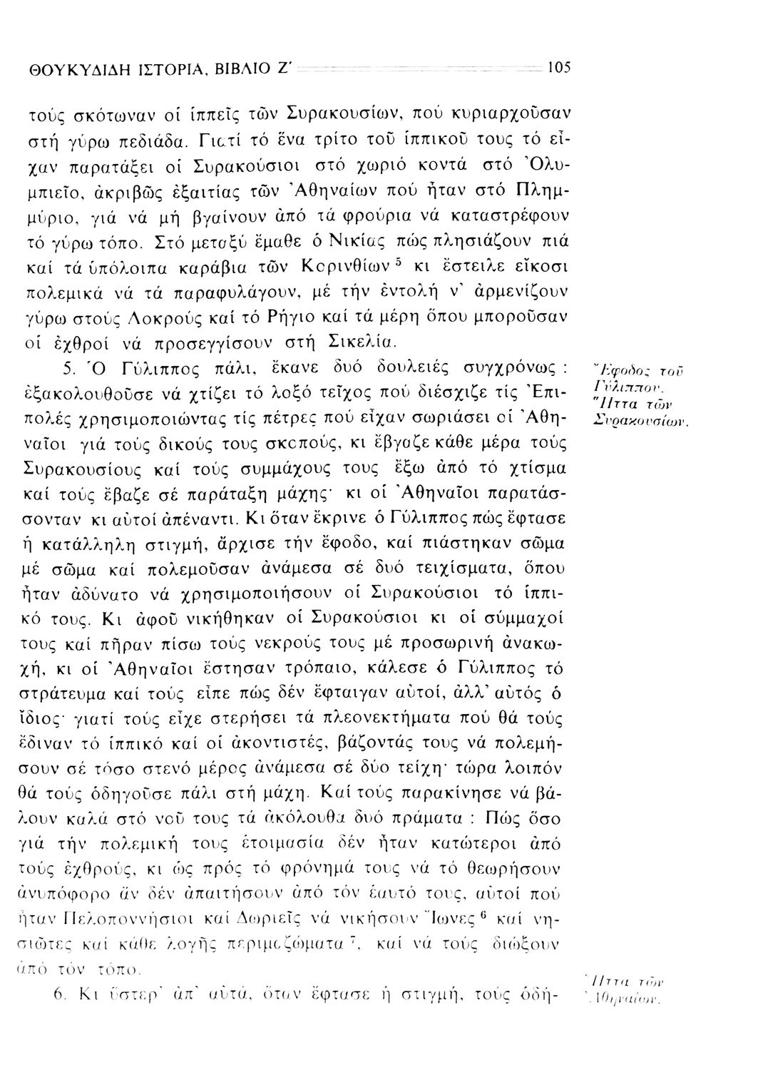 Σχολικό εγχειρίδιο Αρχαίων Ελληνικών Β΄ Γυμνασίου που περιλαμβάνει την μετάφραση των βιβλίων ΣΤ΄ και Ζ΄ της Ιστορίας του Θουκυδίδη, εισαγωγή στη ζωή και το έργο του, και ερμηνευτικά και πραγματολογικά σχόλια.