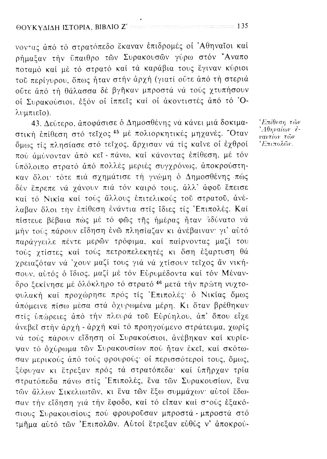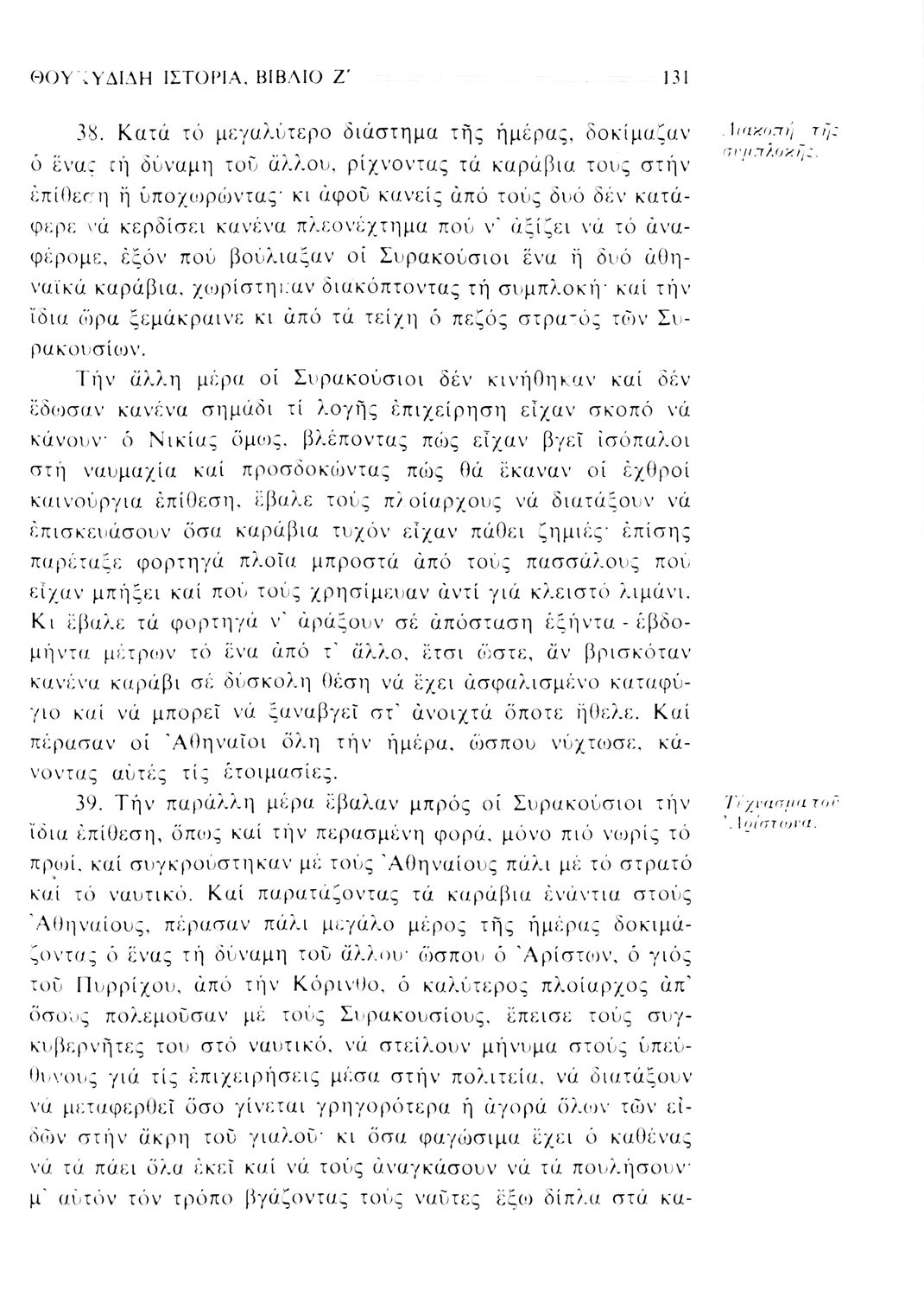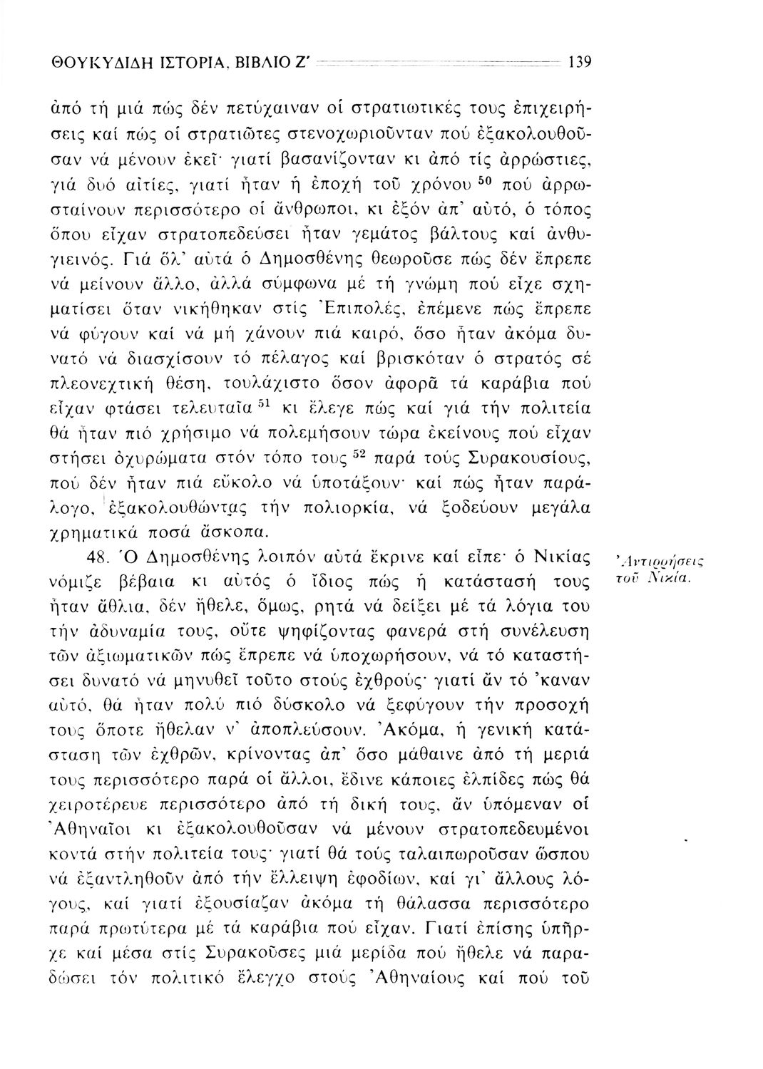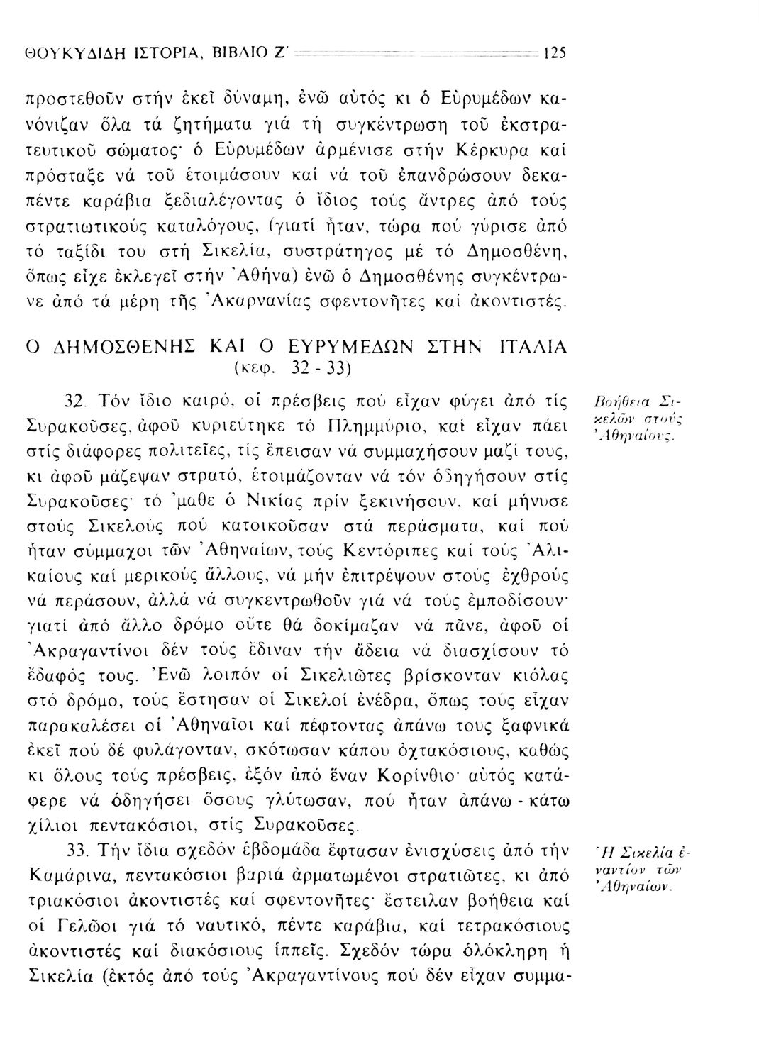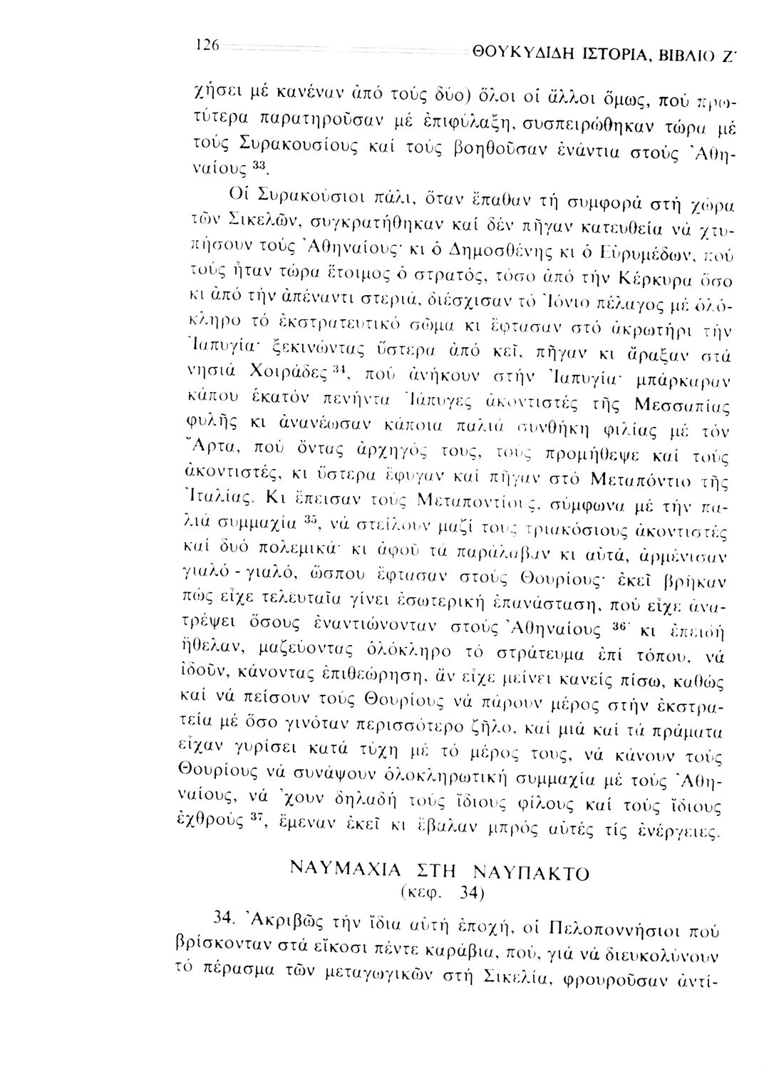 Σχολικό εγχειρίδιο Αρχαίων Ελληνικών Β΄ Γυμνασίου που περιλαμβάνει την μετάφραση των βιβλίων ΣΤ΄ και Ζ΄ της Ιστορίας του Θουκυδίδη, εισαγωγή στη ζωή και το έργο του, και ερμηνευτικά και πραγματολογικά σχόλια.