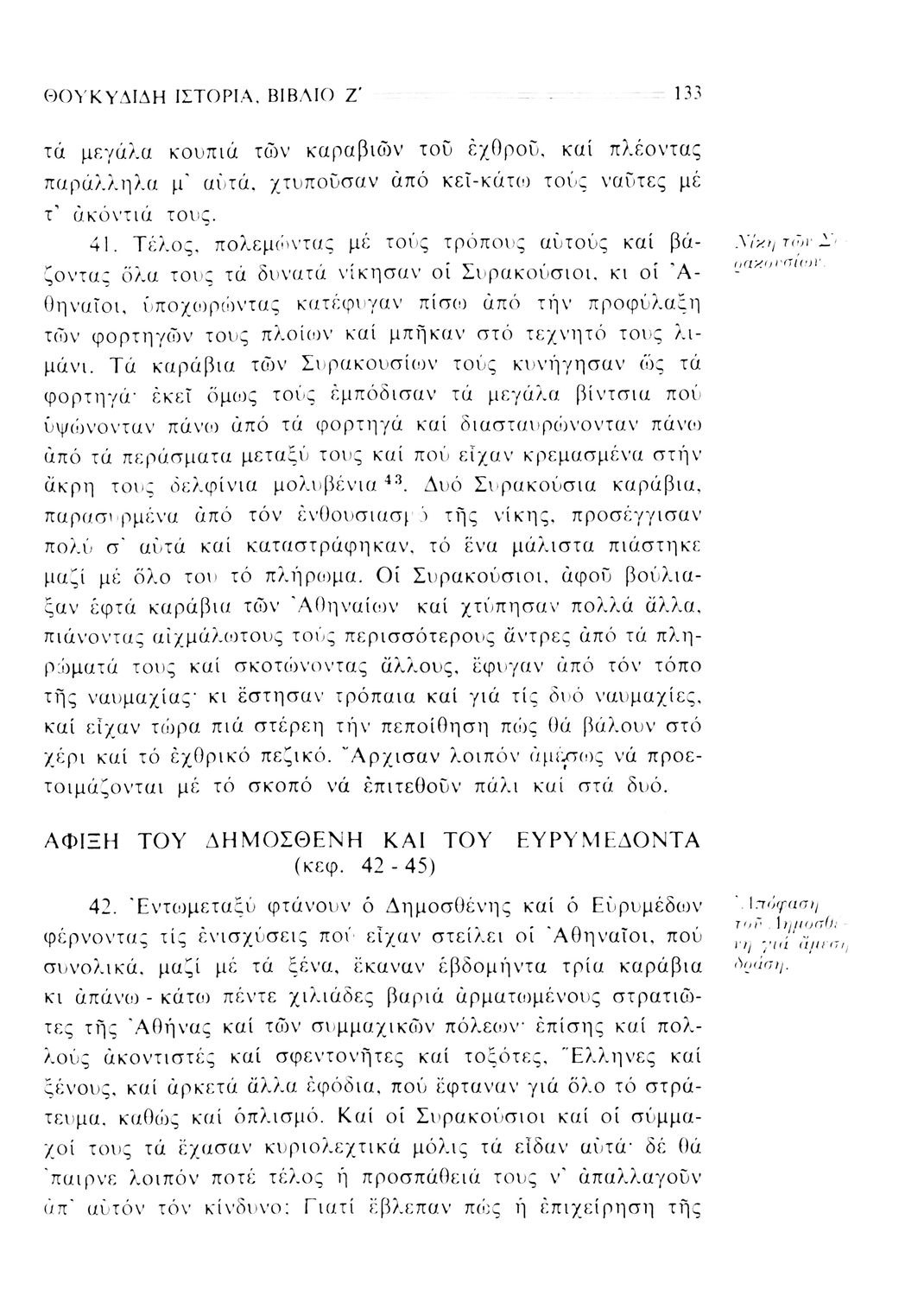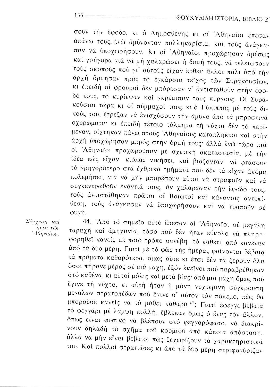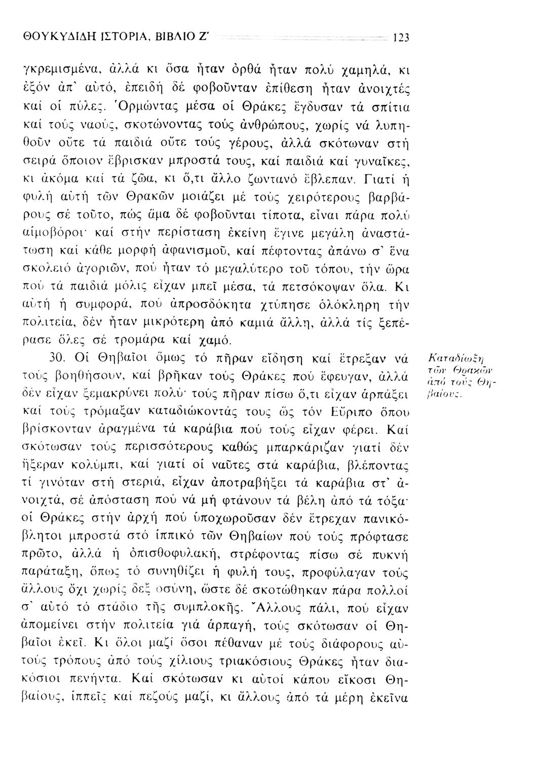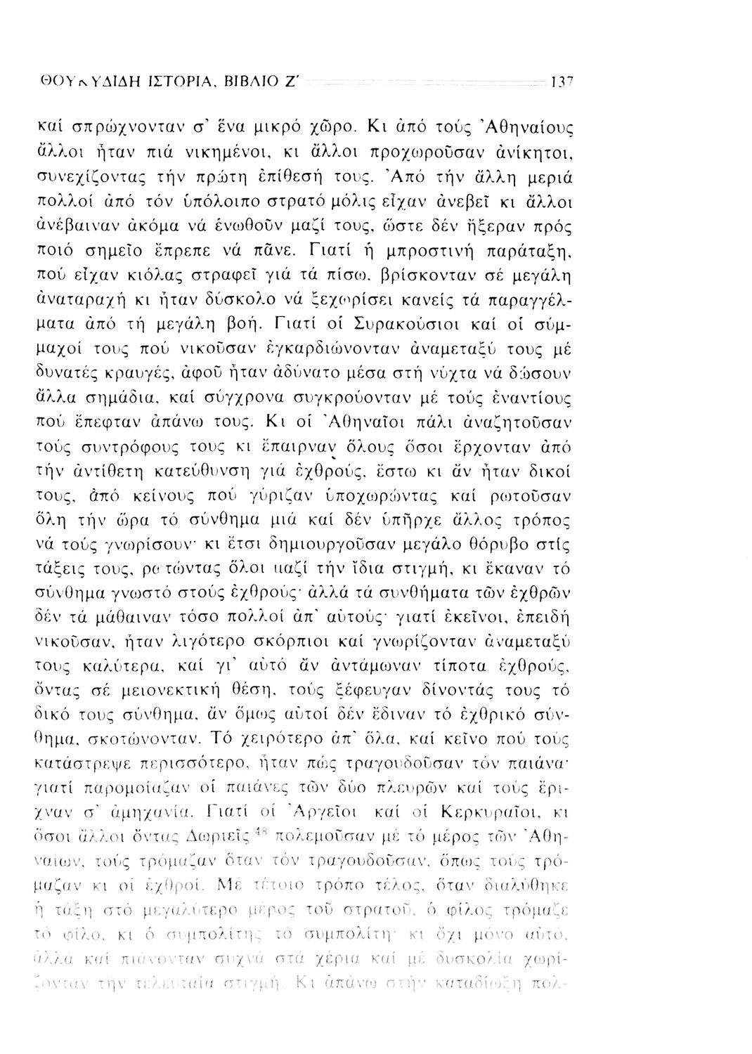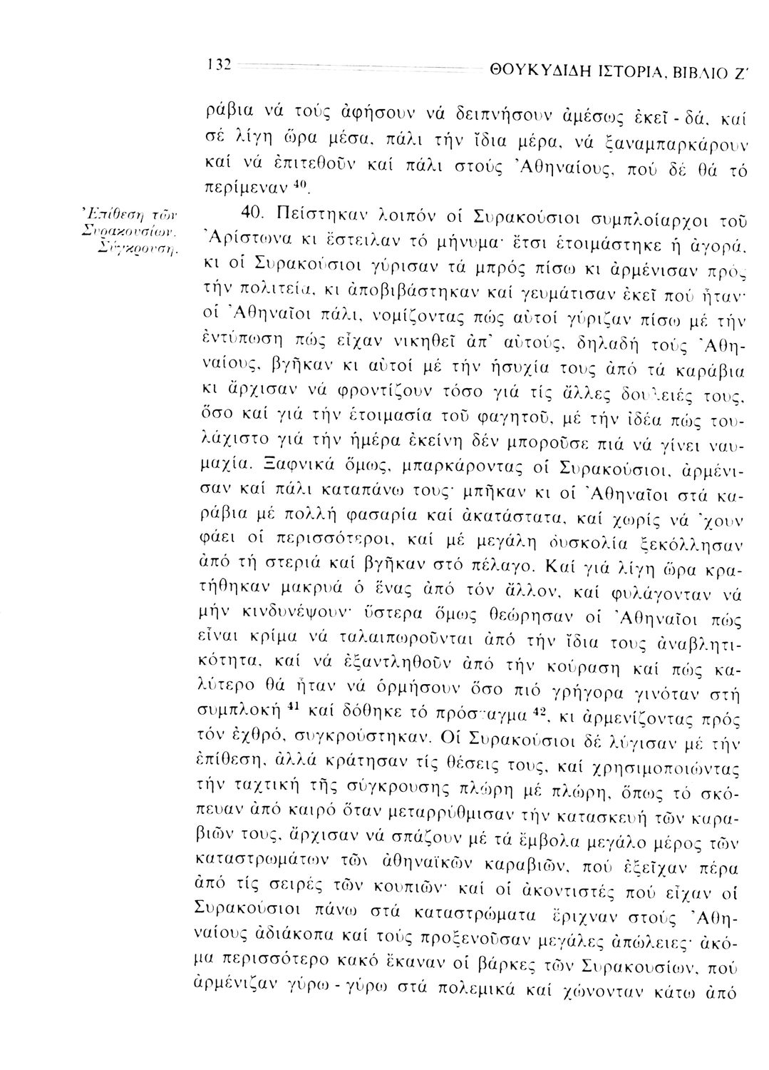 Σχολικό εγχειρίδιο Αρχαίων Ελληνικών Β΄ Γυμνασίου που περιλαμβάνει την μετάφραση των βιβλίων ΣΤ΄ και Ζ΄ της Ιστορίας του Θουκυδίδη, εισαγωγή στη ζωή και το έργο του, και ερμηνευτικά και πραγματολογικά σχόλια.