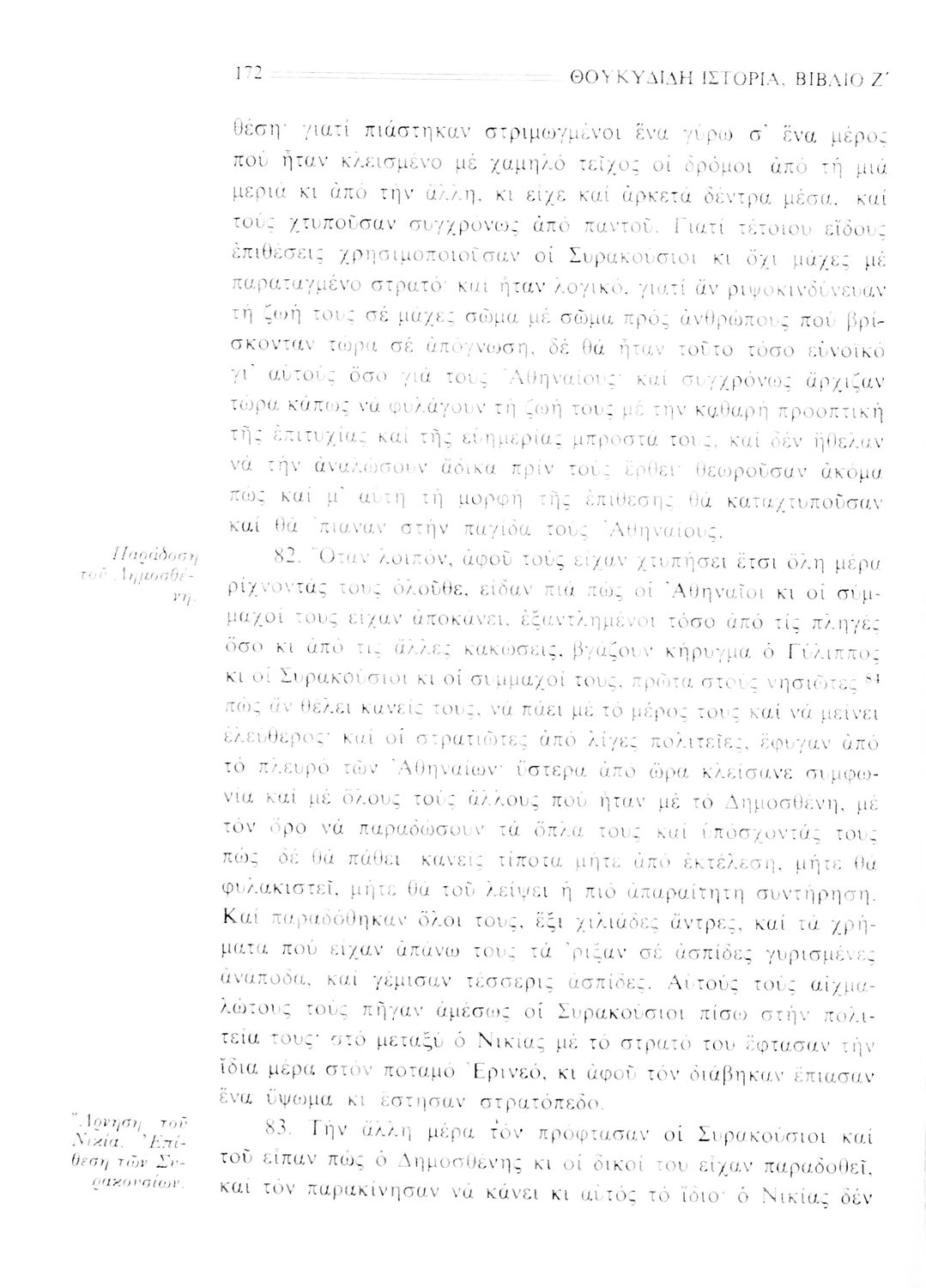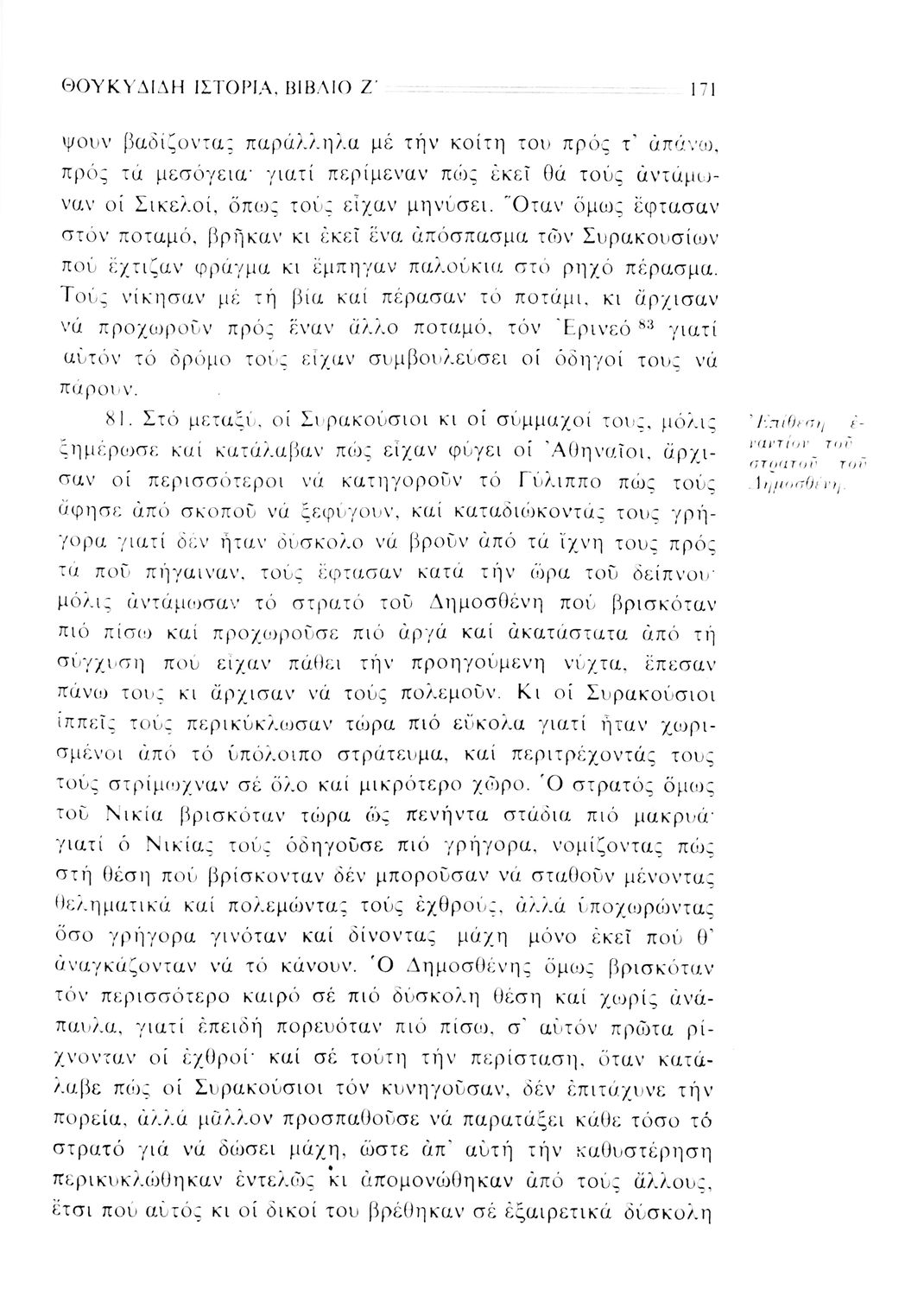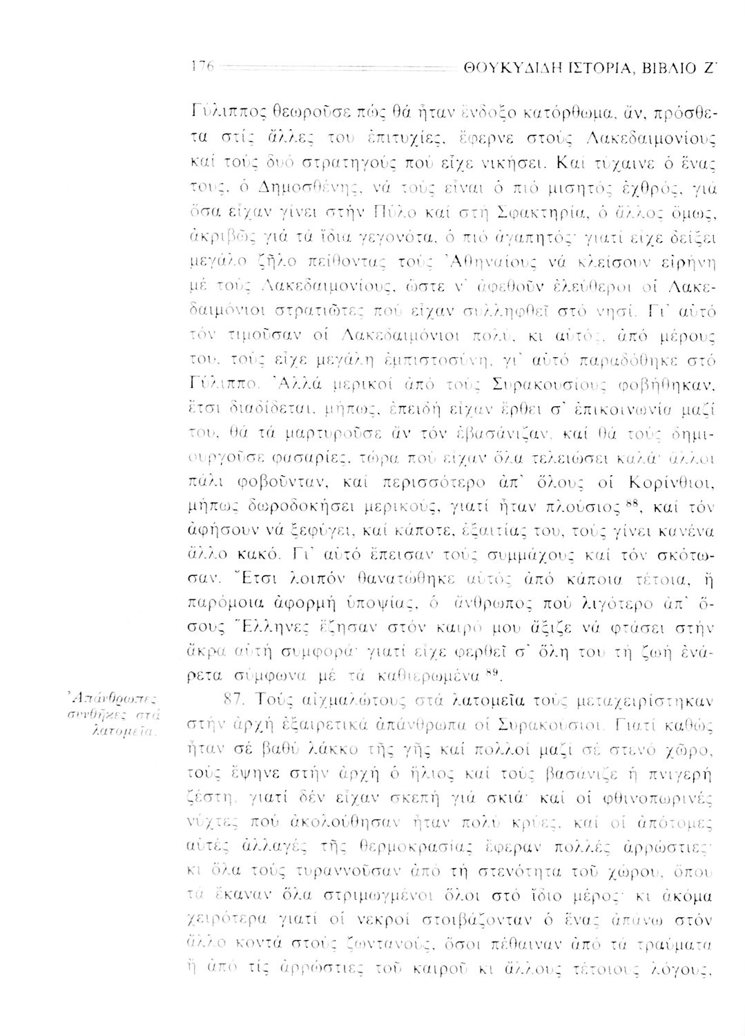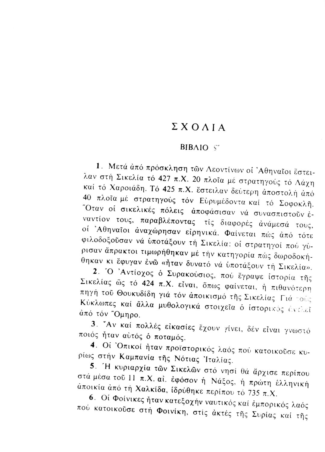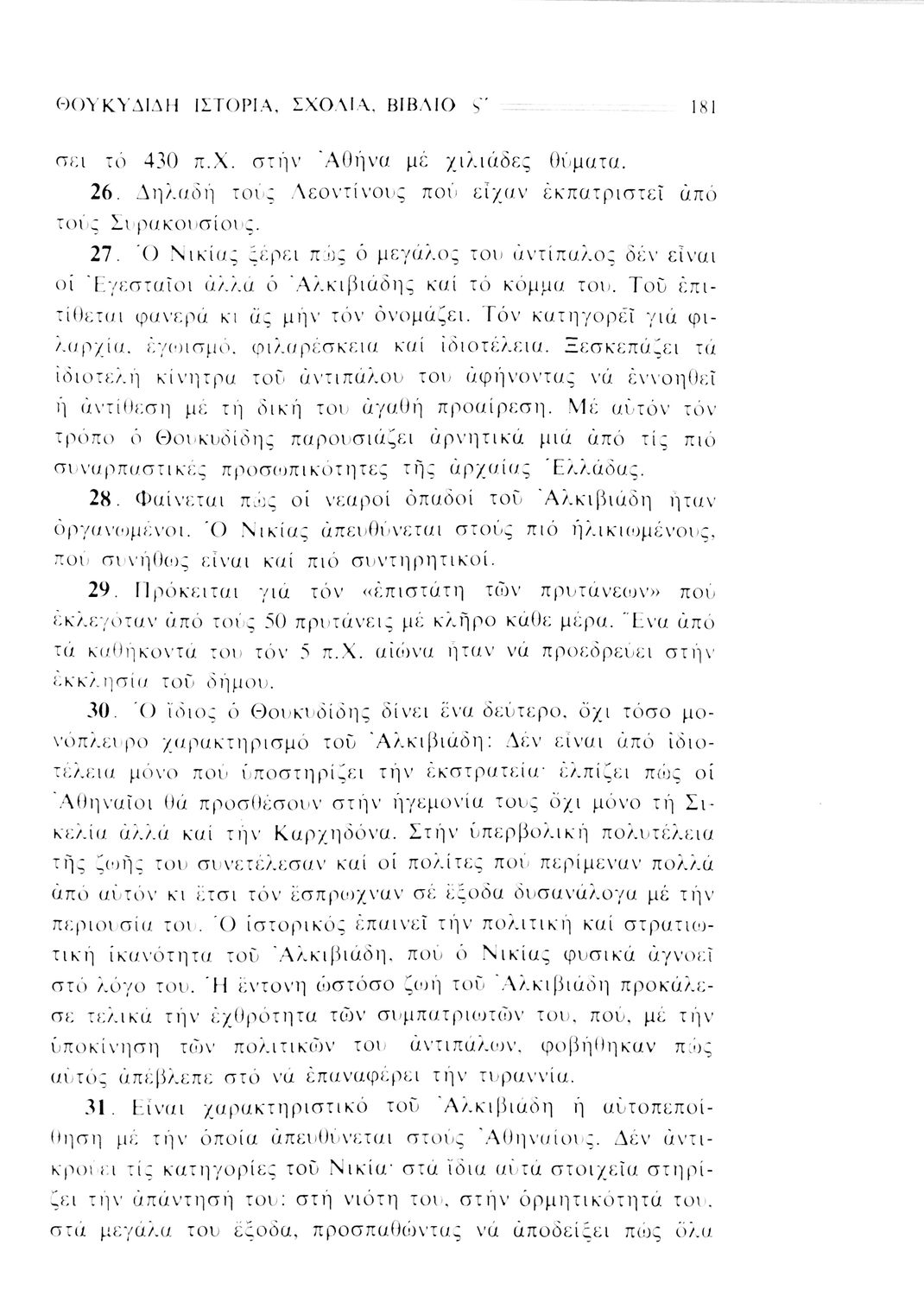 Σχολικό εγχειρίδιο Αρχαίων Ελληνικών Β΄ Γυμνασίου που περιλαμβάνει την μετάφραση των βιβλίων ΣΤ΄ και Ζ΄ της Ιστορίας του Θουκυδίδη, εισαγωγή στη ζωή και το έργο του, και ερμηνευτικά και πραγματολογικά σχόλια.