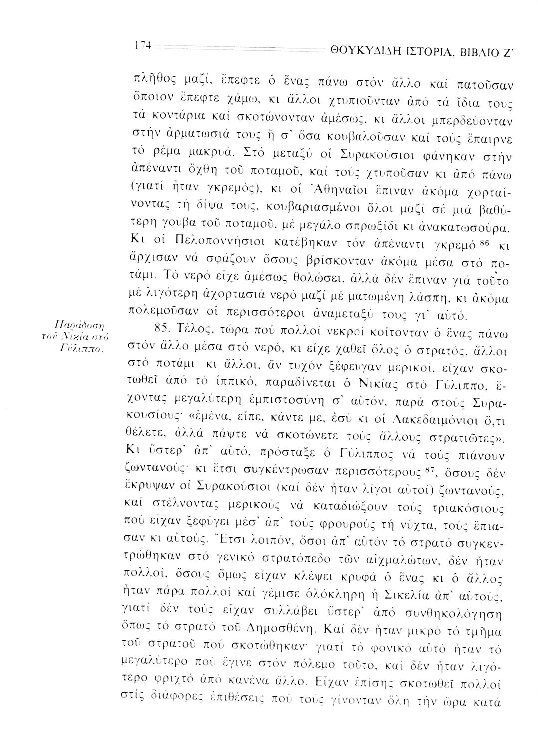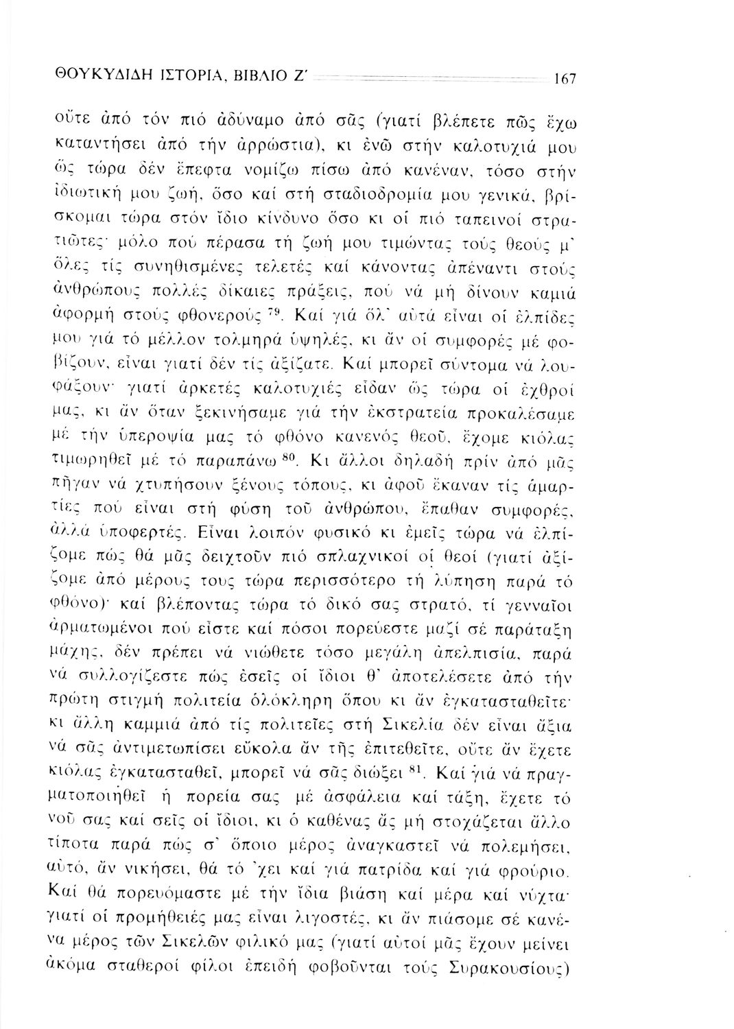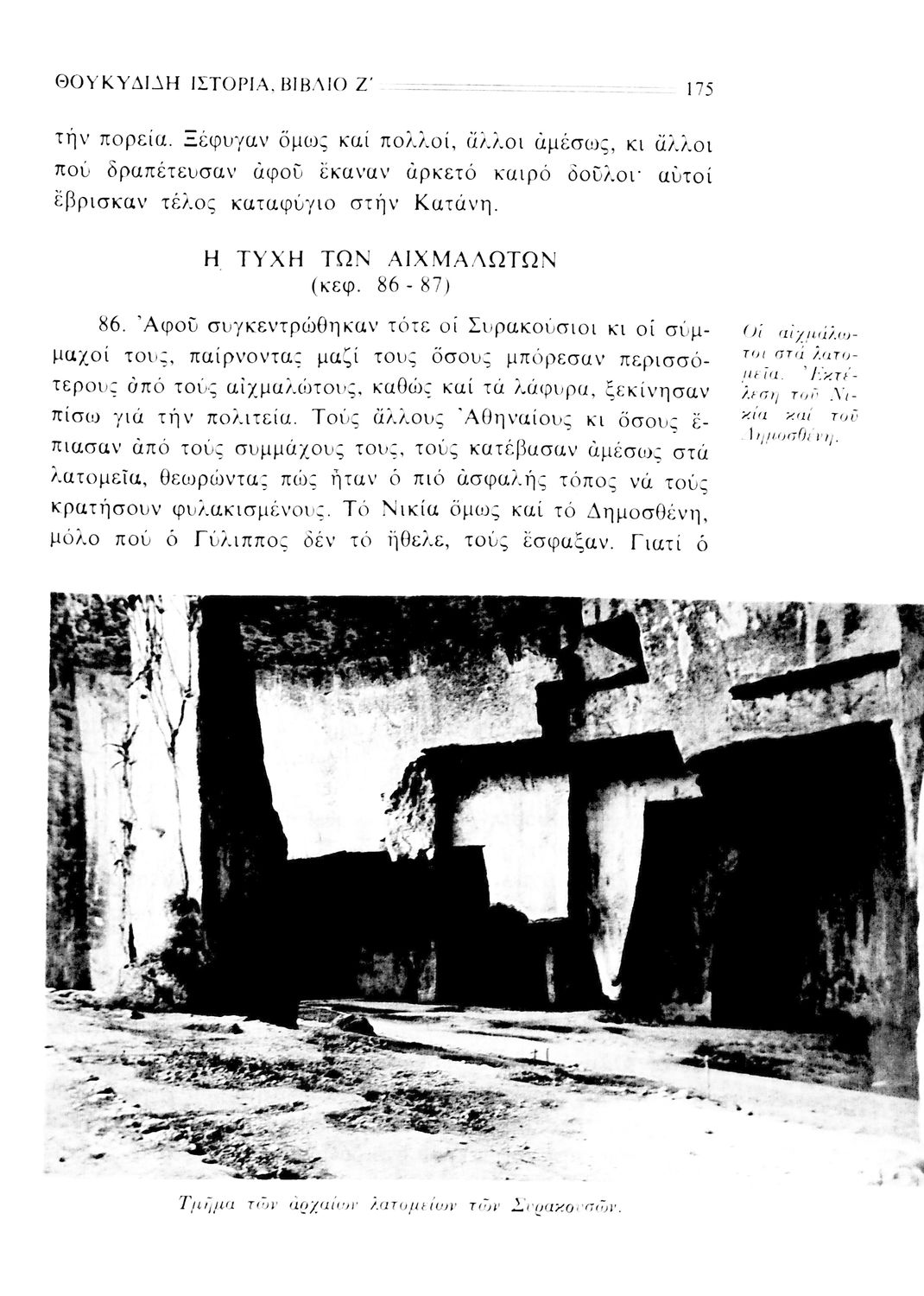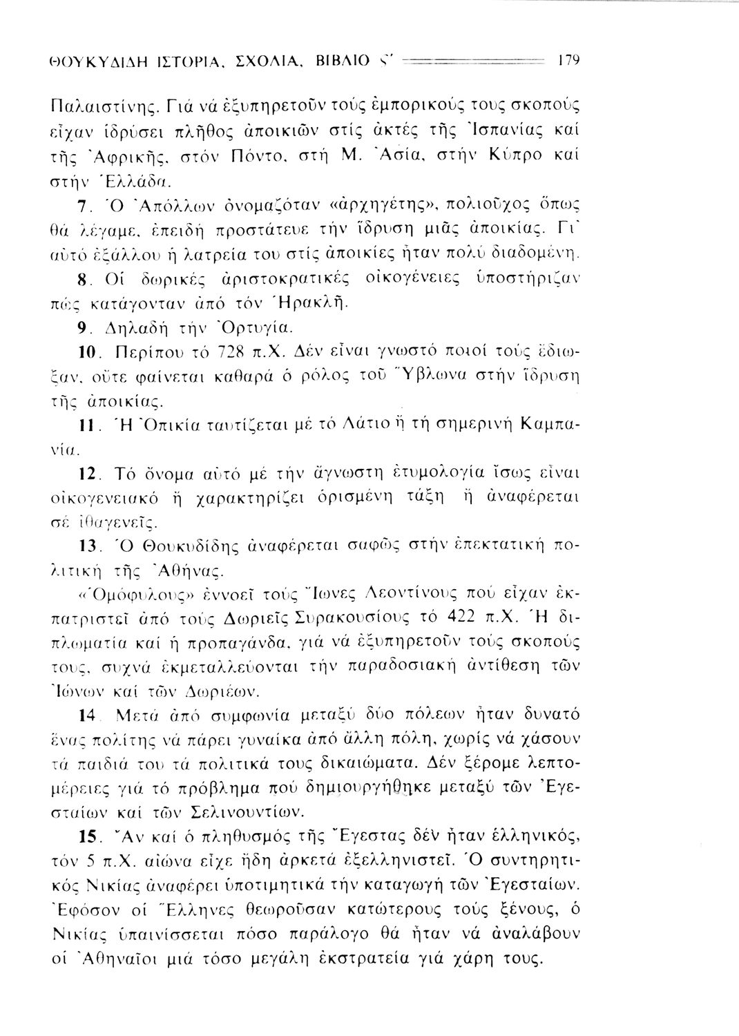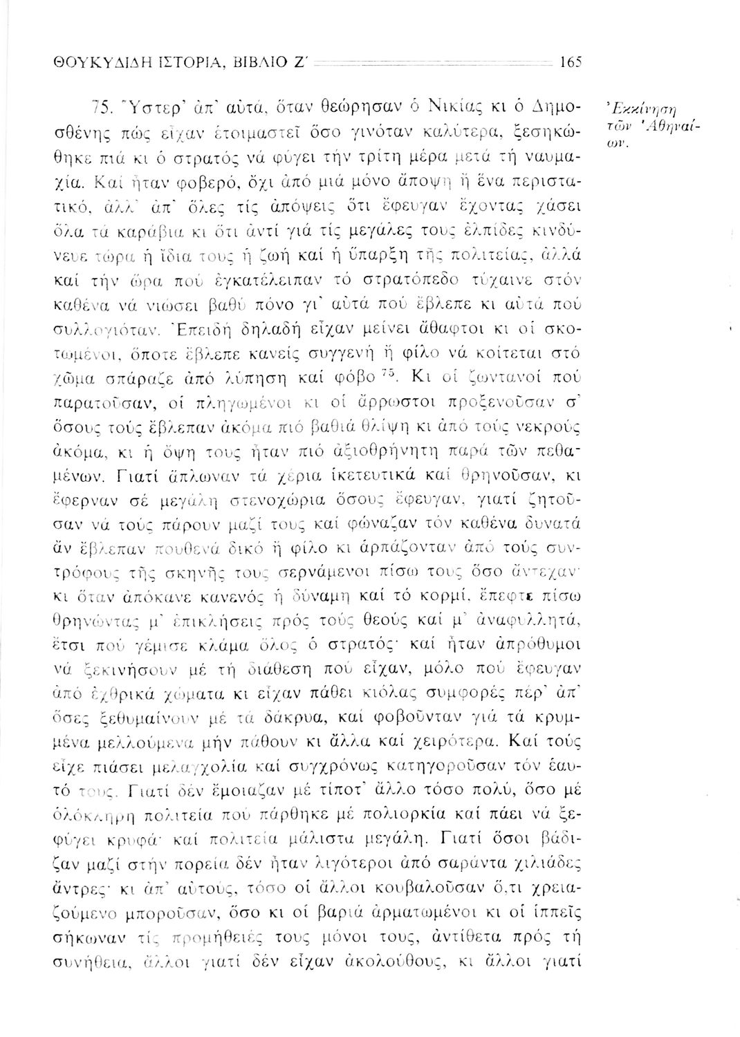 Σχολικό εγχειρίδιο Αρχαίων Ελληνικών Β΄ Γυμνασίου που περιλαμβάνει την μετάφραση των βιβλίων ΣΤ΄ και Ζ΄ της Ιστορίας του Θουκυδίδη, εισαγωγή στη ζωή και το έργο του, και ερμηνευτικά και πραγματολογικά σχόλια.